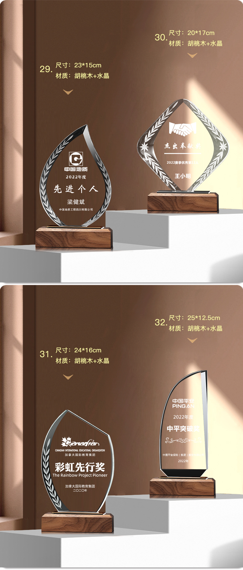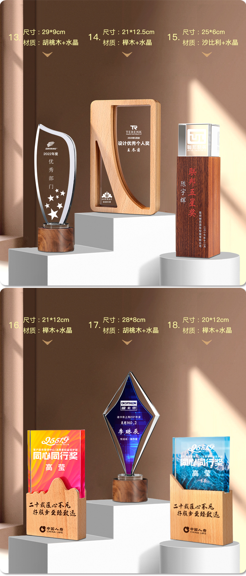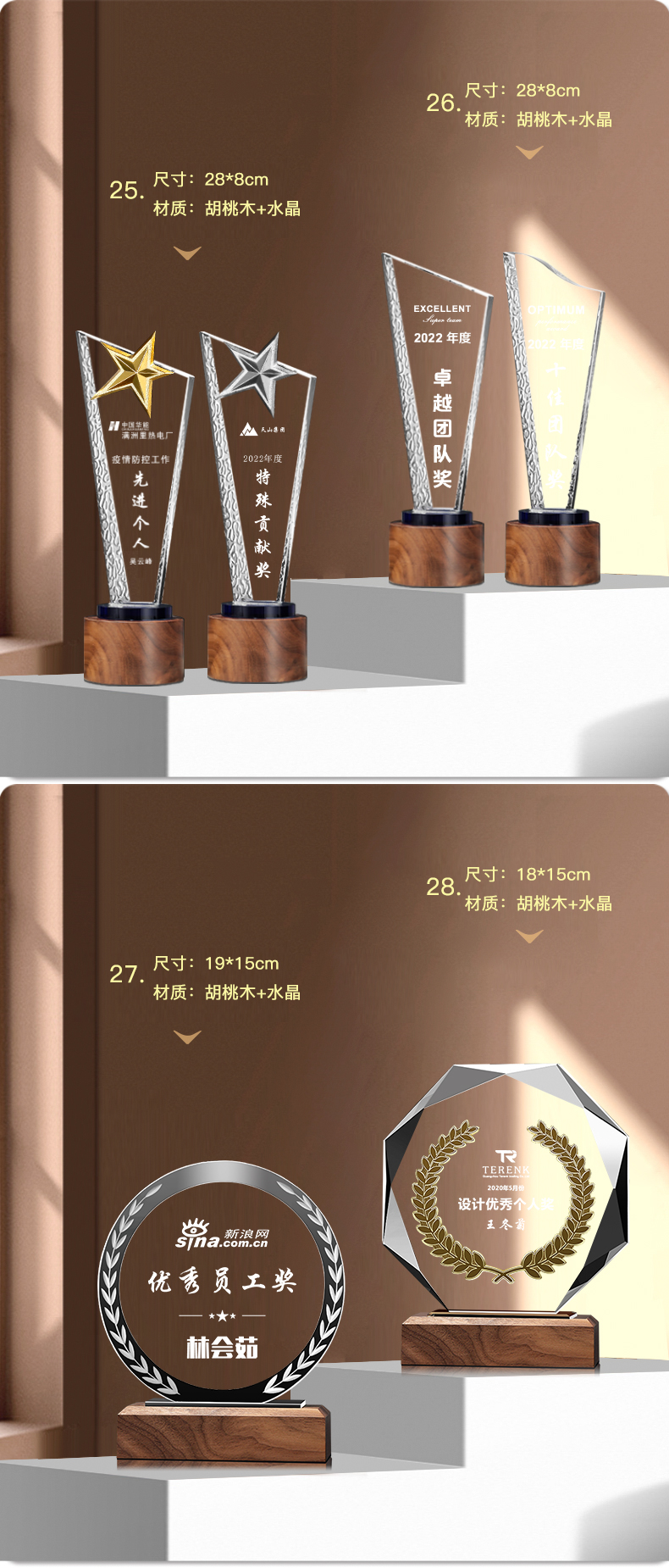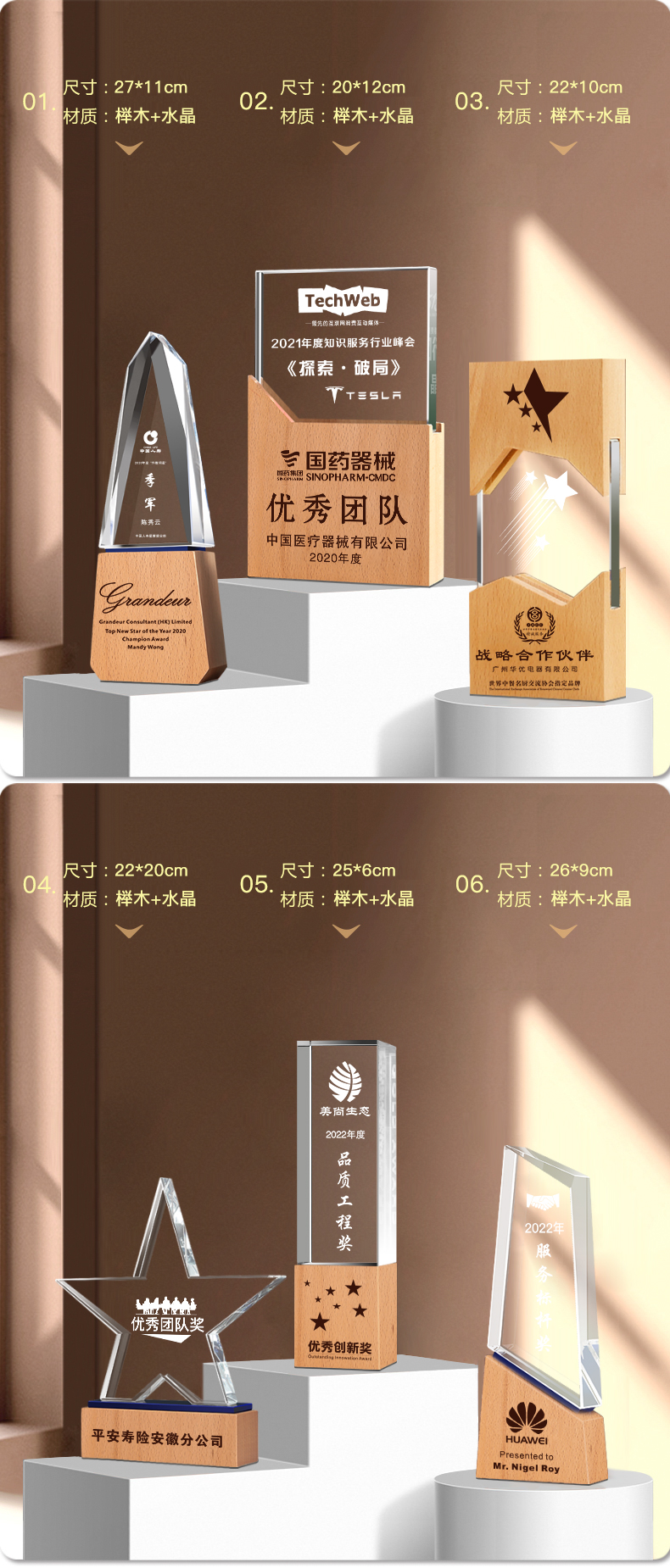 1016 / 创意木质奖杯定制水晶奖牌制作优秀员工纪念品定销售冠军团队颁奖