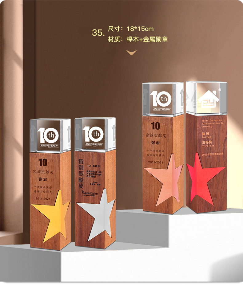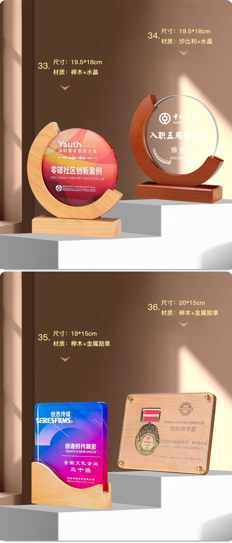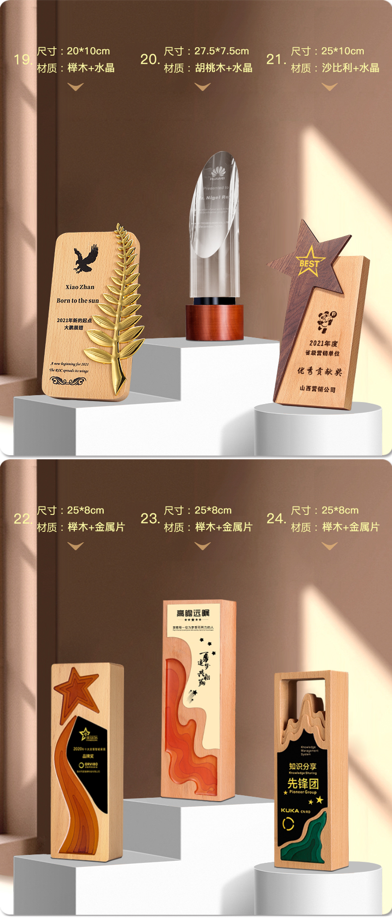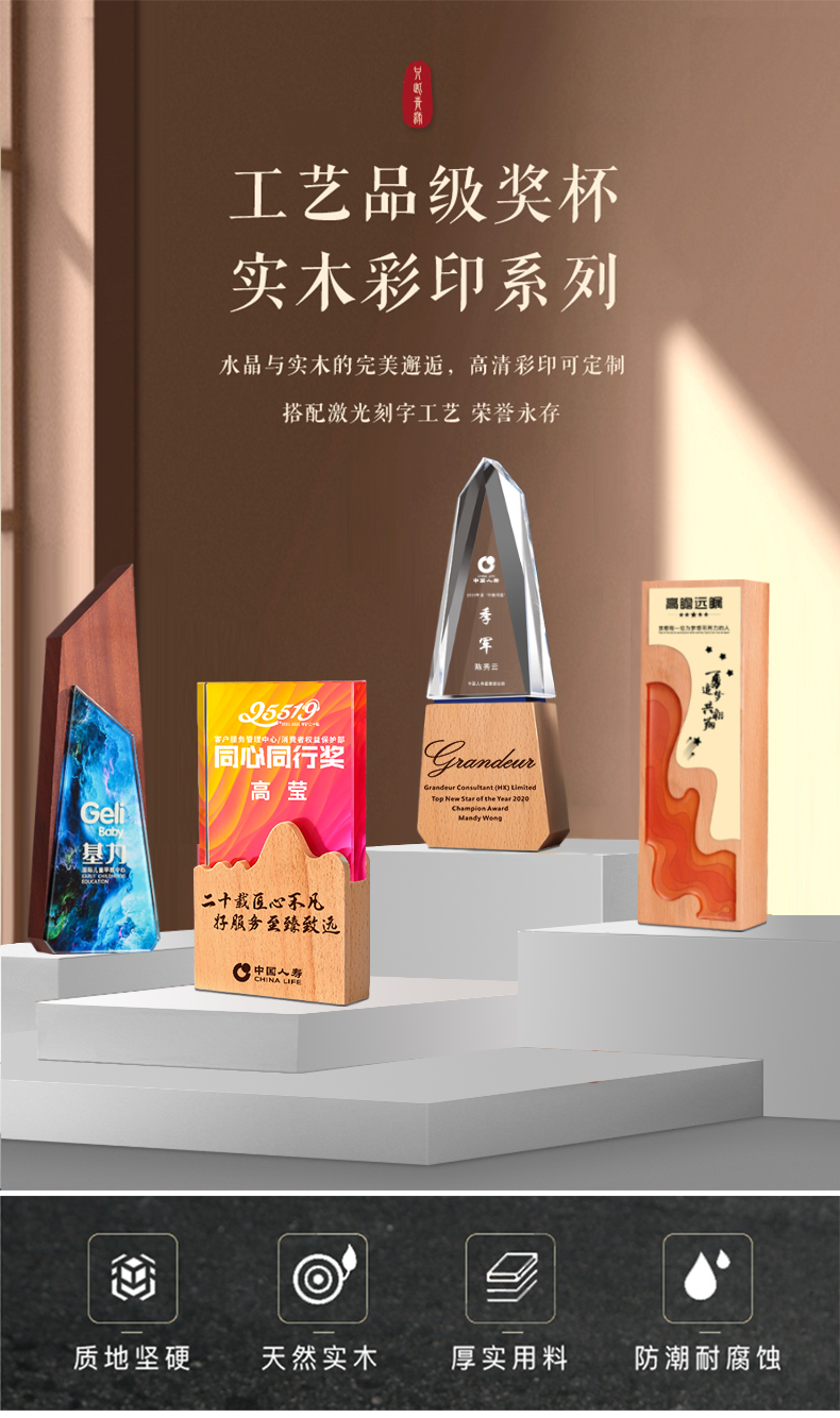 1016 / 创意木质奖杯定制水晶奖牌制作优秀员工纪念品定销售冠军团队颁奖