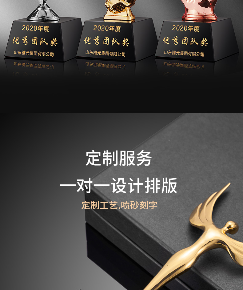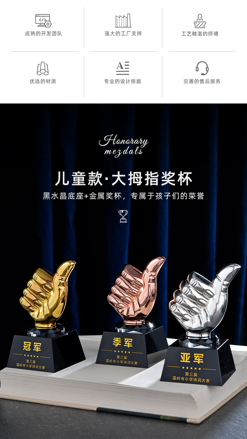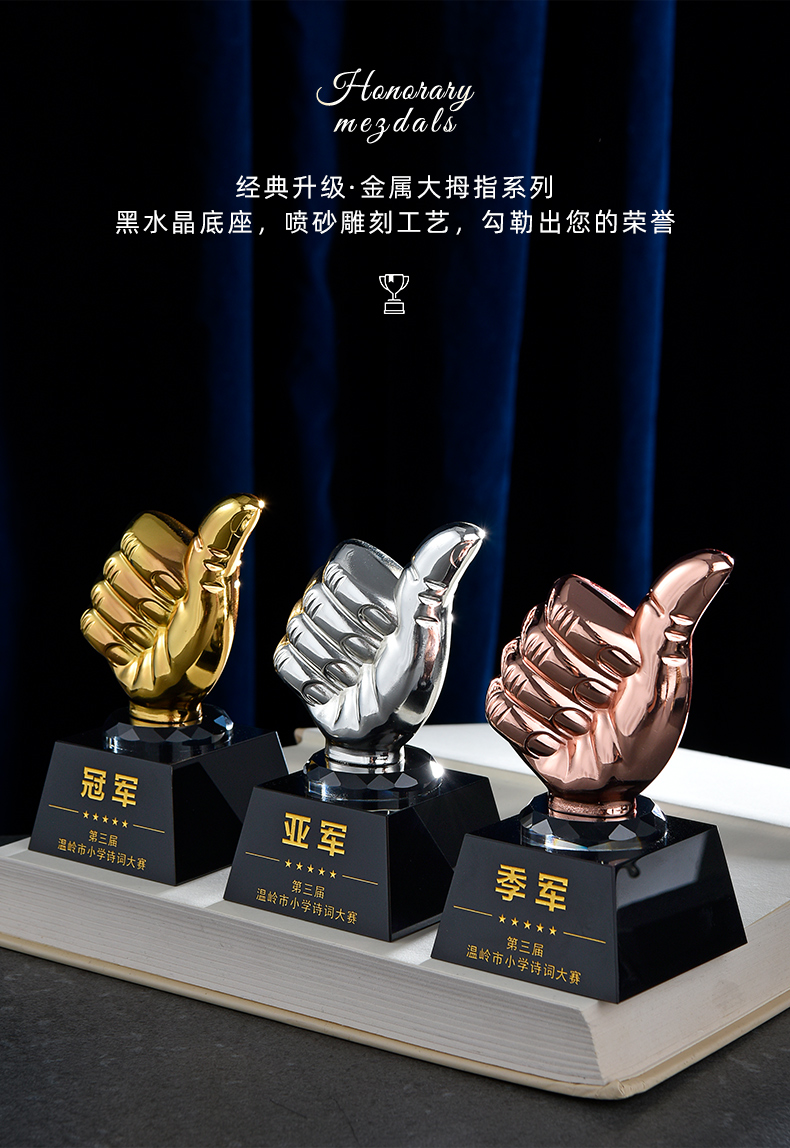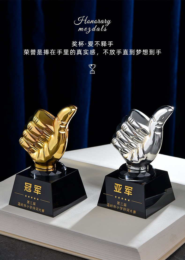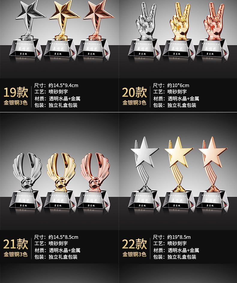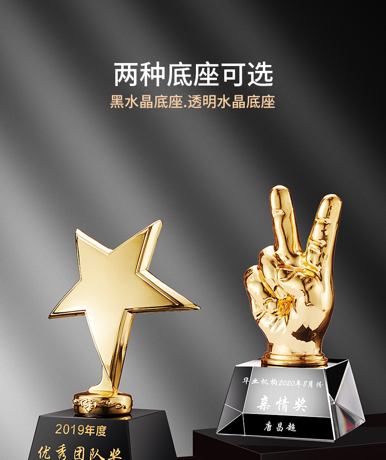 1042 / 金属水晶奖杯定制金属大拇指五角星天使比赛公司员工年会颁奖刻字