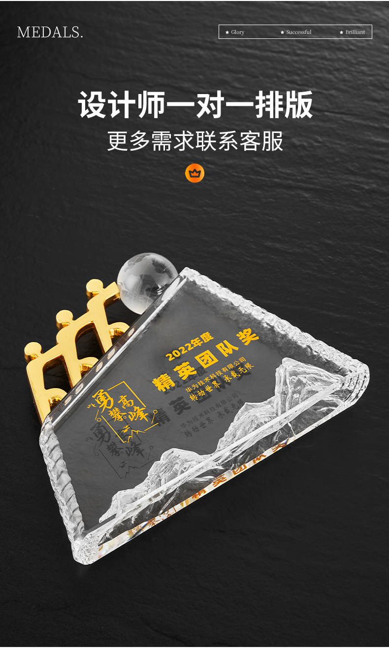 1024 / 高档冰山团队水晶奖杯奖牌创意定制刻字比赛优秀员工表彰纪念制作