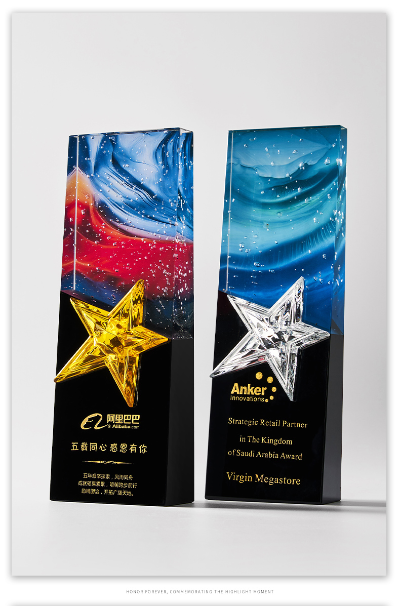 1034 / 高档大气炫彩水晶五角星奖杯定制创意刻字优秀员工颁奖表彰牌订制