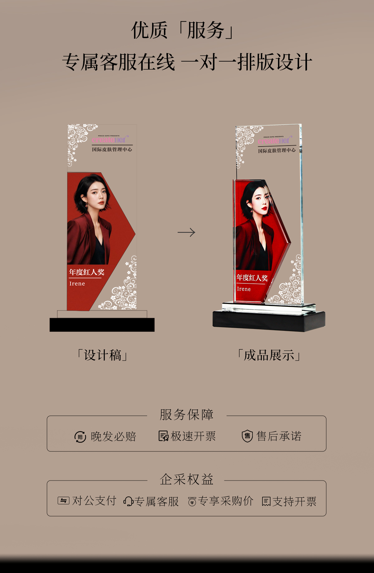 1035 / 护士照片人像奖杯定制创意年会团队优秀员工冠军销冠水晶奖牌订制