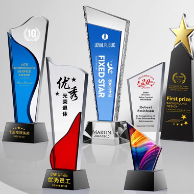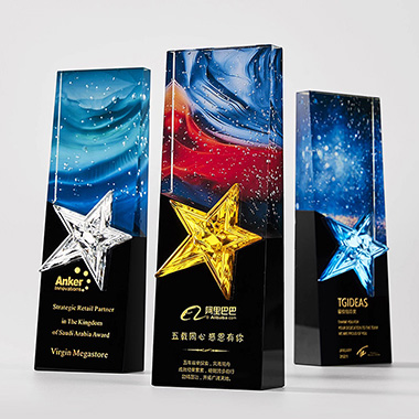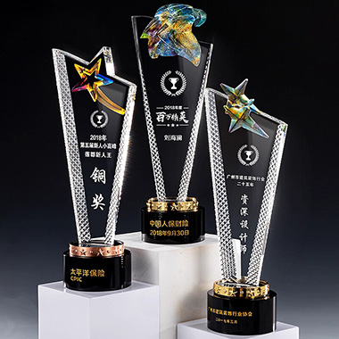 364 / 成都水晶奖杯奖牌定制斜面板五角星琉璃优秀员工年会颁…