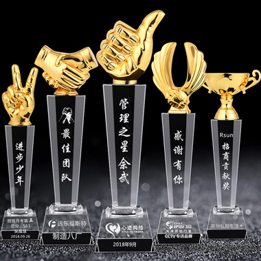 152 / 成都水晶奖杯创意定制做作大拇指奖牌刻字五角星颁奖企…
