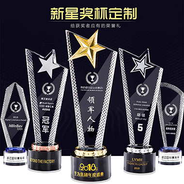 208 / 成都水晶奖杯定制彩印创意金属五角星优秀员工奖年会冠…