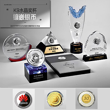 1049 / 成都纯银纪念金币银币镶嵌高端水晶奖杯奖牌定制荣誉…