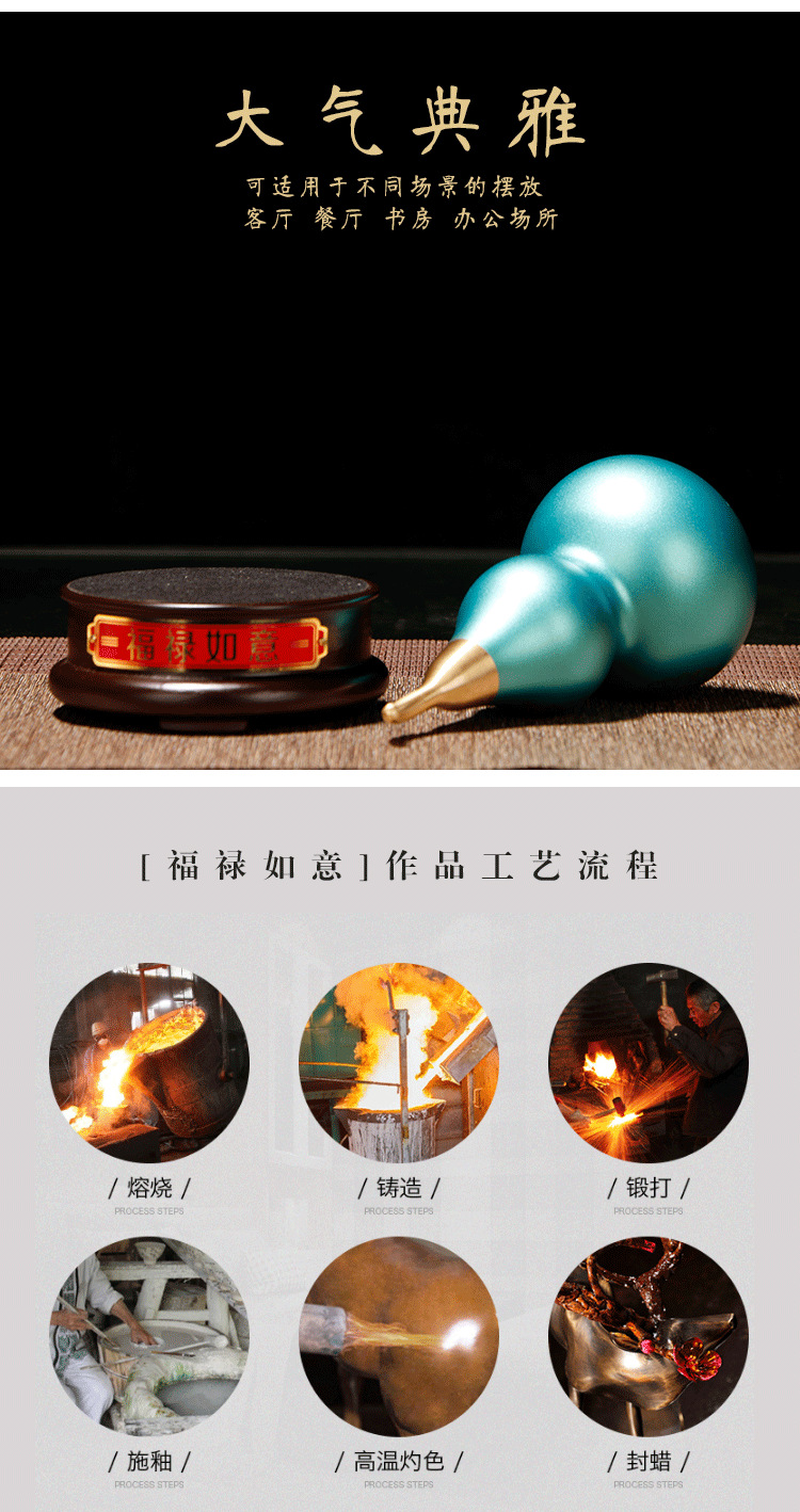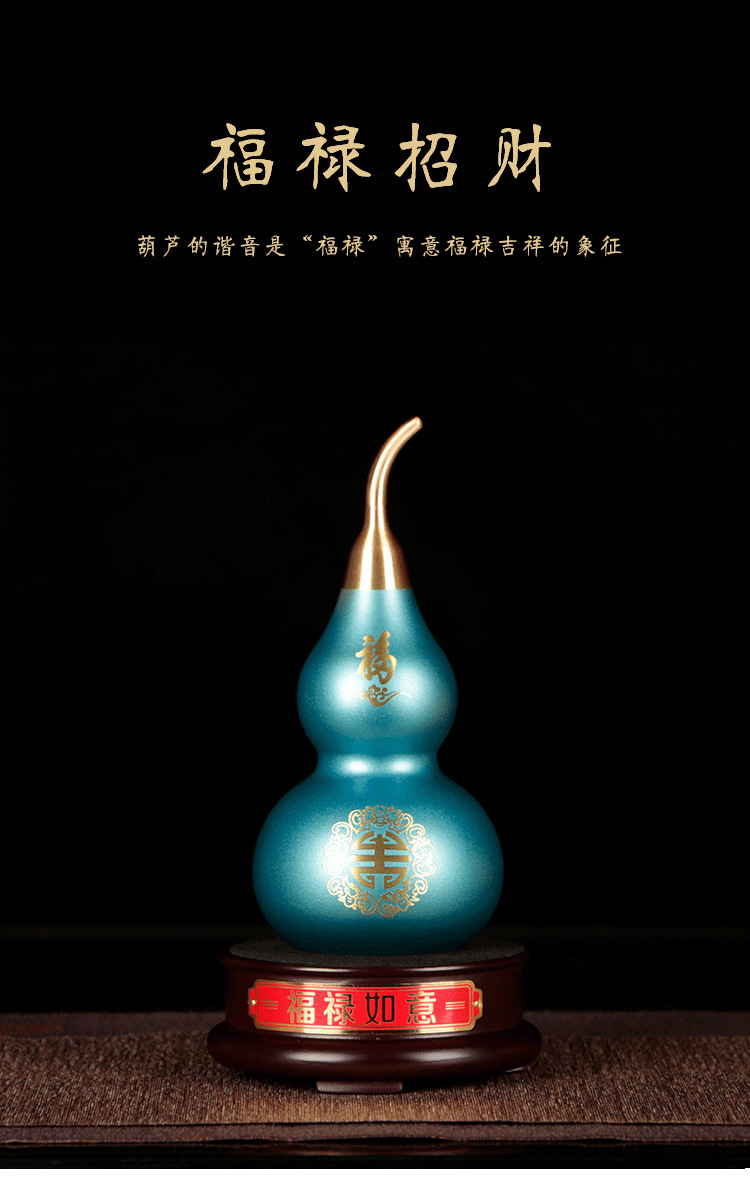 15 / 福禄如意喜上眉梢铜葫芦摆件金属创意黄铜工艺品刻字风水用品摆件批发
