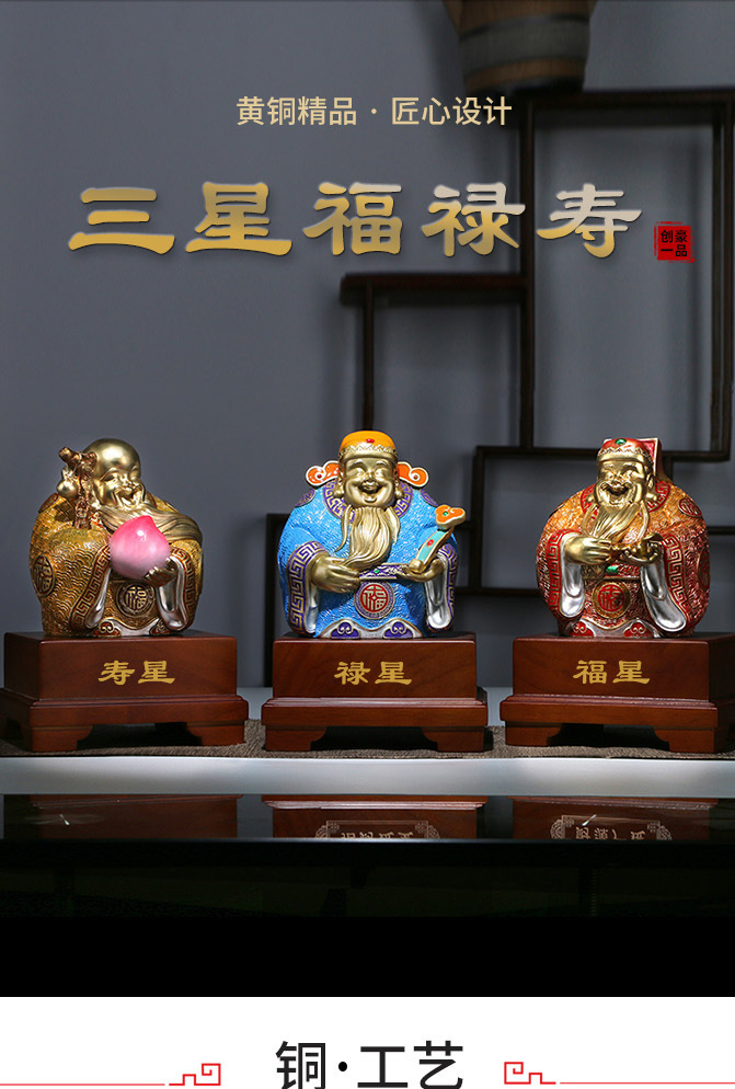17 / 三星福禄寿福禄寿黄铜摆件工艺品中式客厅办公室桌面小摆件开业乔迁商务礼品
