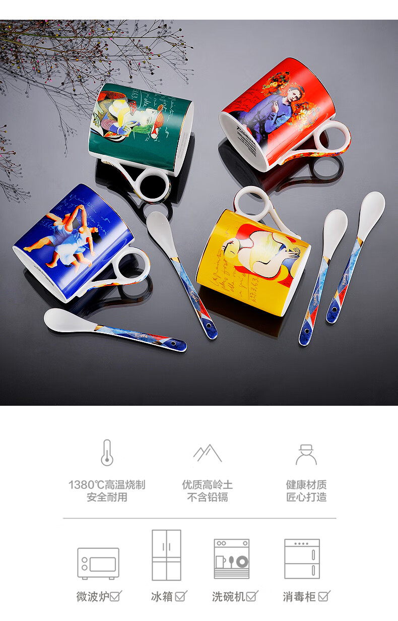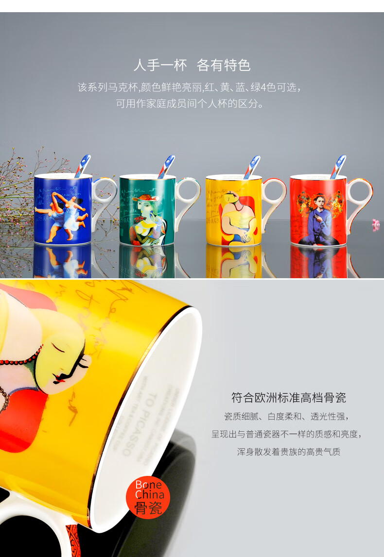 4 / Picasso艺术画作高档礼品高颜值大容量马克情侣咖啡杯带勺子 黄色-梦(1杯1勺)