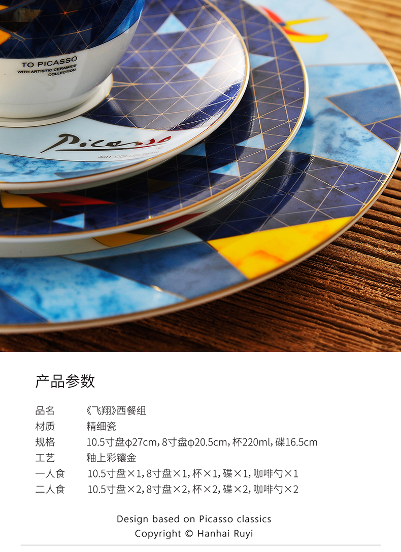 3 / Picasso毕加索西餐碗盘餐具整套 乔迁瓷器碟套装家用 毕加索《飞翔》西餐具2人食