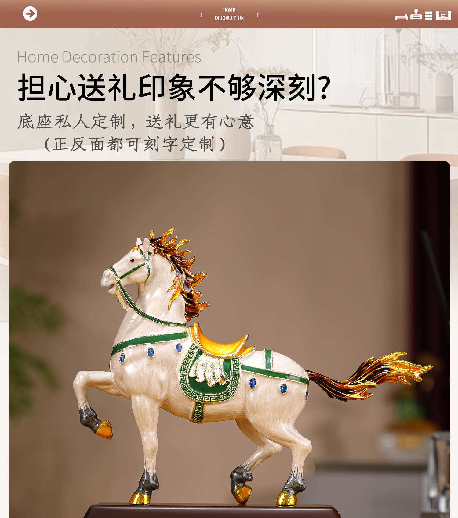 2 / 一马当先珐琅彩装饰品生肖马摆件办公室客厅酒柜玄关装饰开业礼品