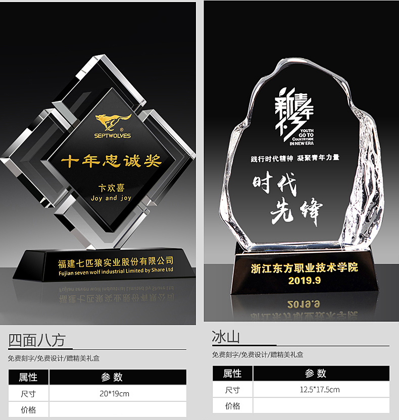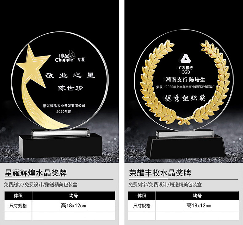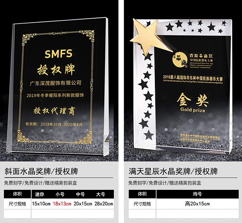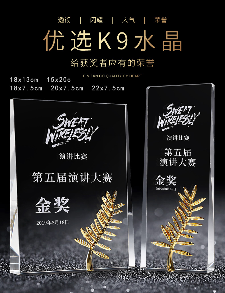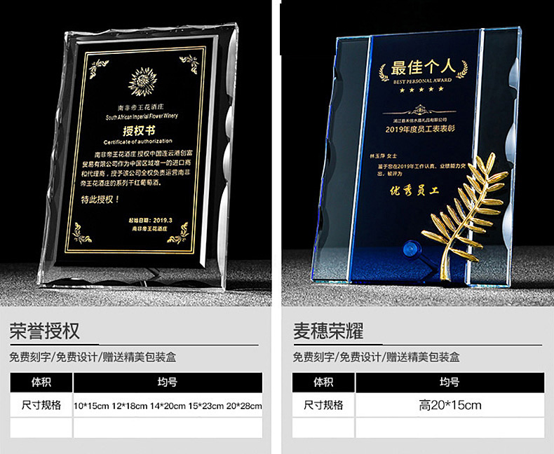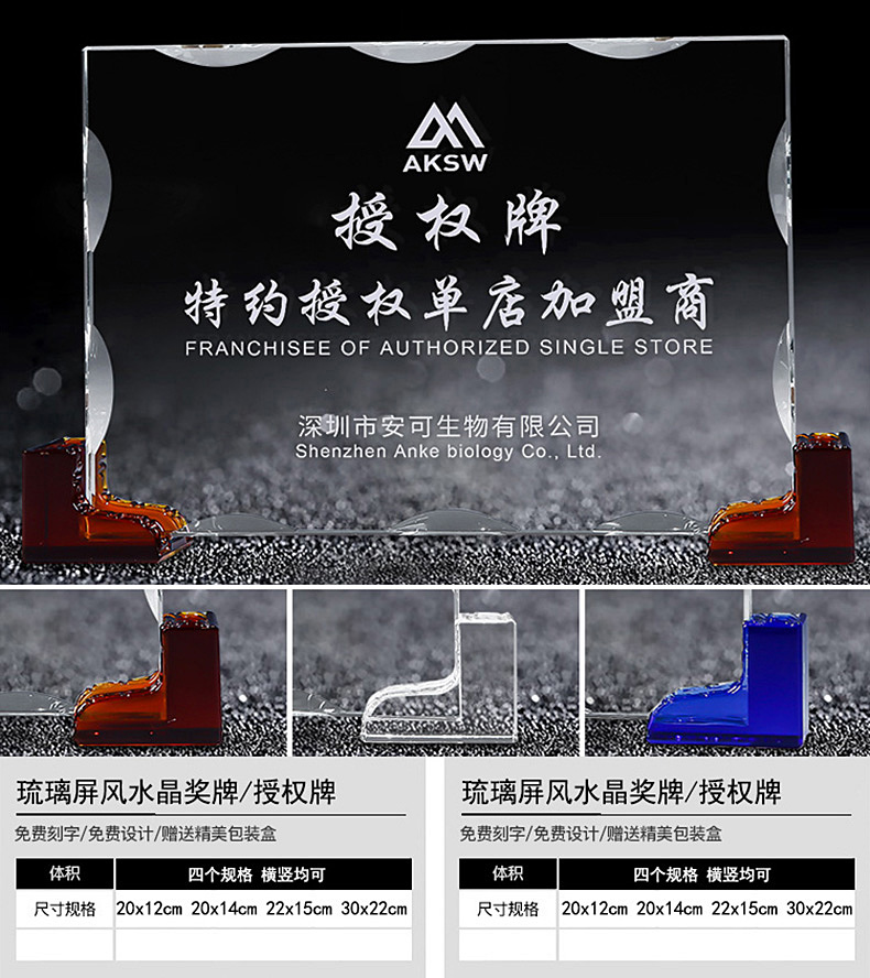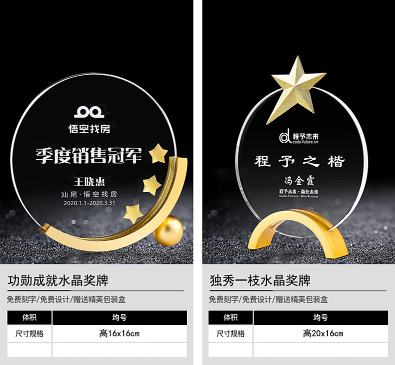 102 / 水晶奖杯奖牌定制刻字 定做授权牌加盟牌毕业留念比赛颁奖纪念品