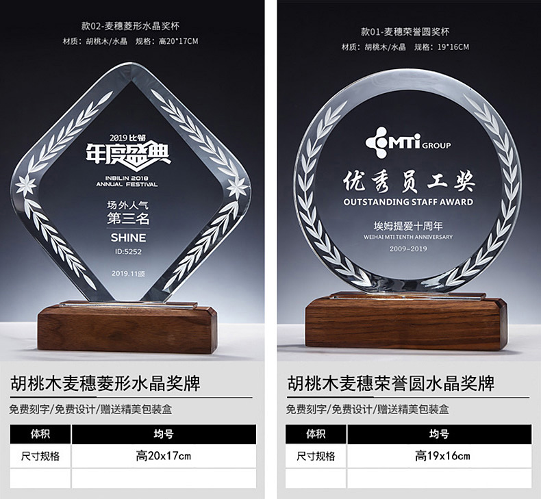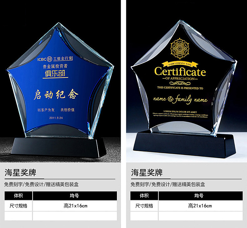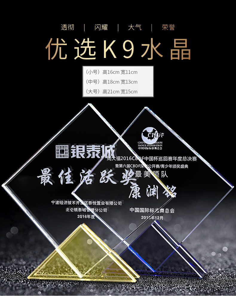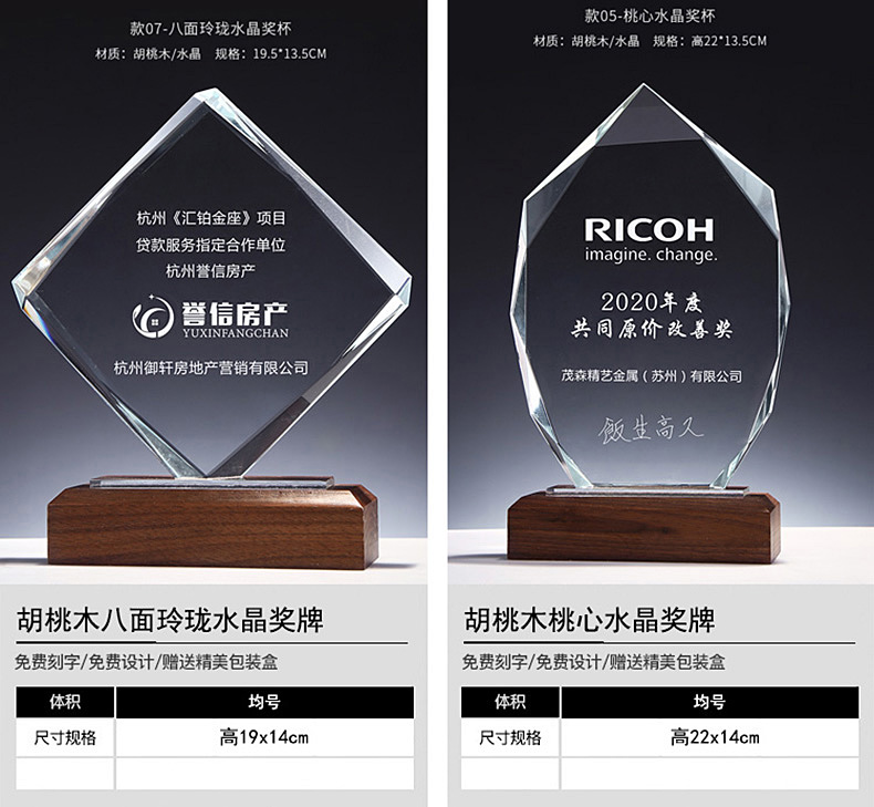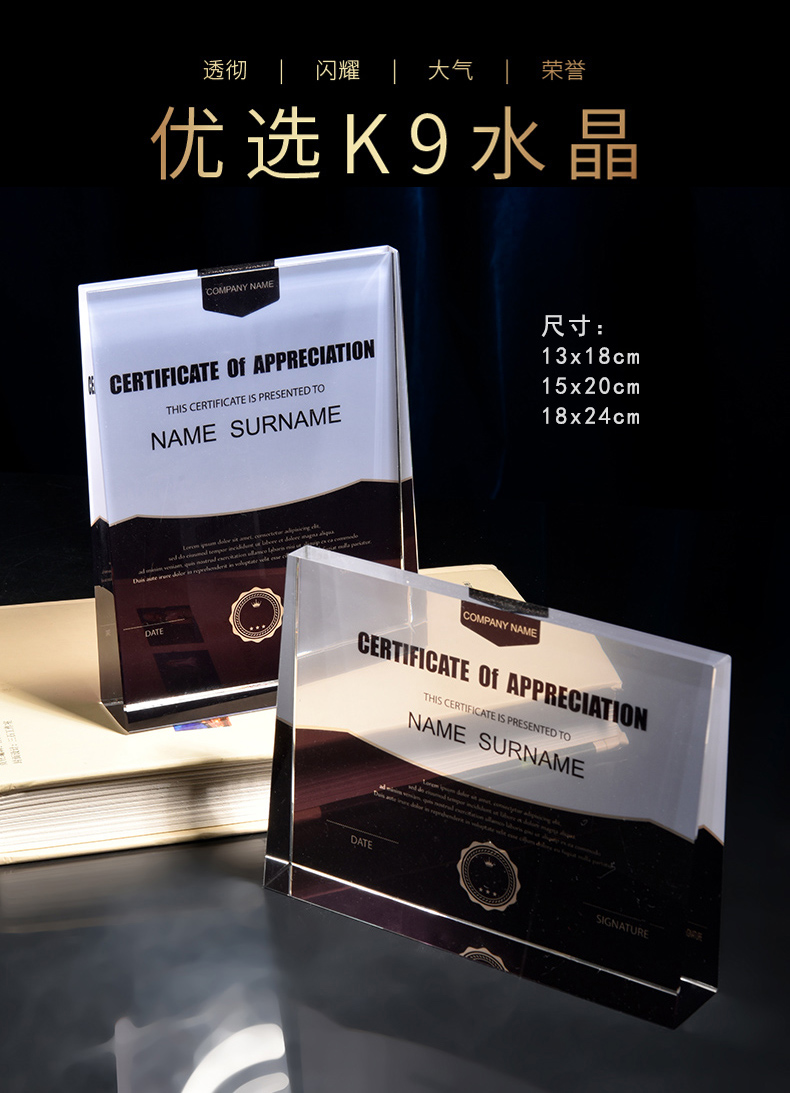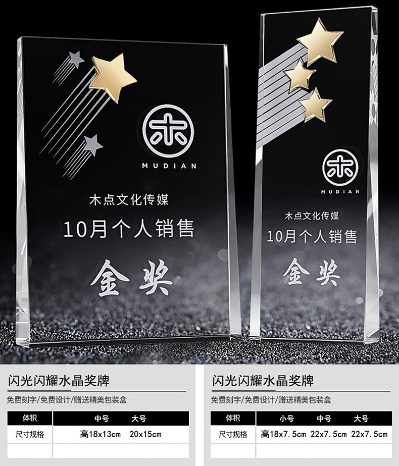 102 / 水晶奖杯奖牌定制刻字 定做授权牌加盟牌毕业留念比赛颁奖纪念品