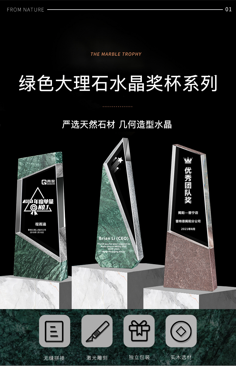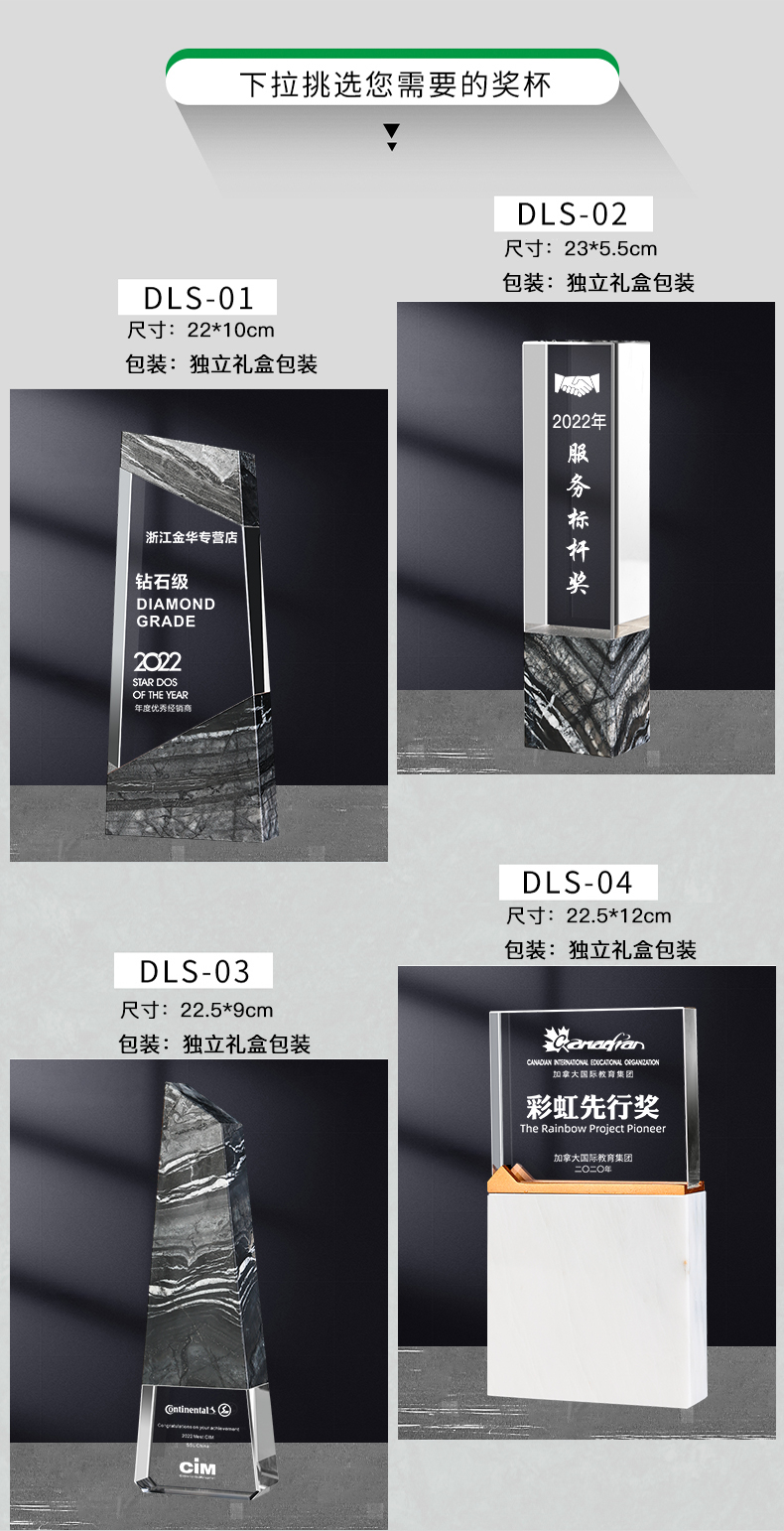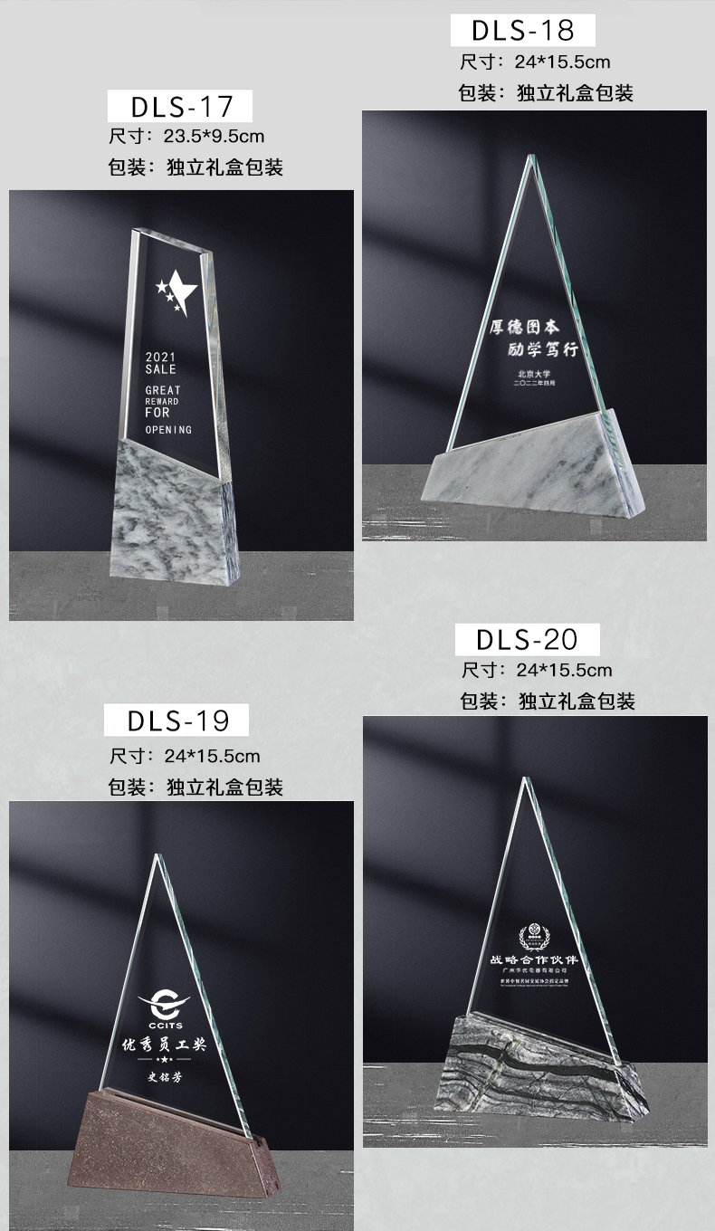 241 / 【大理石水晶】高档大理石水晶奖杯公司年会优秀员工嘉奖纪念退休颁奖活动定制