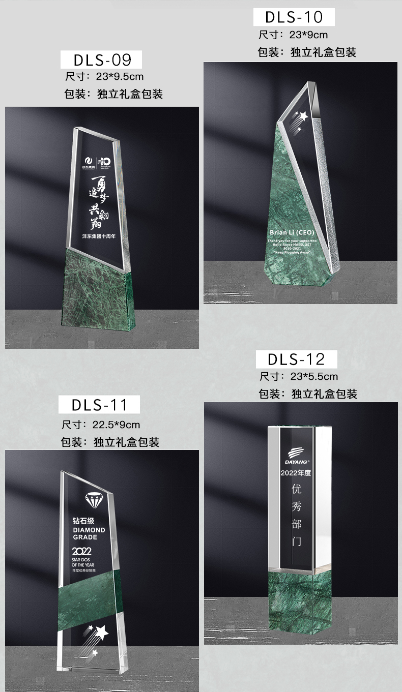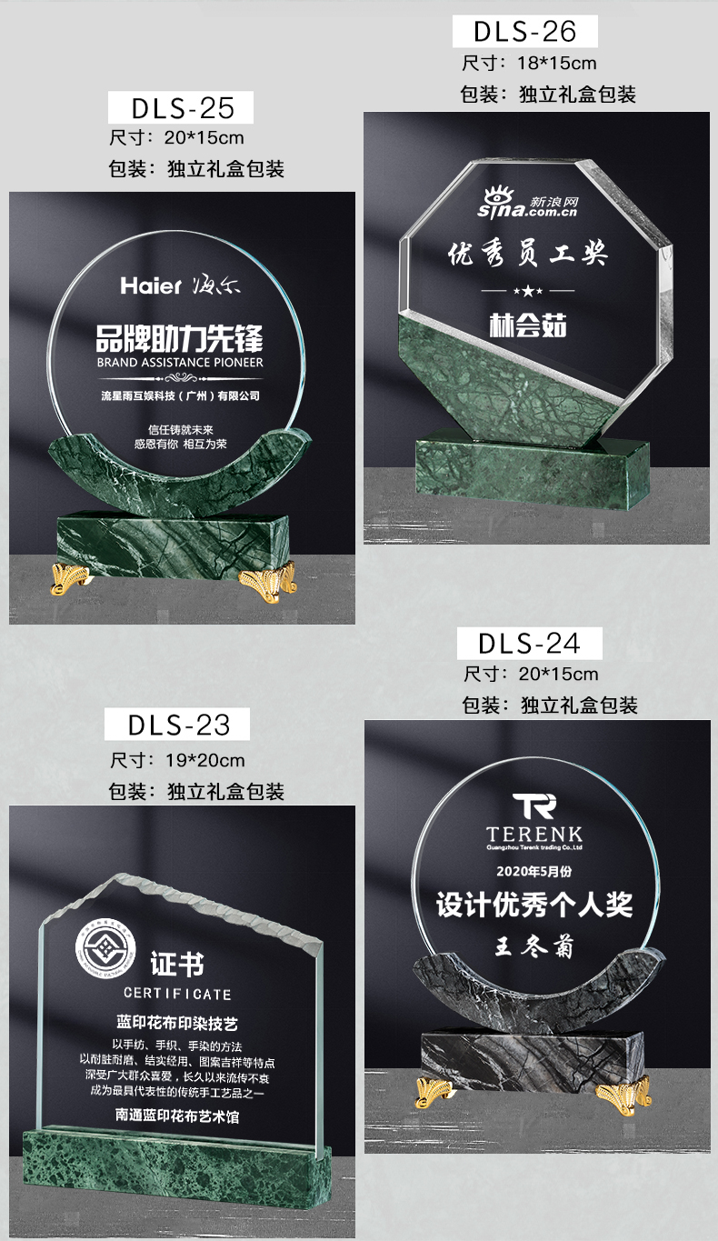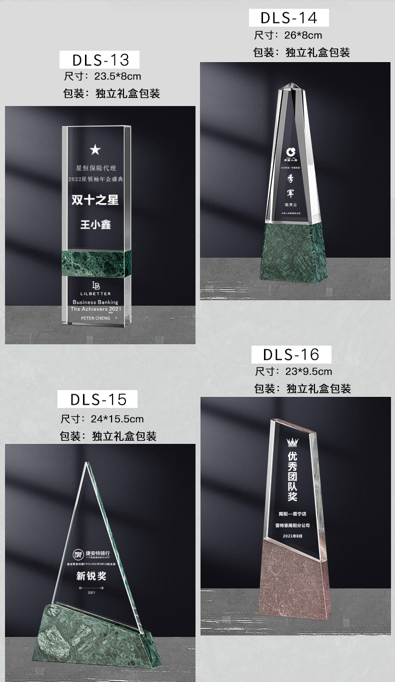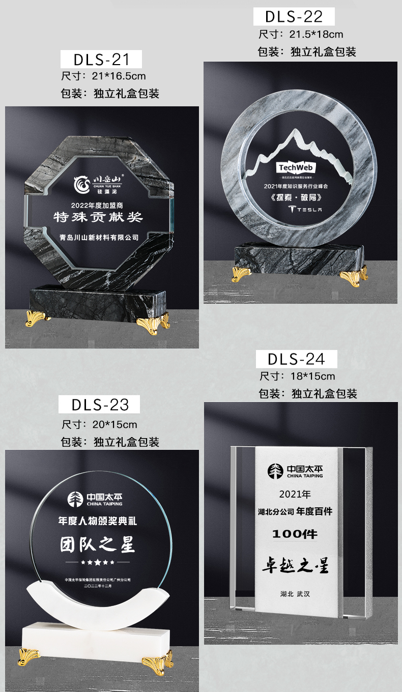 241 / 【大理石水晶】高档大理石水晶奖杯公司年会优秀员工嘉奖纪念退休颁奖活动定制