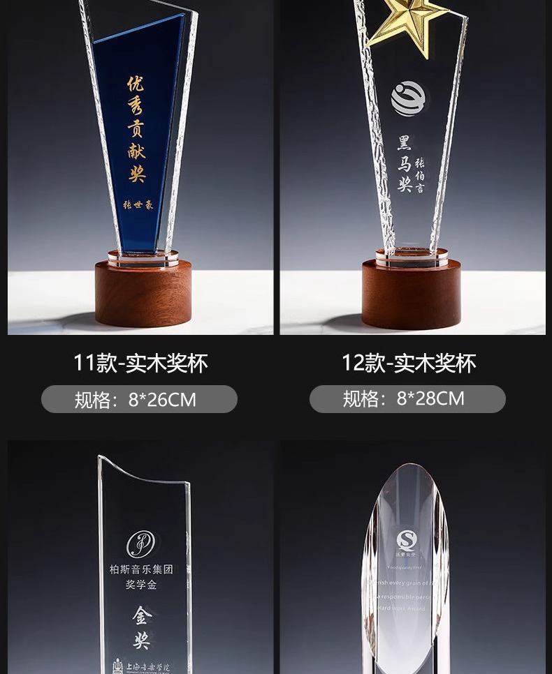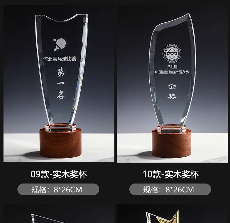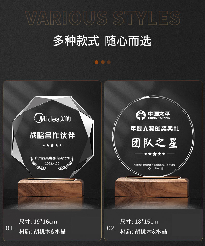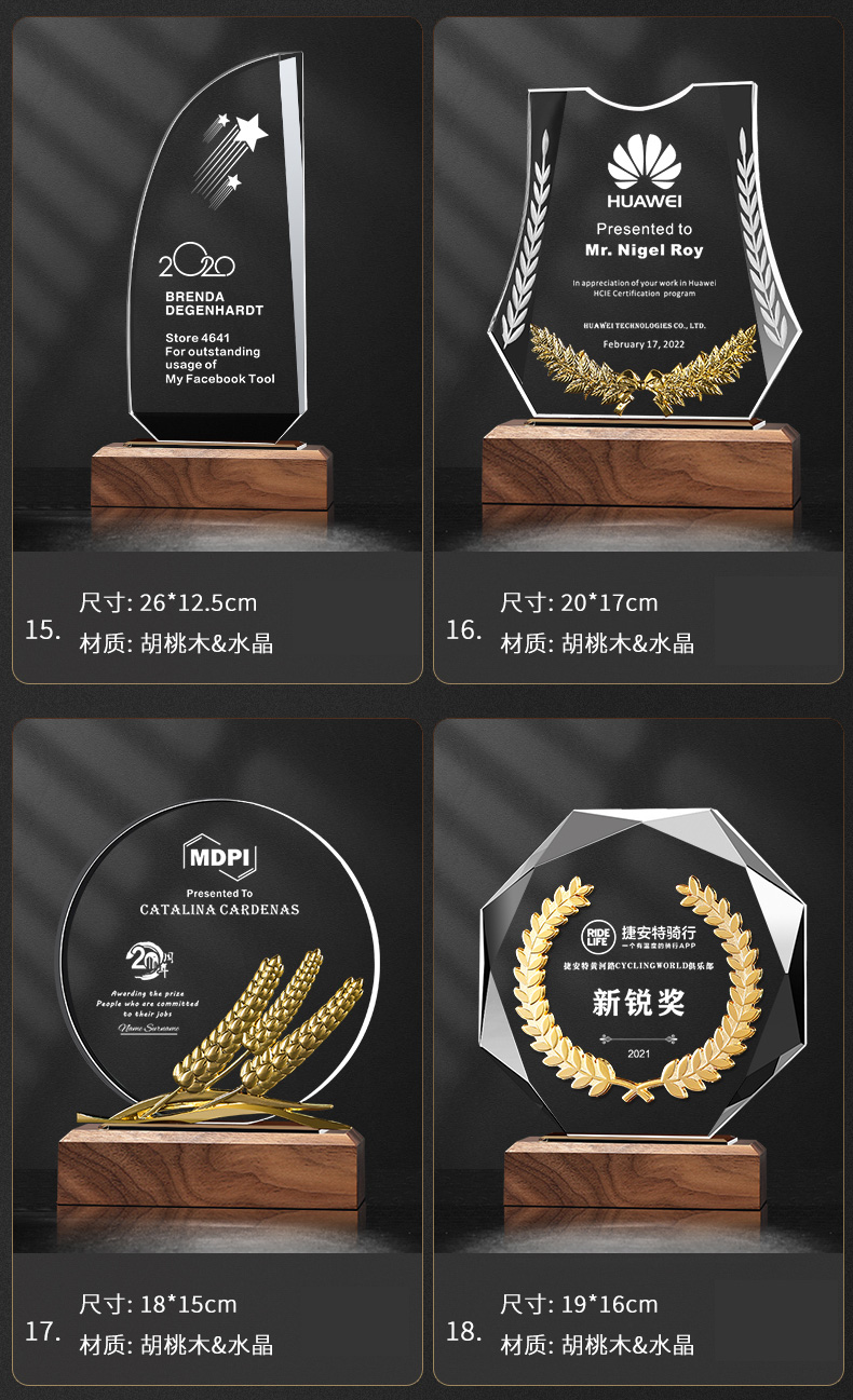 111 / 创意实木水晶奖杯奖牌定制奖牌定做荣誉牌优秀员工年会纪念品表彰颁奖