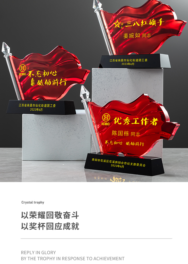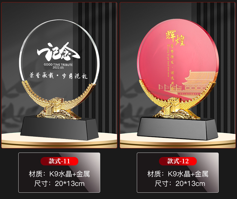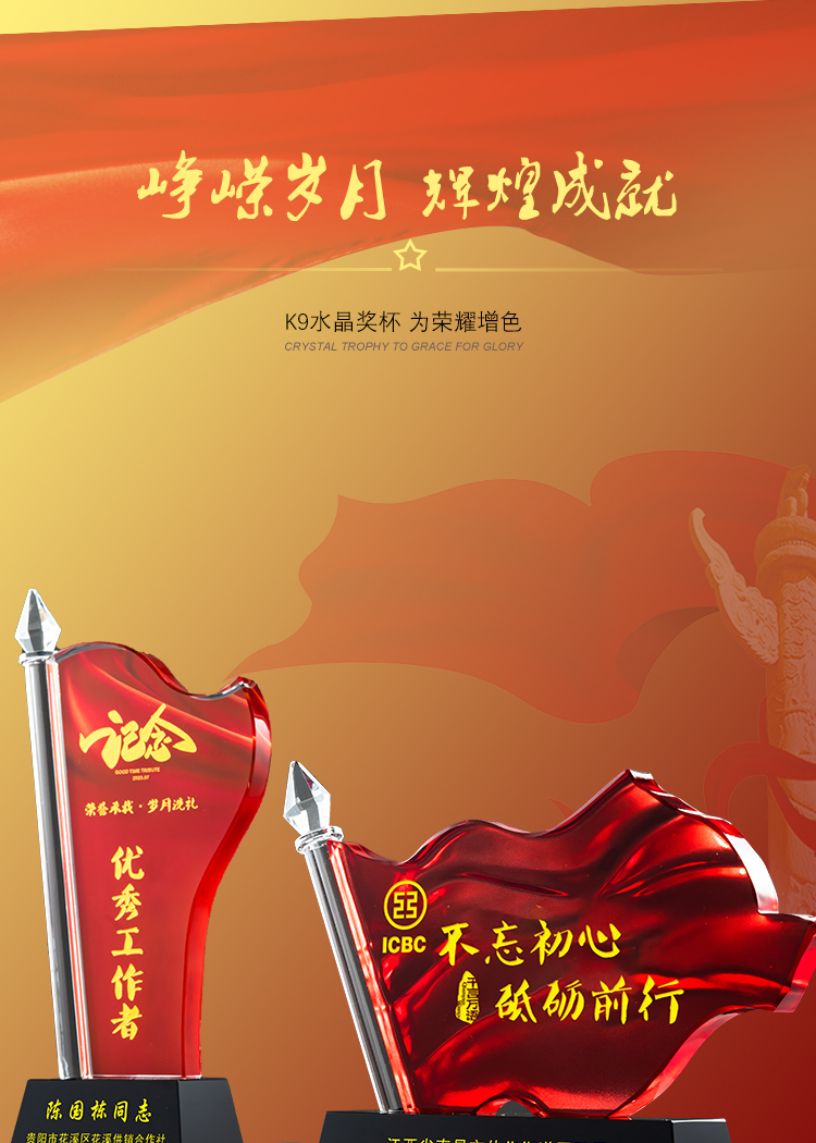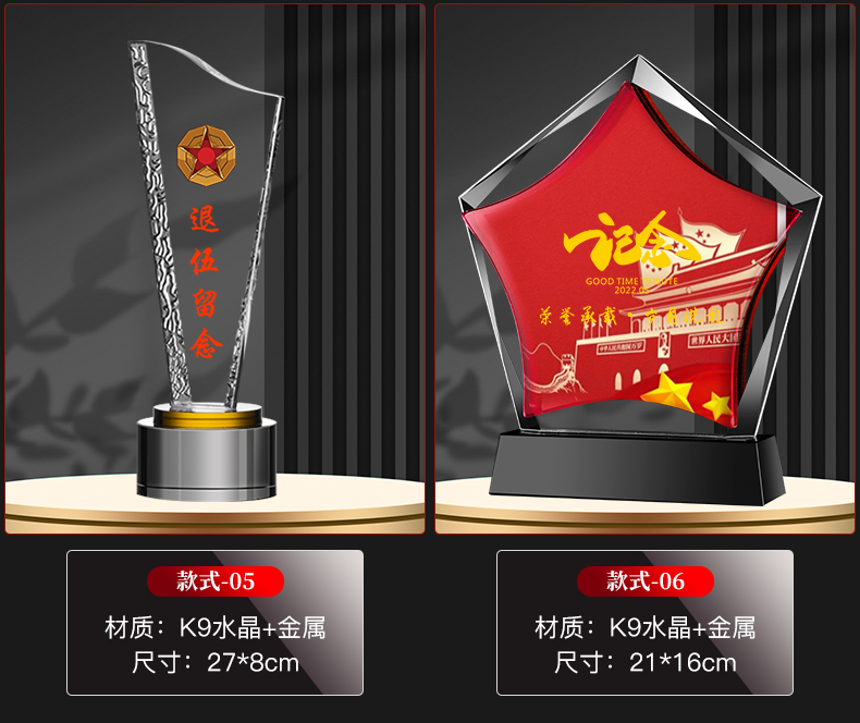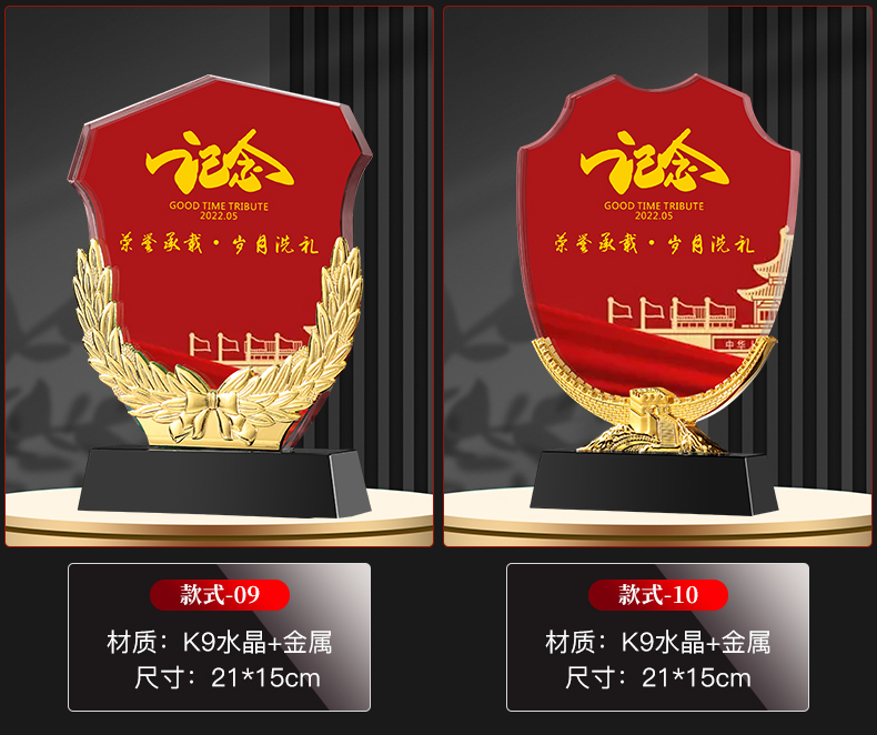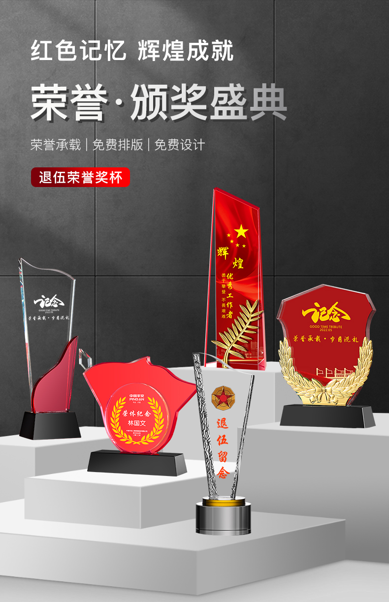 438 / 【红旗盾牌主题】退伍八一小金人军人老兵优秀士兵纪念品水晶奖杯定制金属树脂镀金