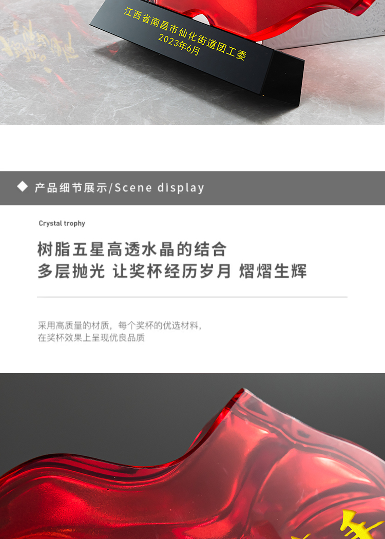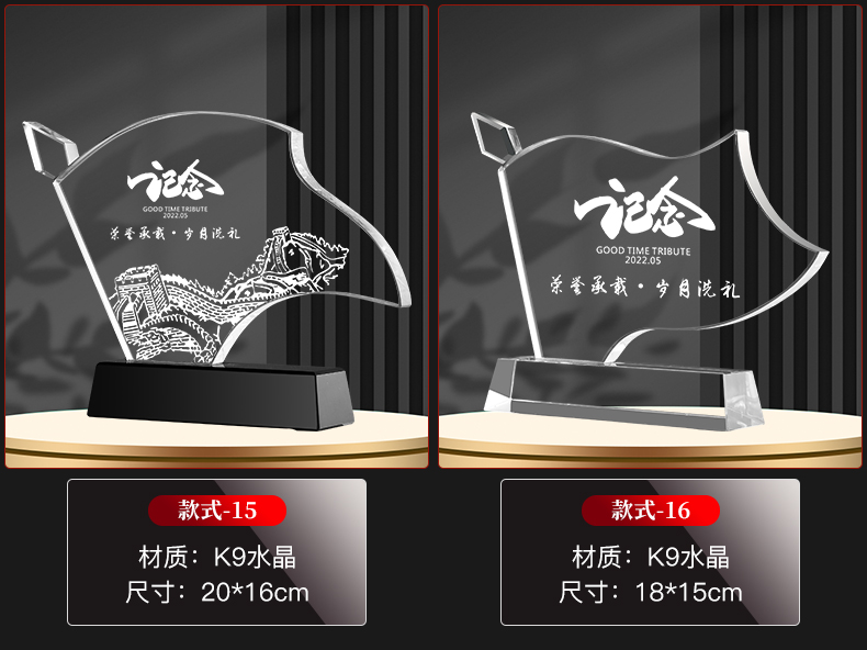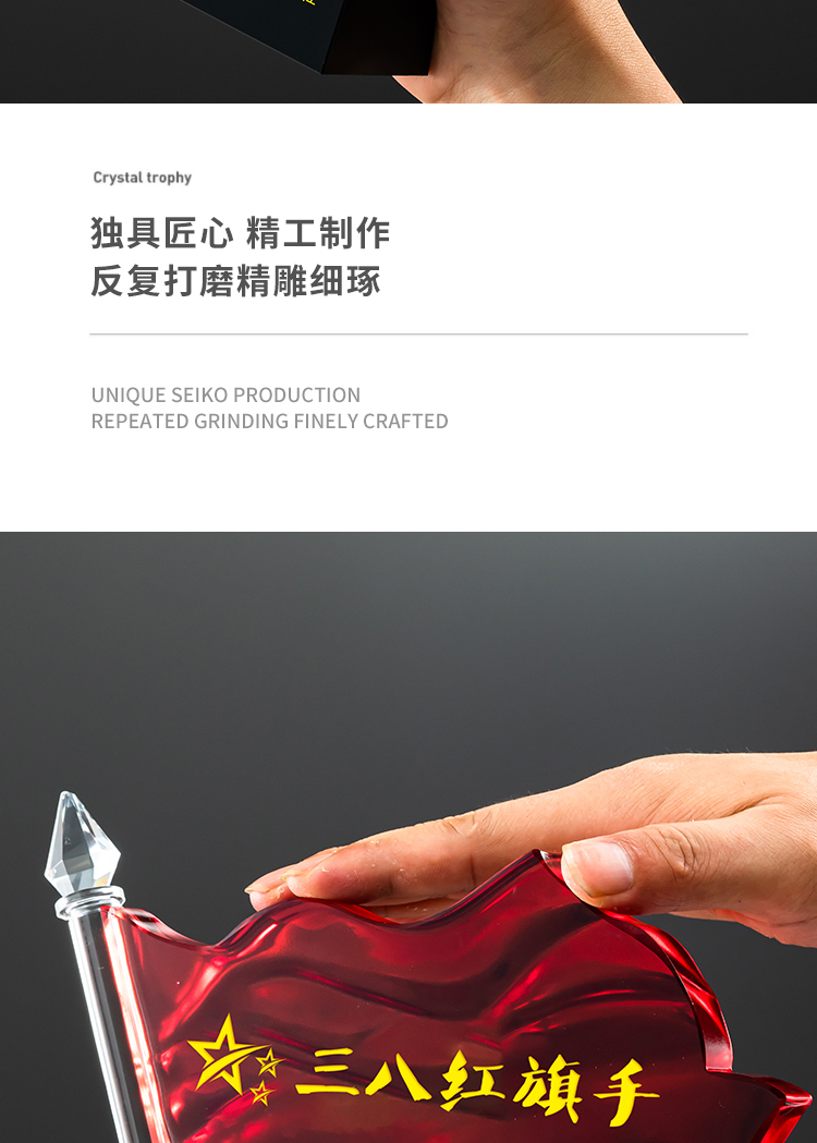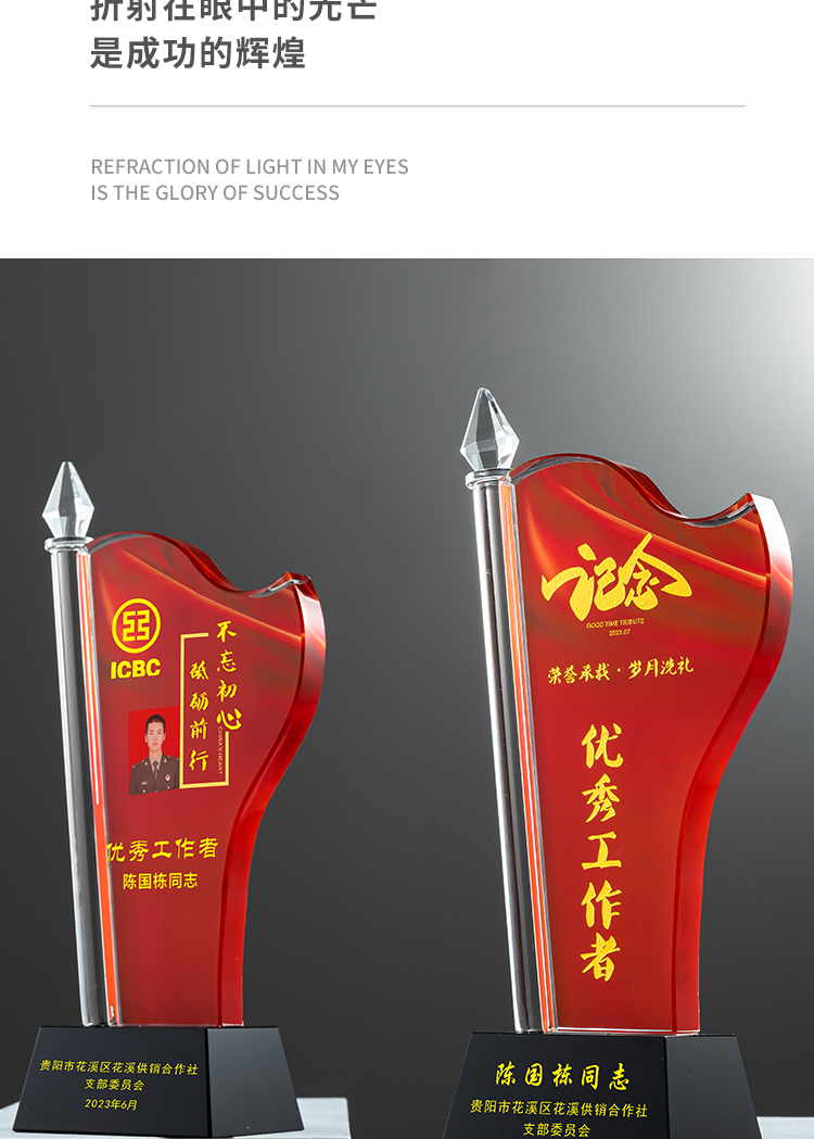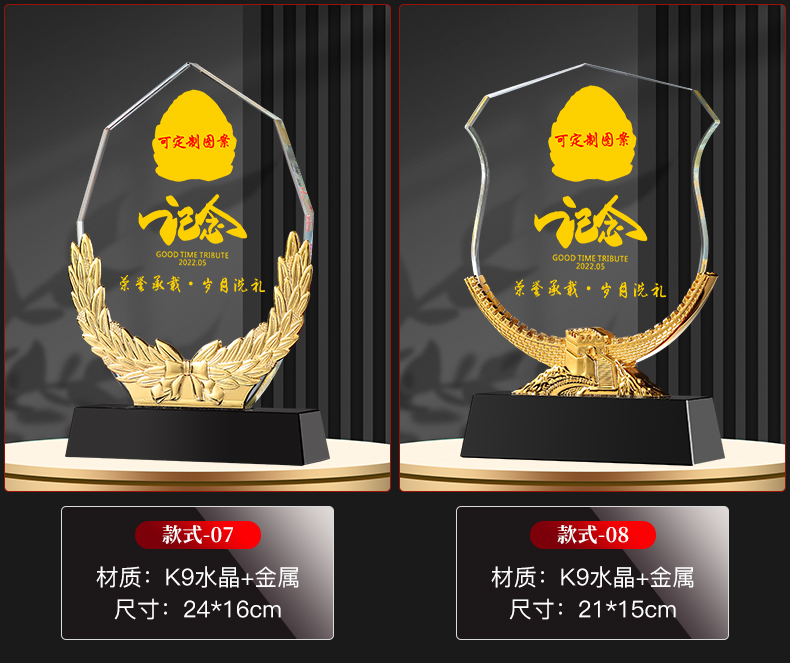438 / 【红旗盾牌主题】退伍八一小金人军人老兵优秀士兵纪念品水晶奖杯定制金属树脂镀金