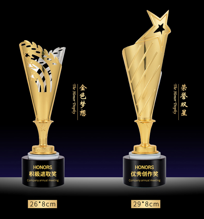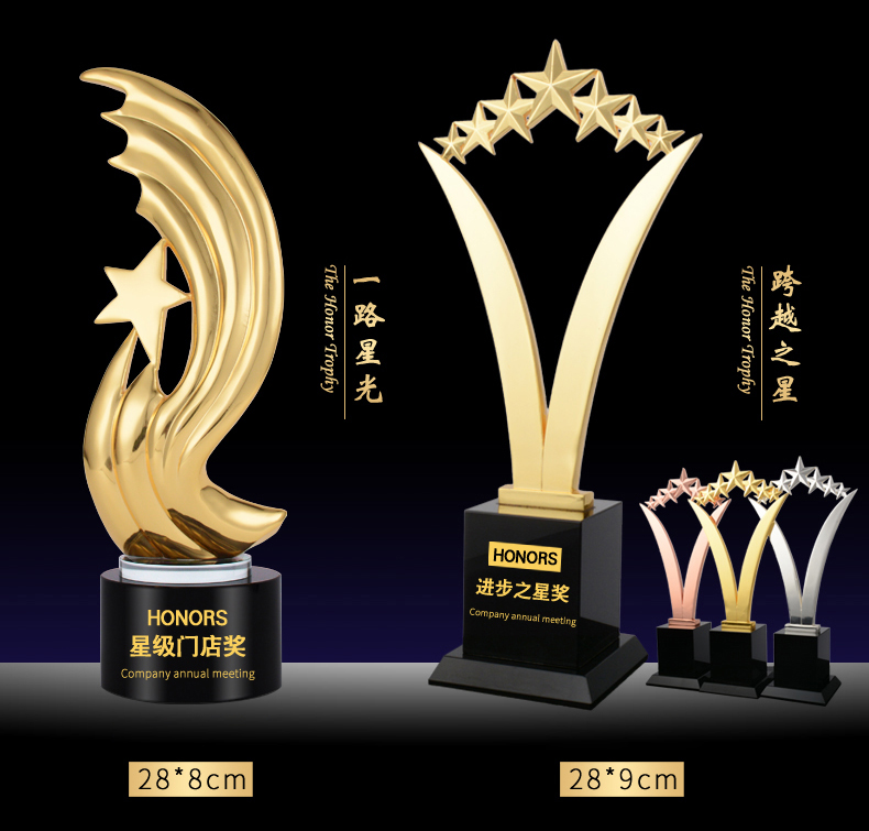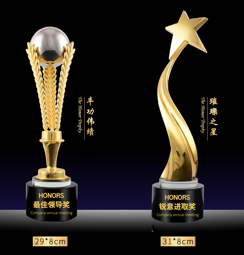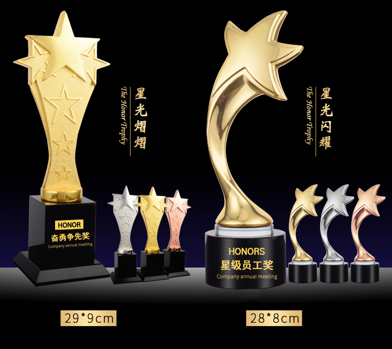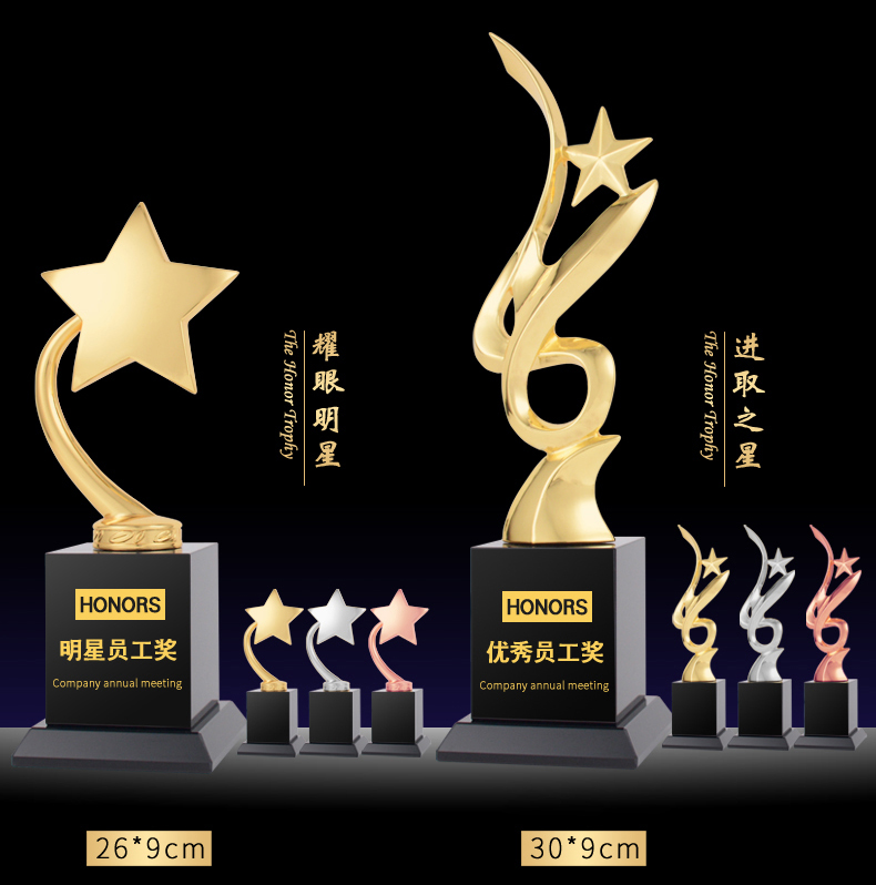 482 / 金属奖杯定制优秀员工党员五角星篮球创意树脂水晶奖牌刻字定做