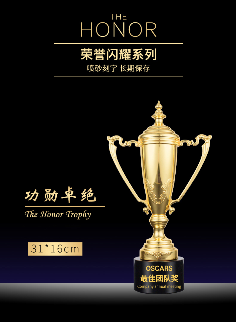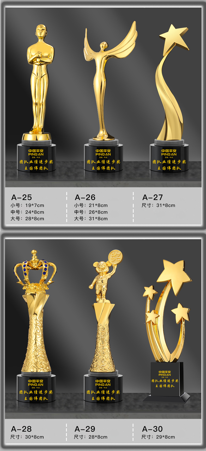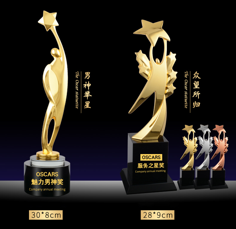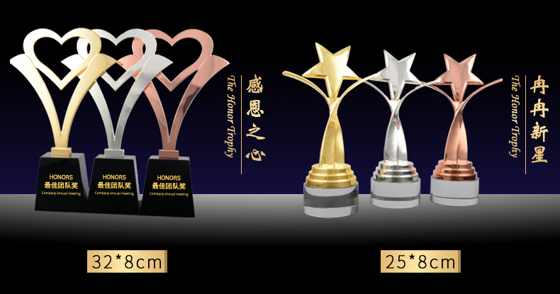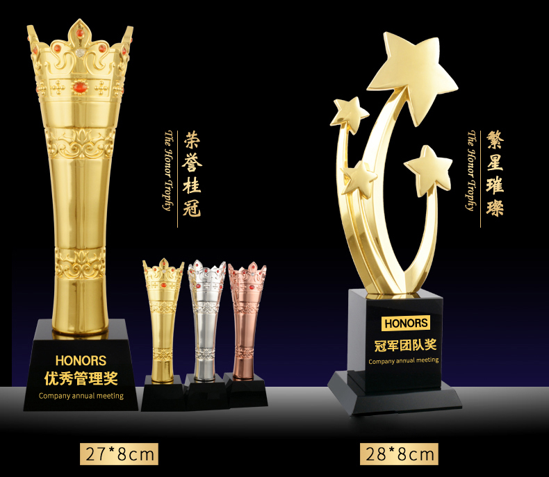 482 / 金属奖杯定制优秀员工党员五角星篮球创意树脂水晶奖牌刻字定做