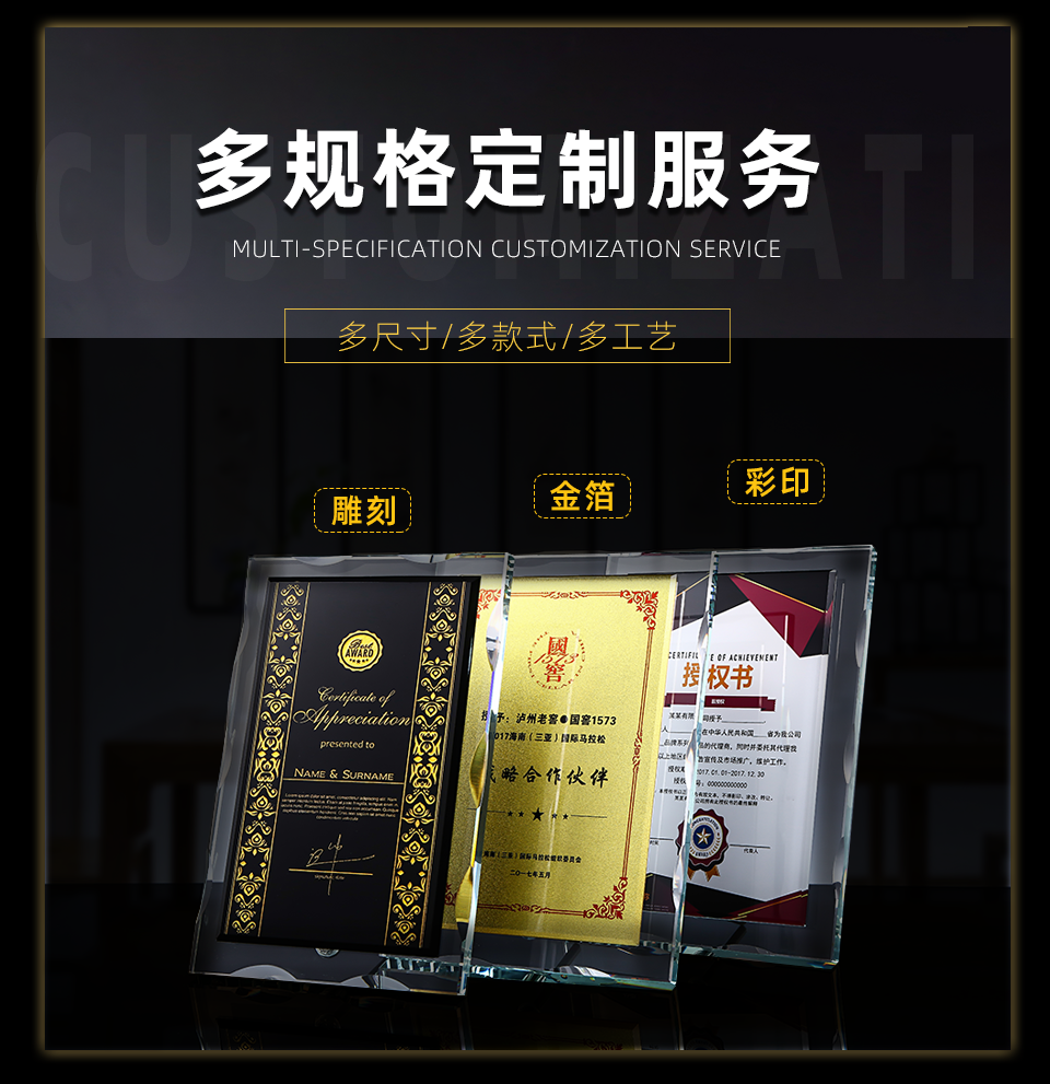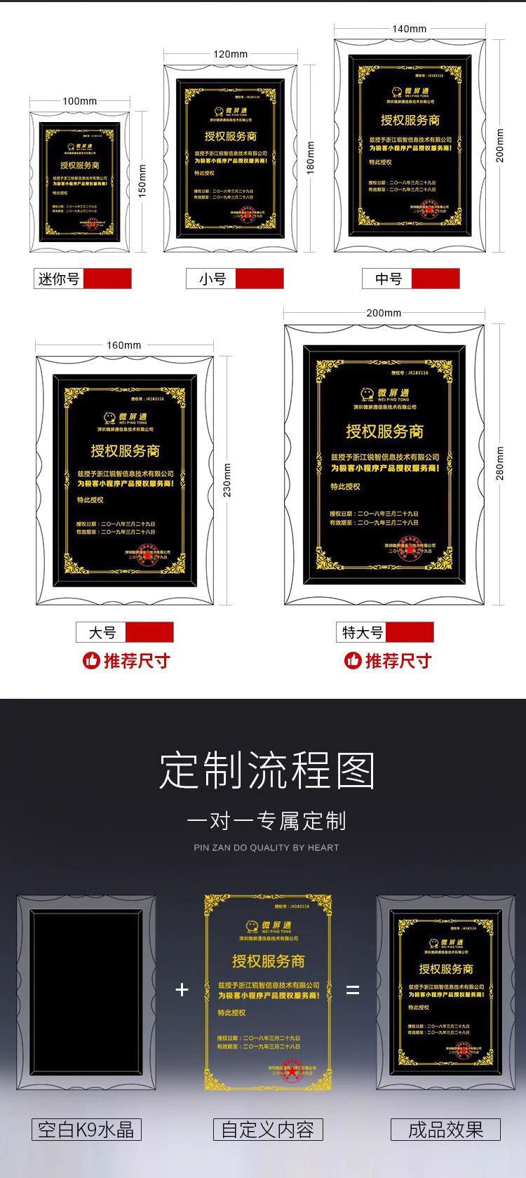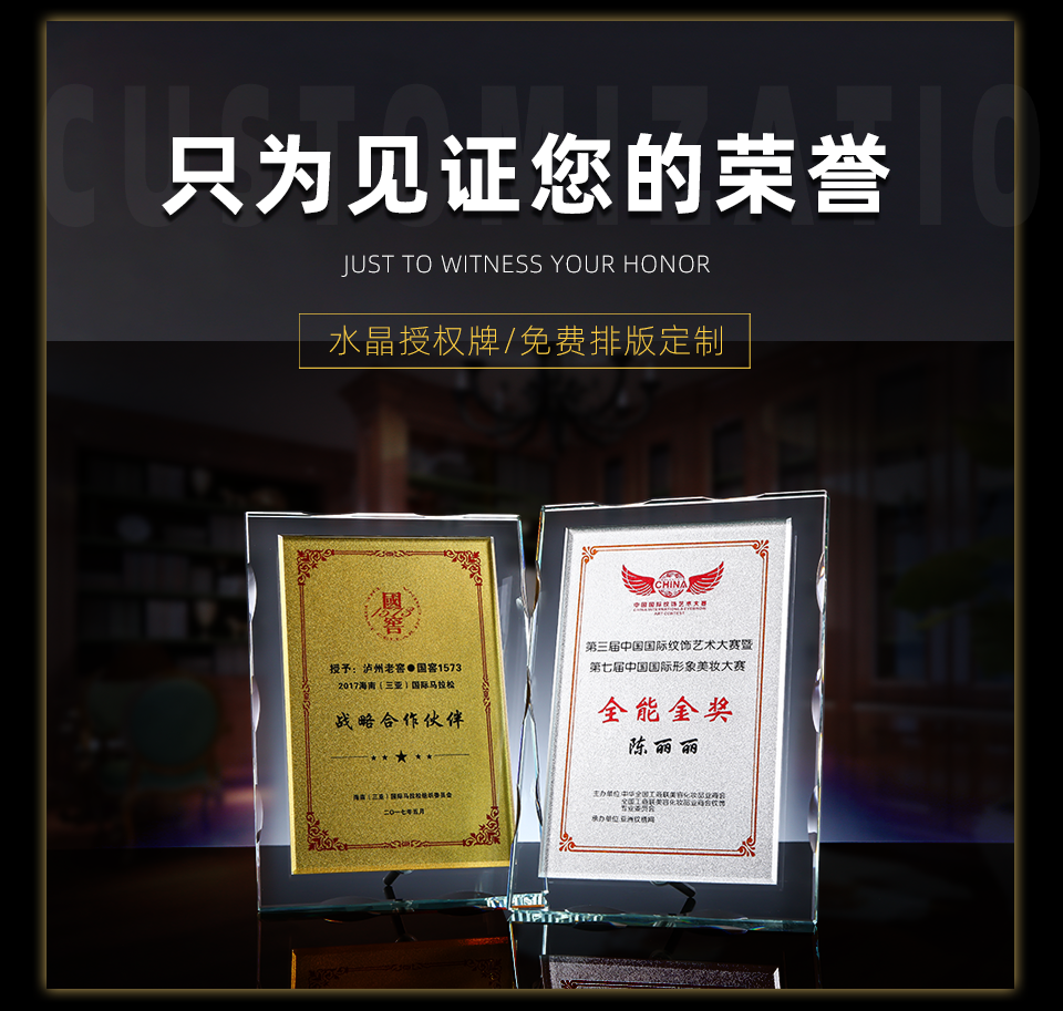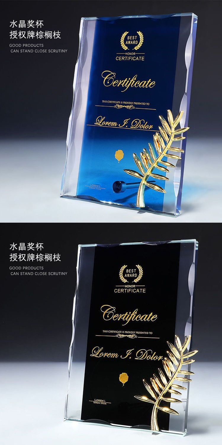 106 / 高档水晶授权牌创意金属奖杯定制胡桃木授权书代理商感谢牌奖座