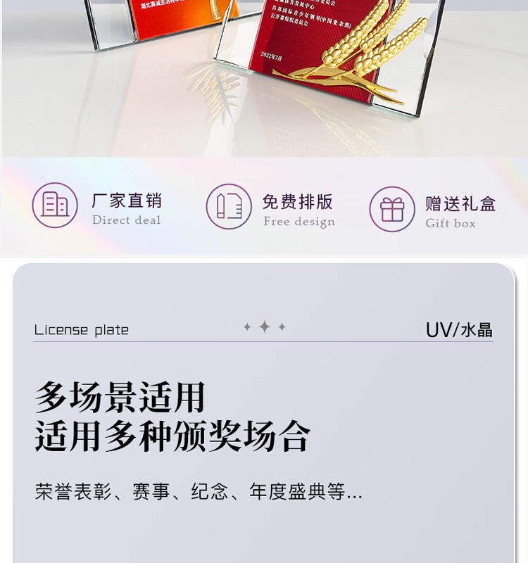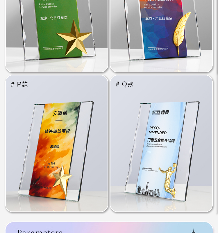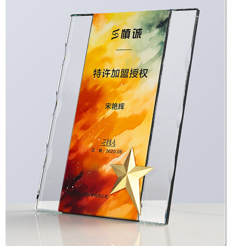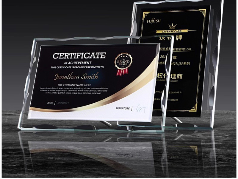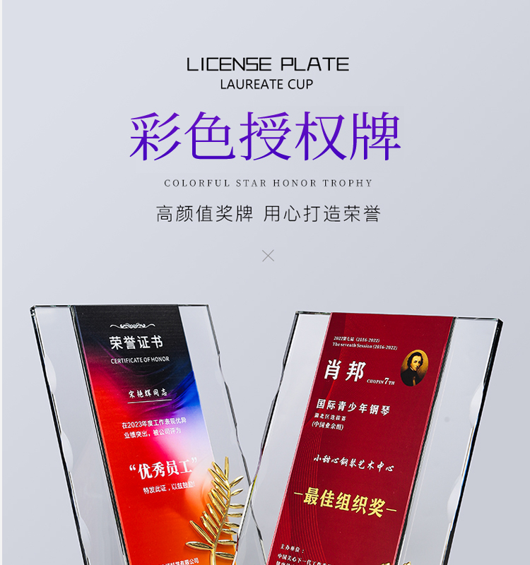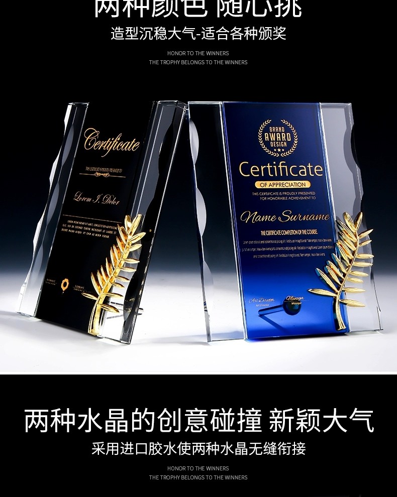 106 / 高档水晶授权牌创意金属奖杯定制胡桃木授权书代理商感谢牌奖座