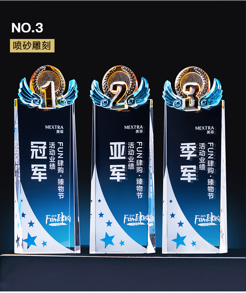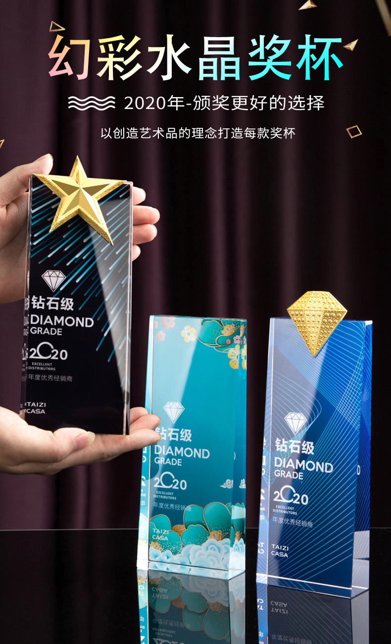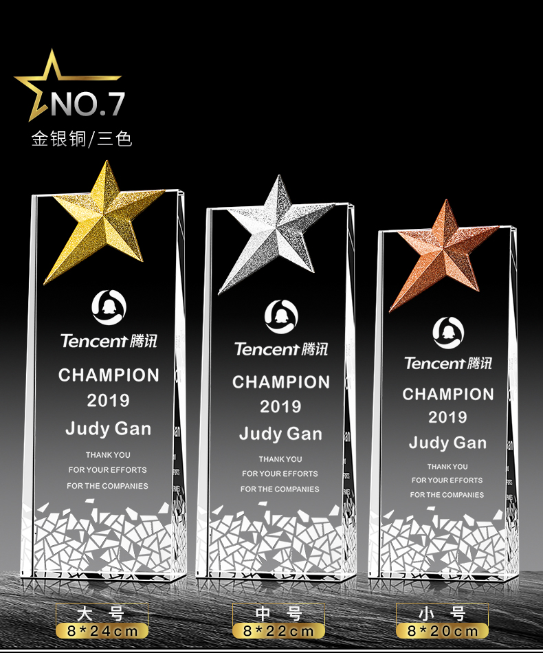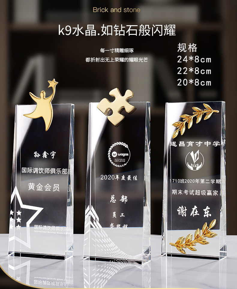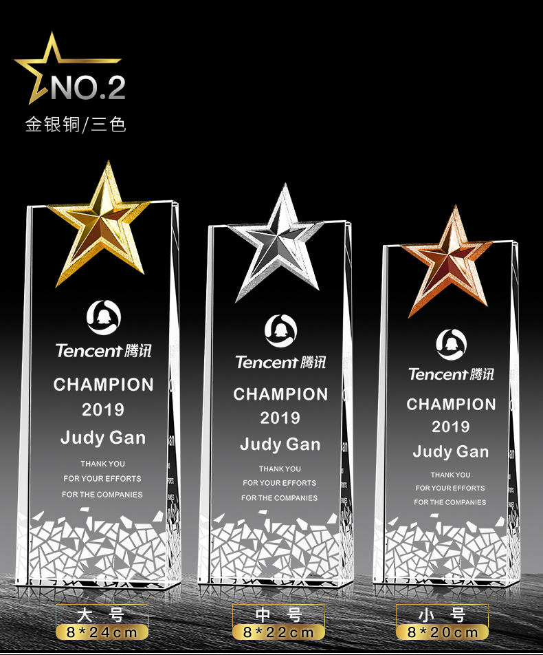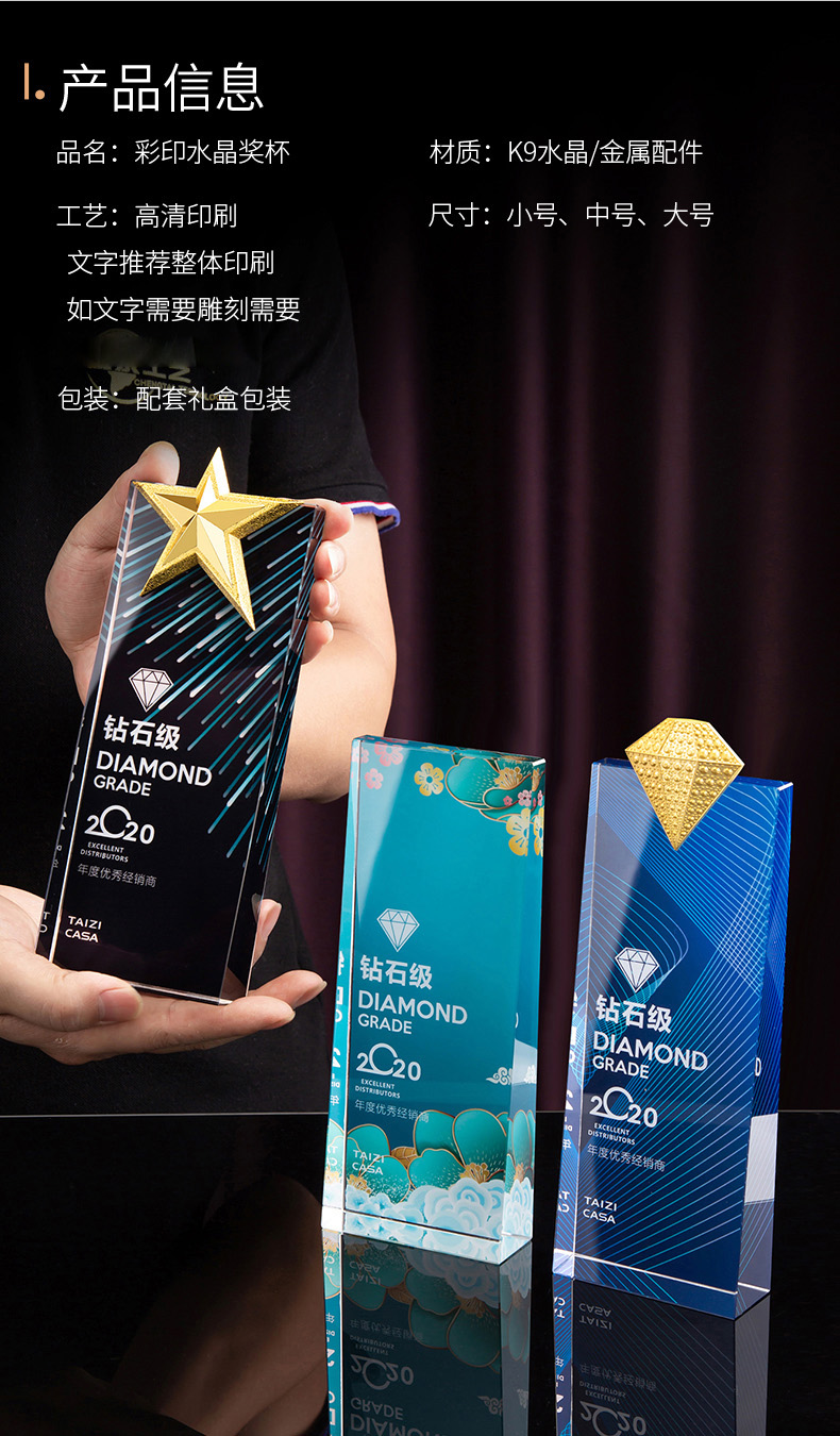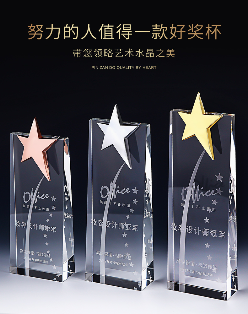 114 / 水晶奖杯定制作奖牌麦穗五角星钻石皇冠定做银行保险员工年会刻字