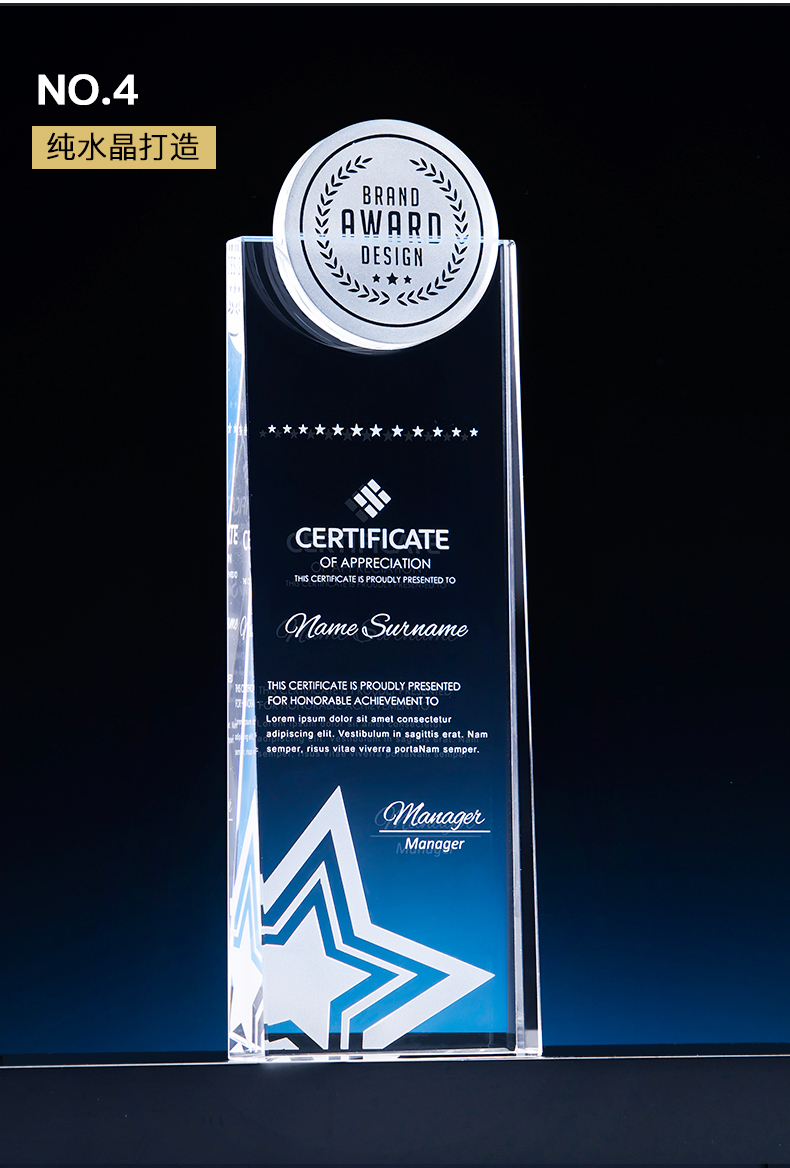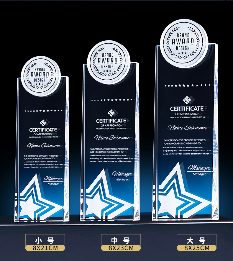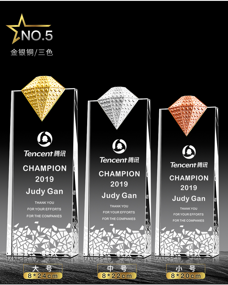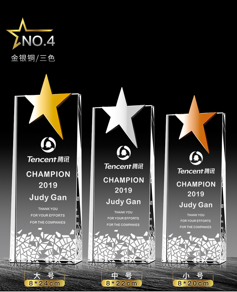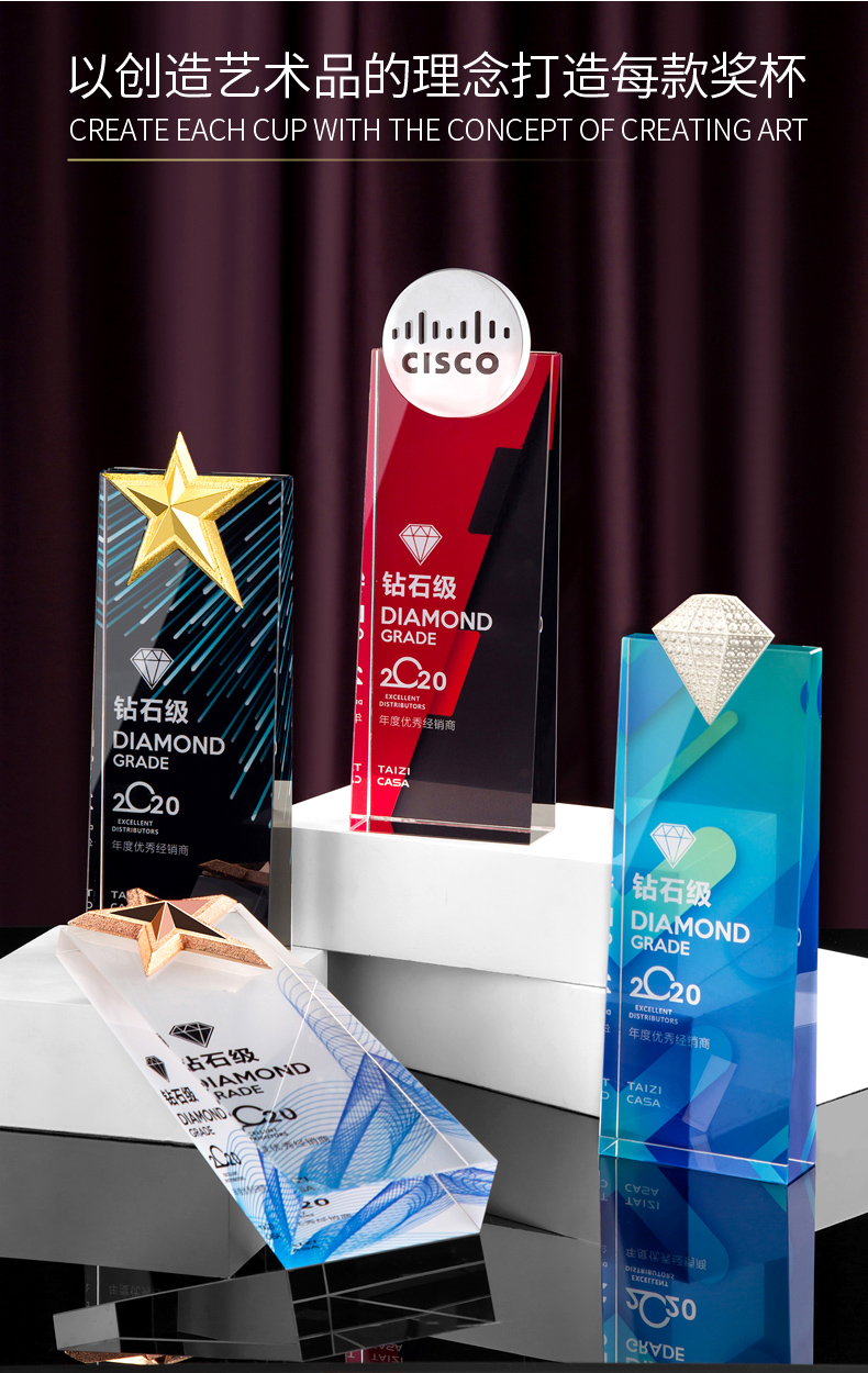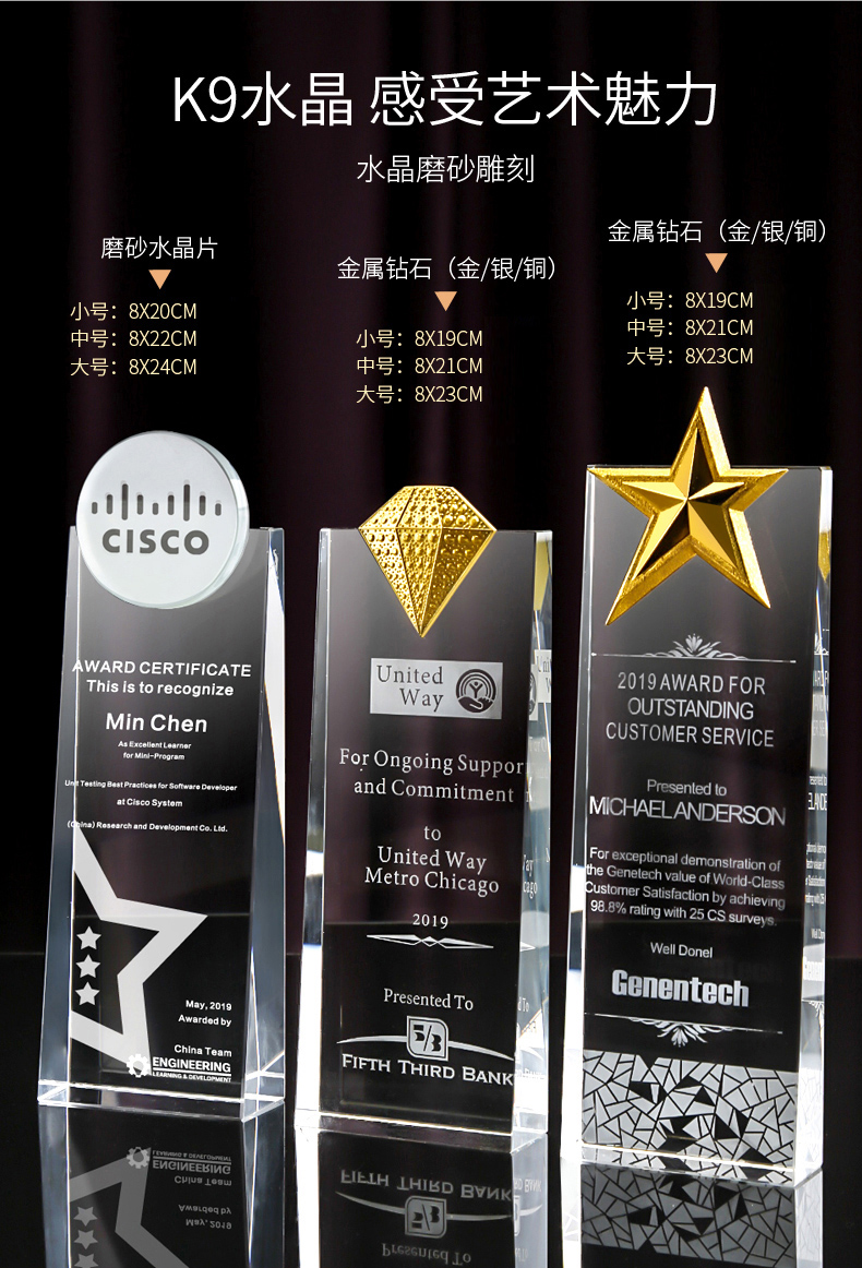 114 / 水晶奖杯定制作奖牌麦穗五角星钻石皇冠定做银行保险员工年会刻字