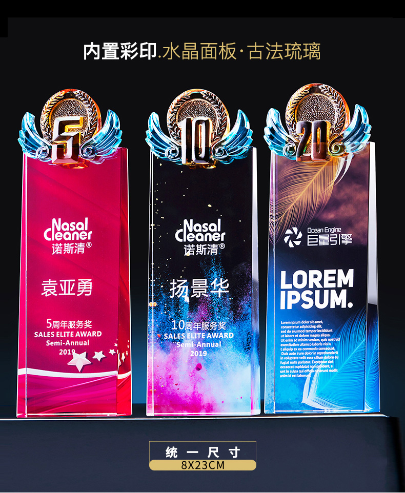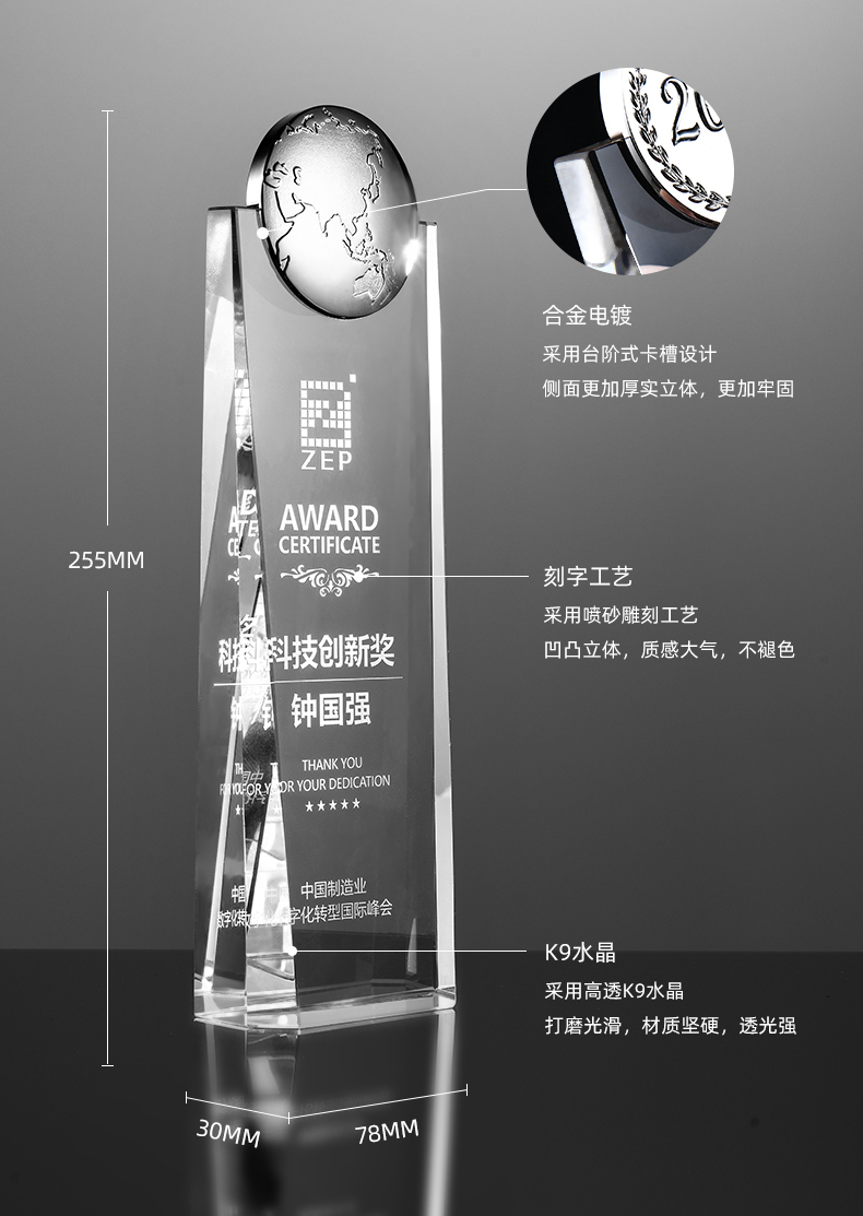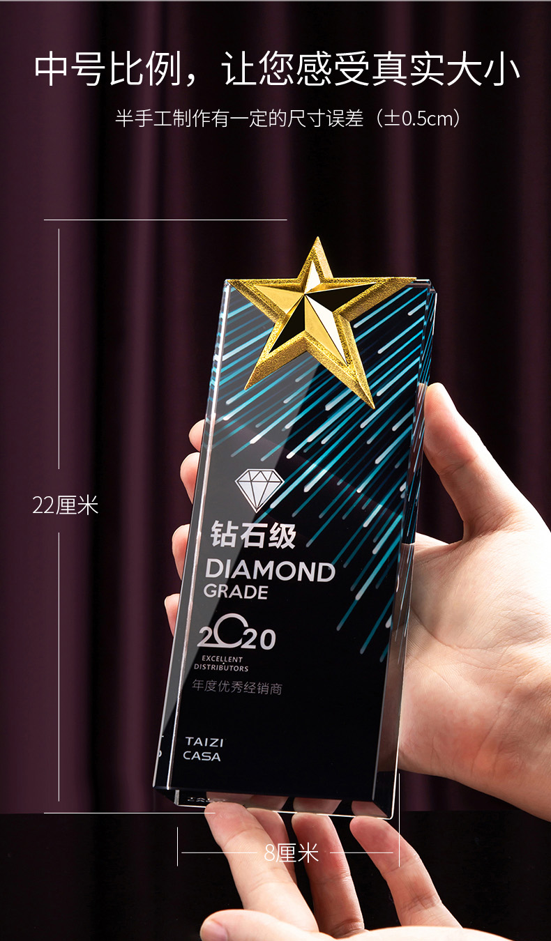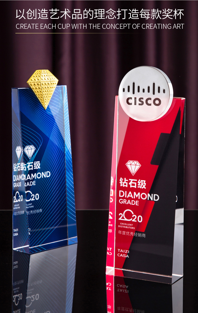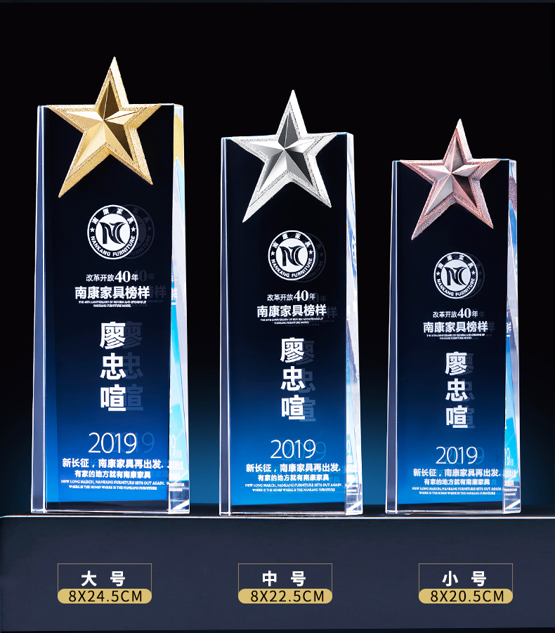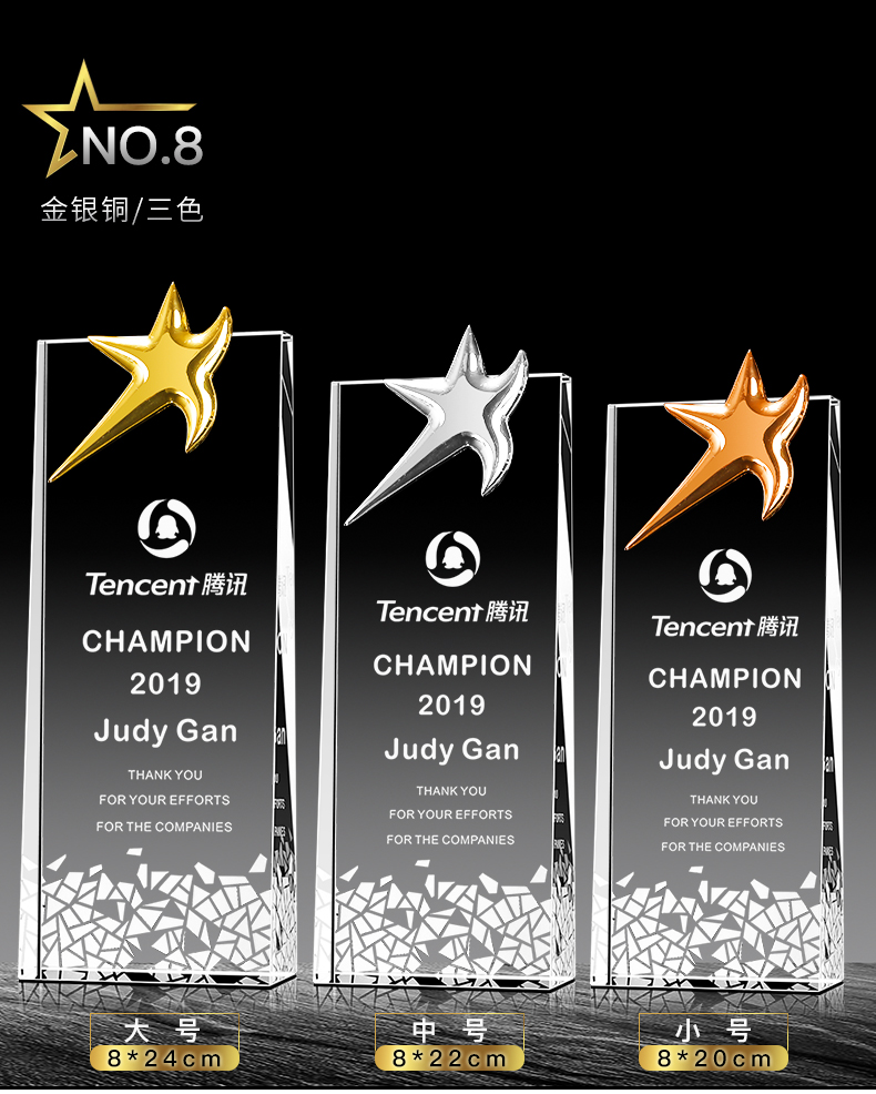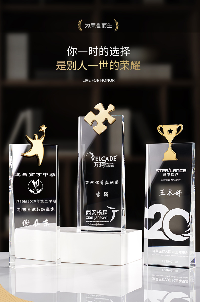 114 / 水晶奖杯定制作奖牌麦穗五角星钻石皇冠定做银行保险员工年会刻字