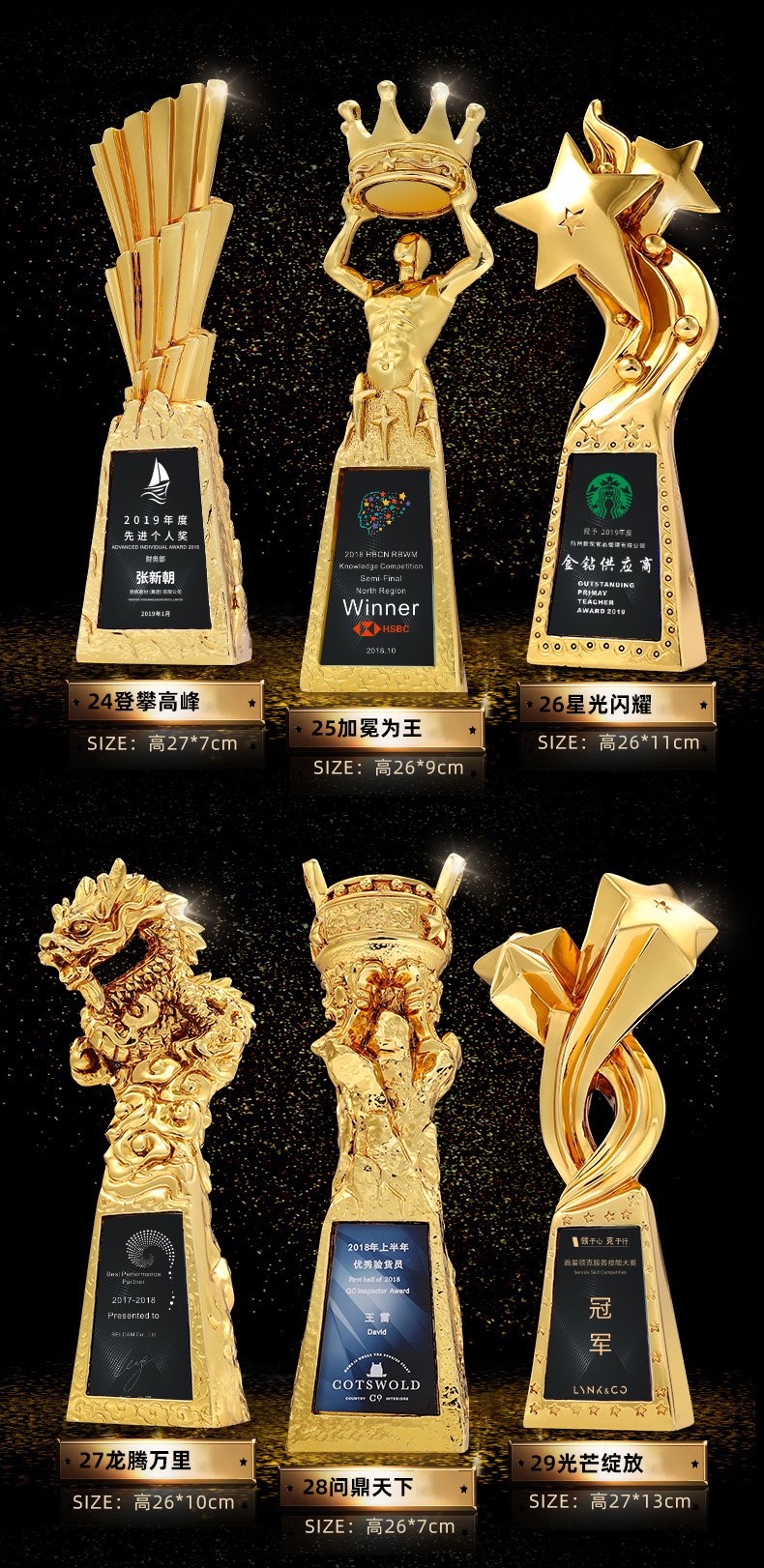 263 / 新款树脂镀金奖杯定制年会颁奖优秀员工创意项目活动比赛奖杯定做