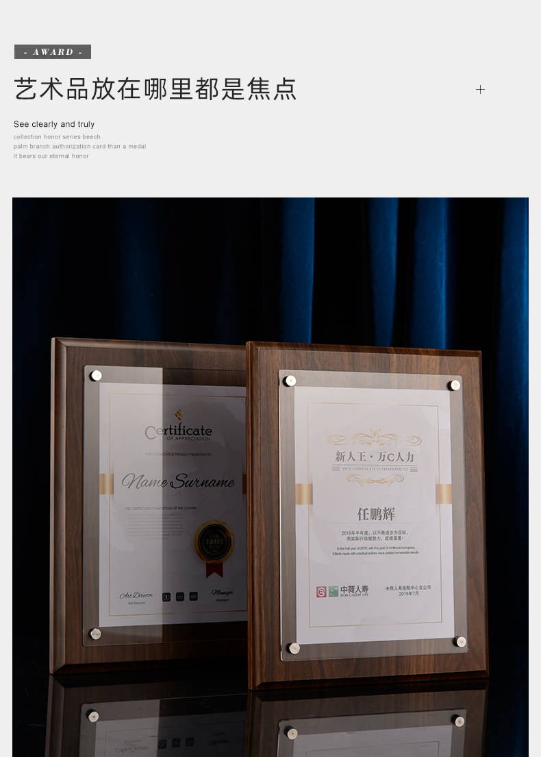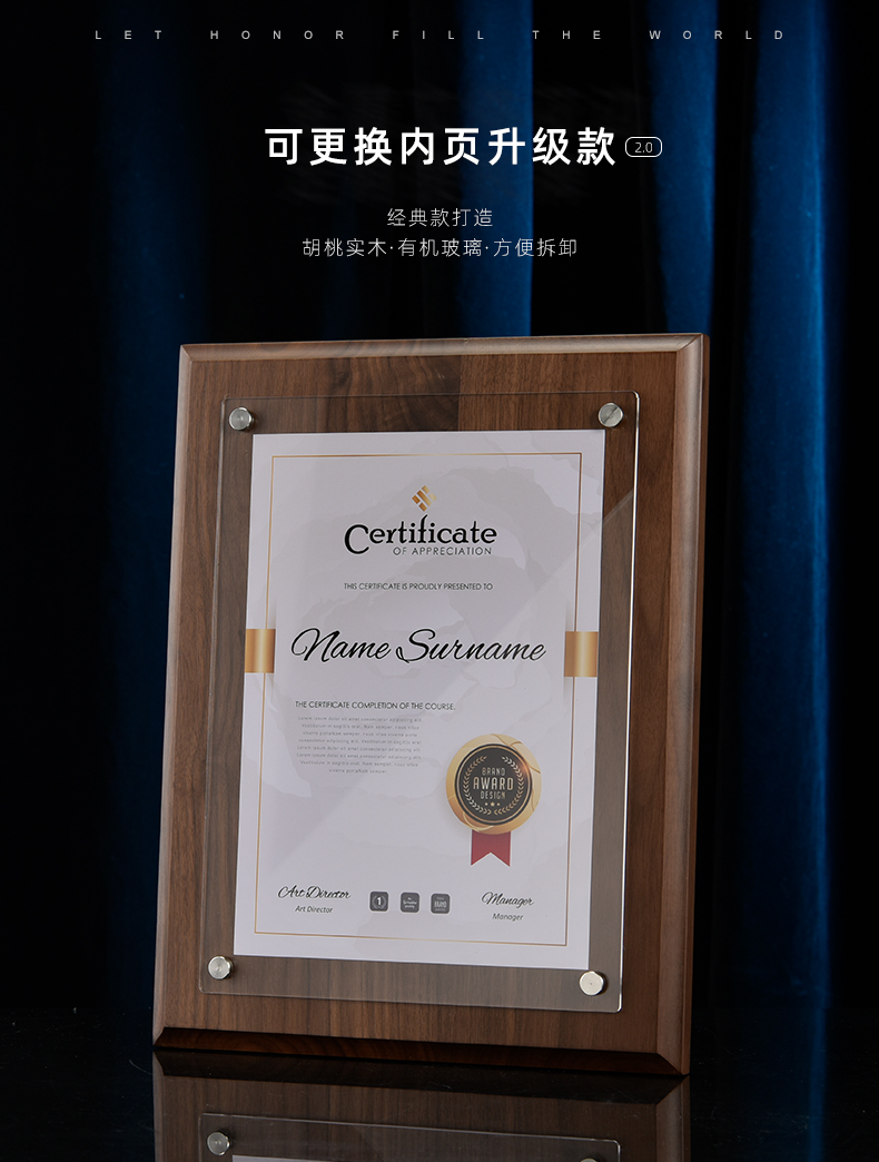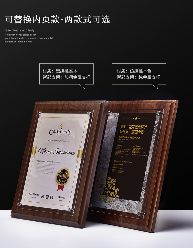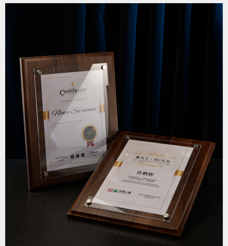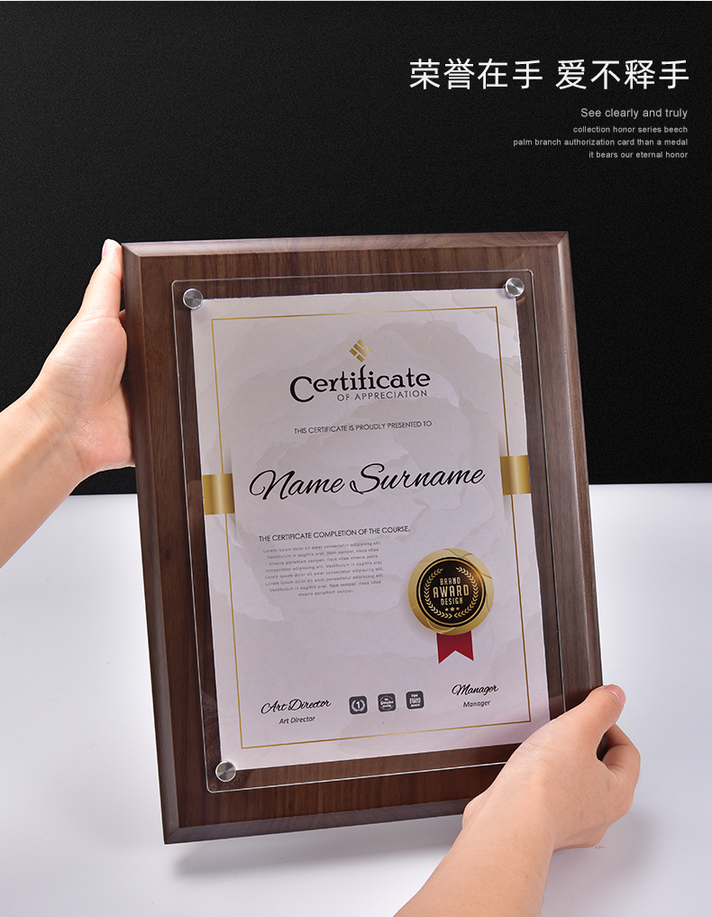 534 / 【实木相框】荣誉证书相框毕业结业证书定制水晶企业培训资质定做聘书获奖证书授权书框架志愿者奖状裱框
