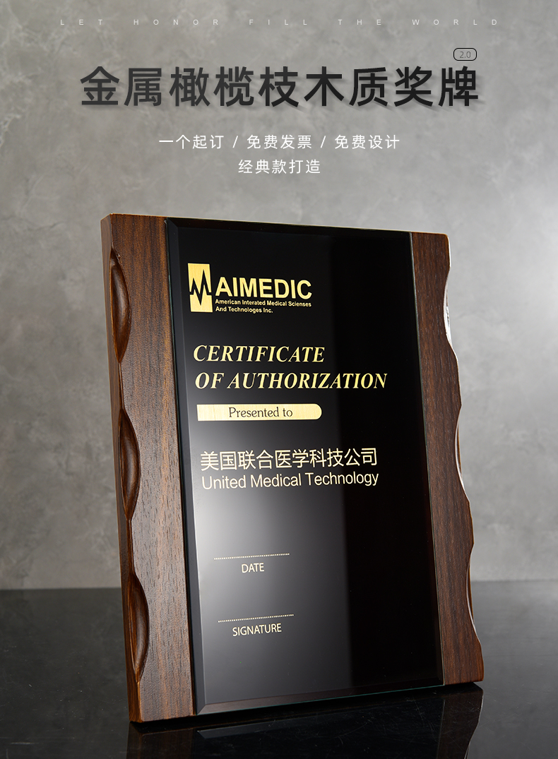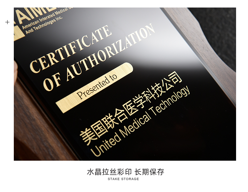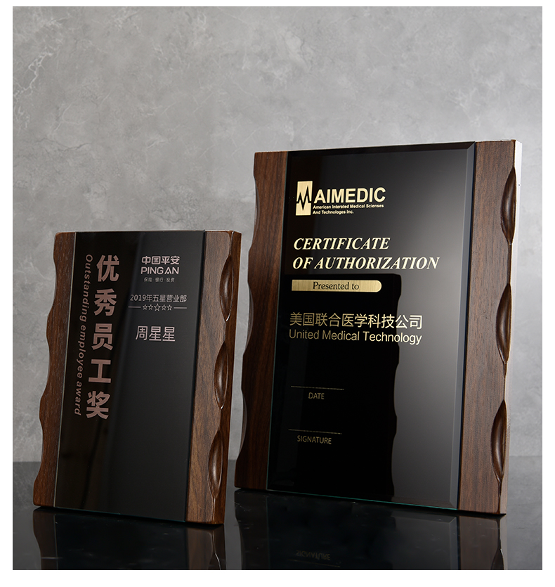 516 / 授权牌定制水晶奖牌奖杯加盟代理经销商品牌认证荣誉扁聘书定制