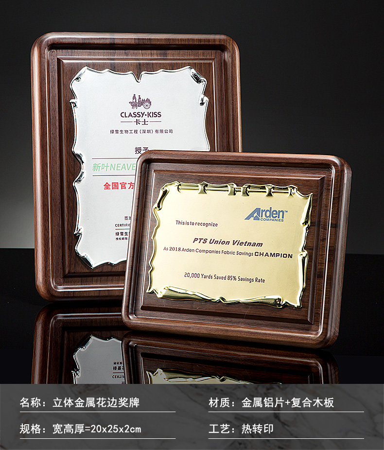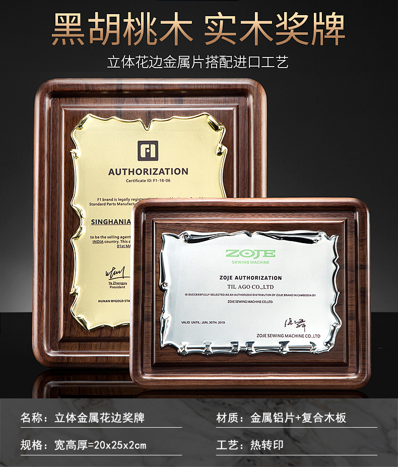 526 / 立体花边奖牌木质奖牌授权牌定制定做实木证书铜牌奖杯加盟代理商荣誉牌匾制作