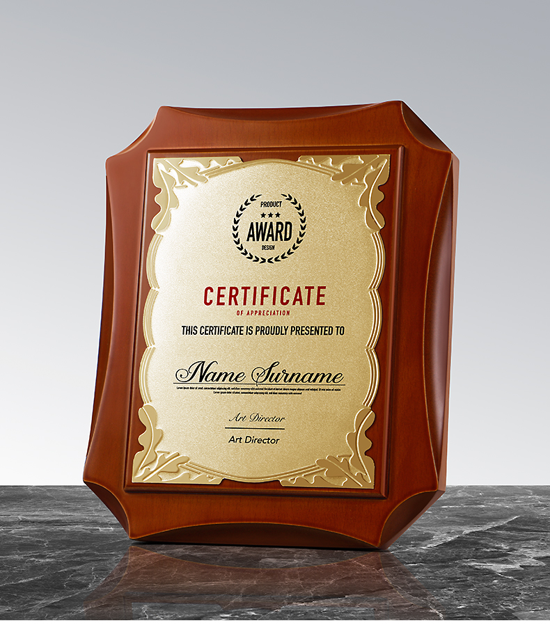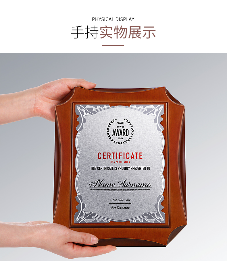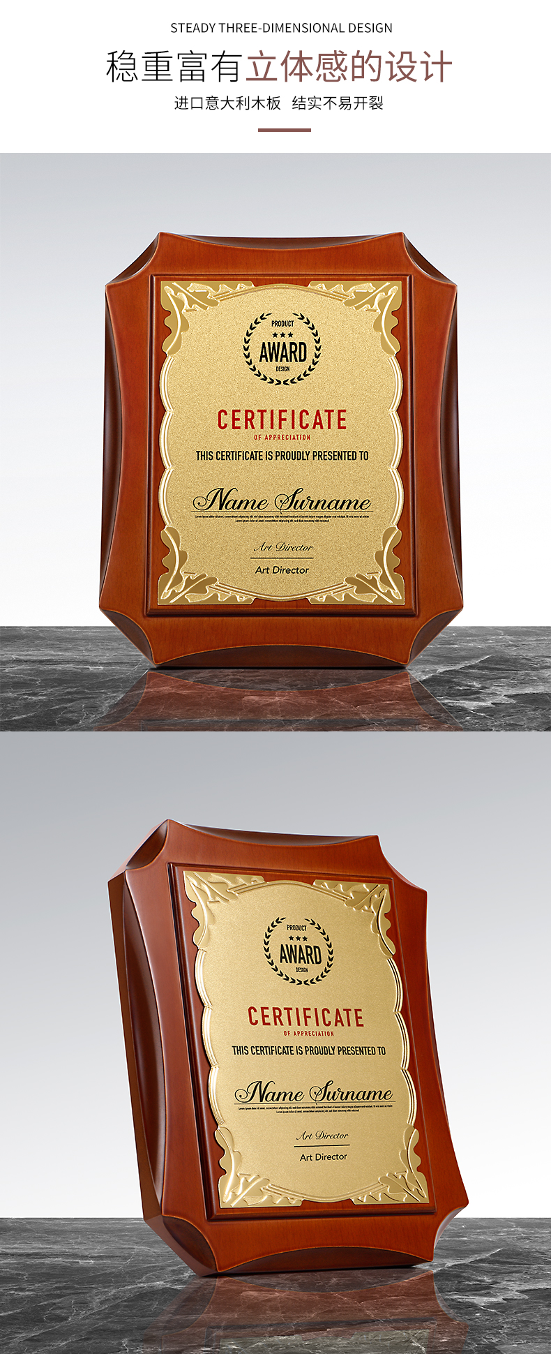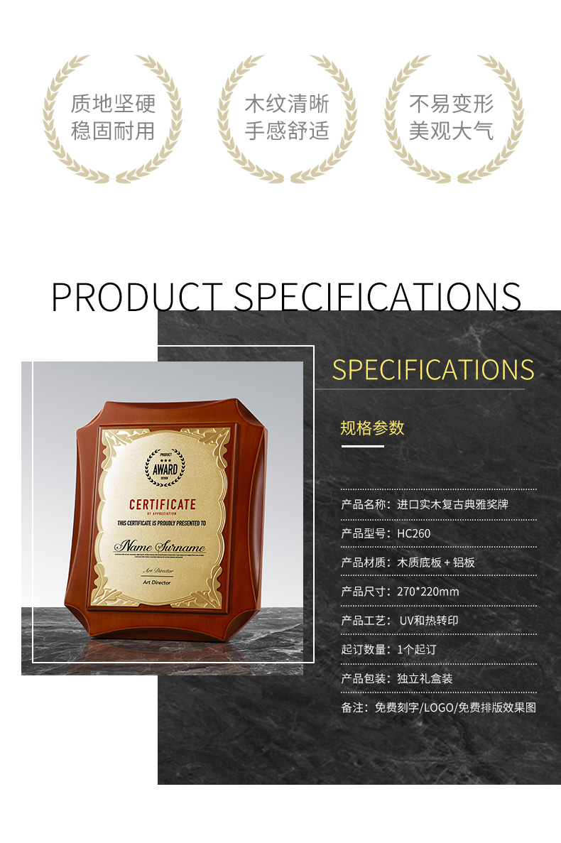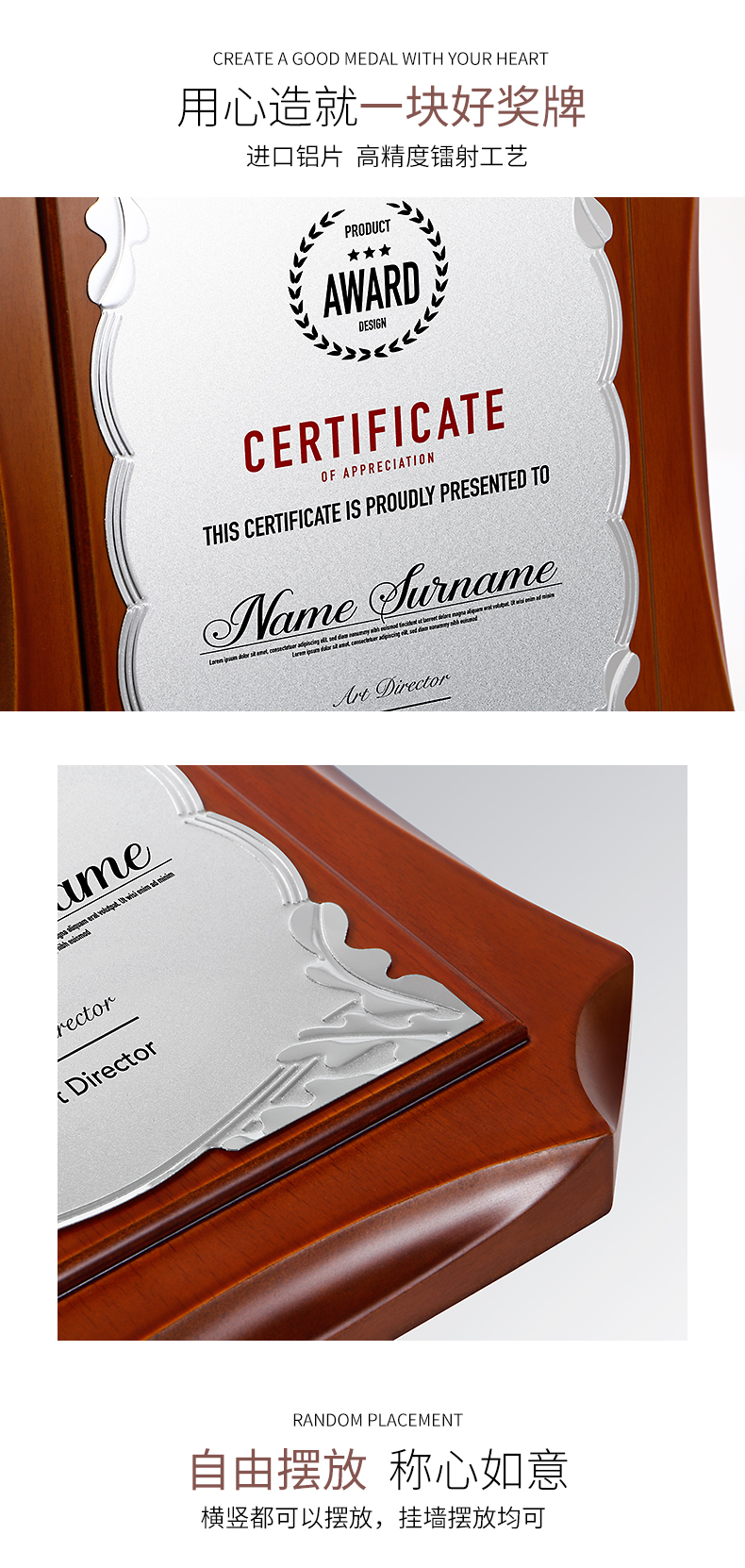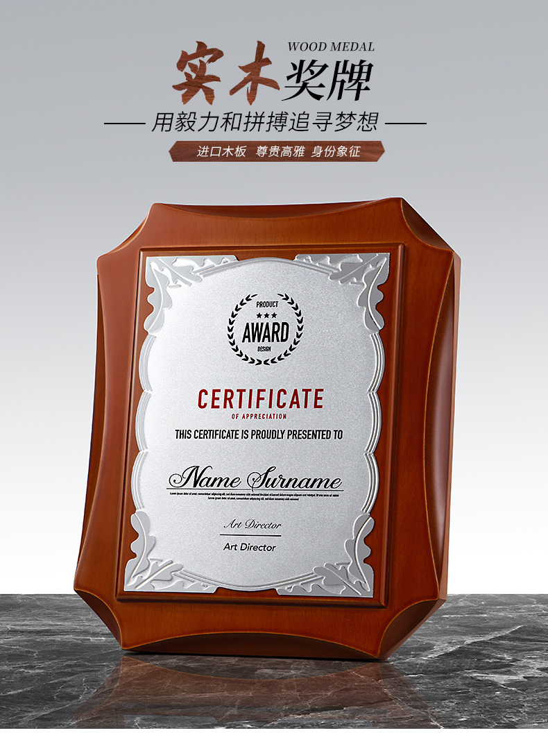 525 / 角压花铝片奖牌创意奖牌定制定做胡桃木质荣誉牌匾纪念制作加盟代理商授权牌定制