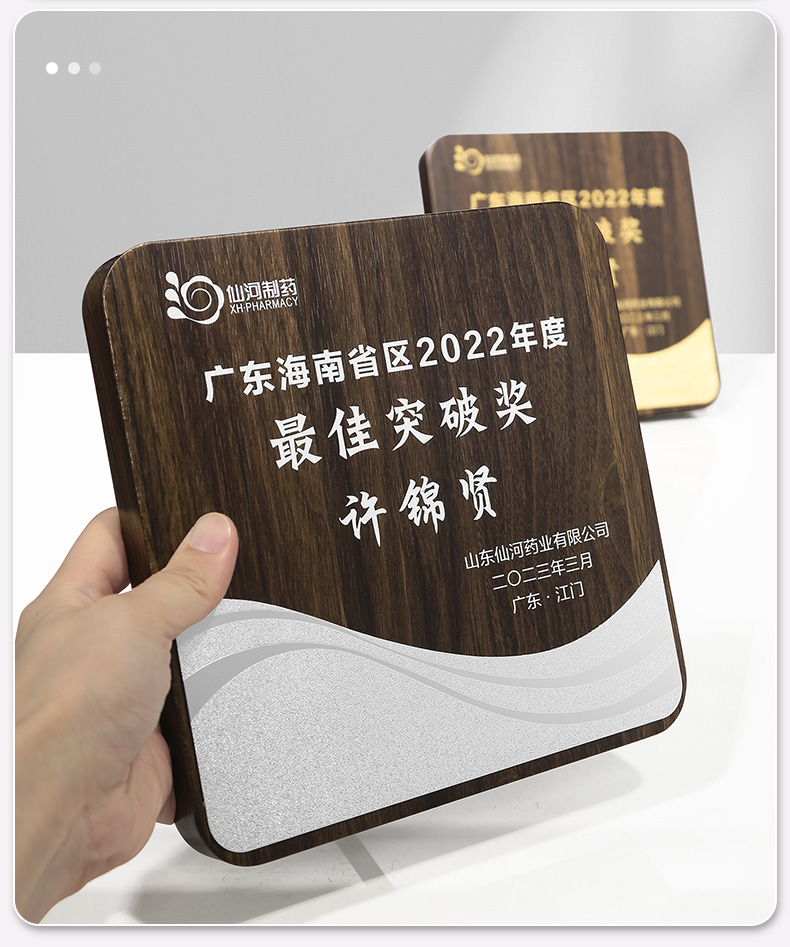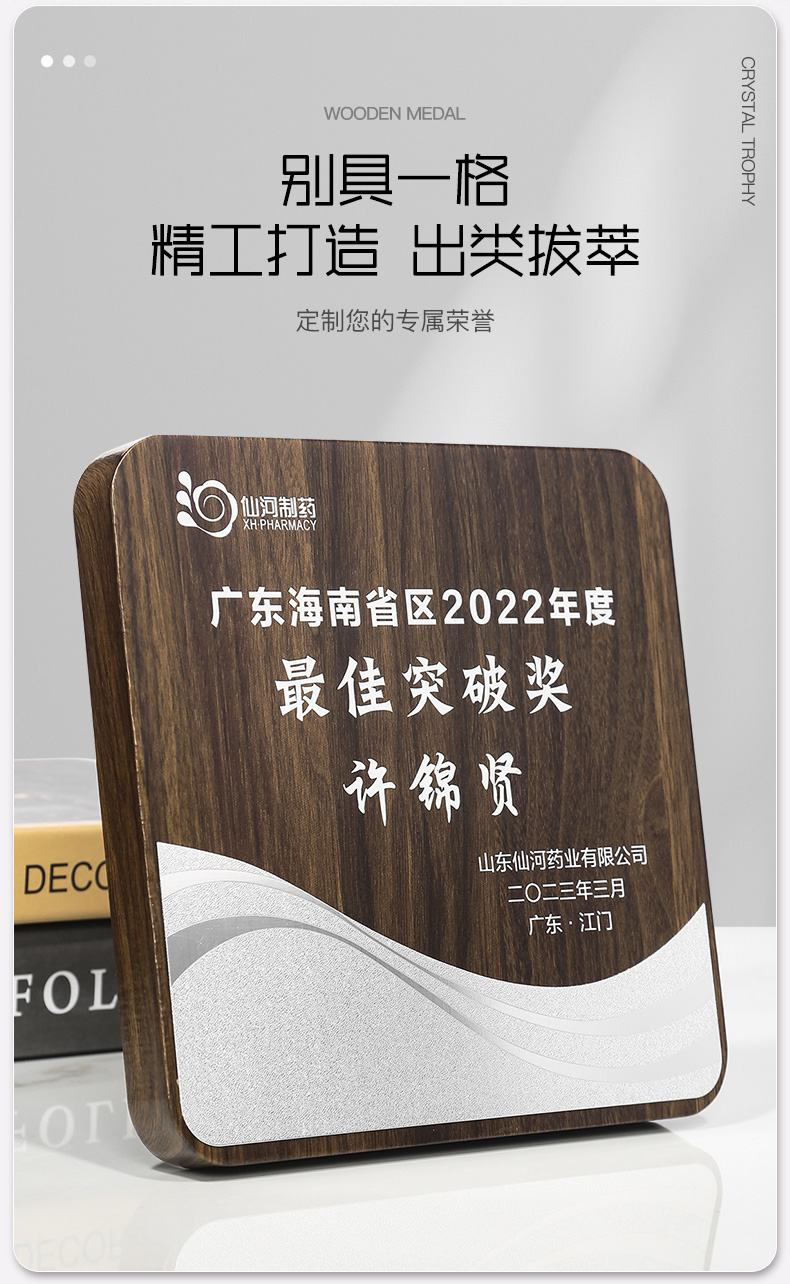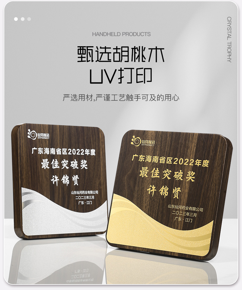 514 / 金属波浪胡桃木奖牌木质奖牌定制胡桃实木加盟牌匾代理商金箔授权牌荣誉退休铜牌定做