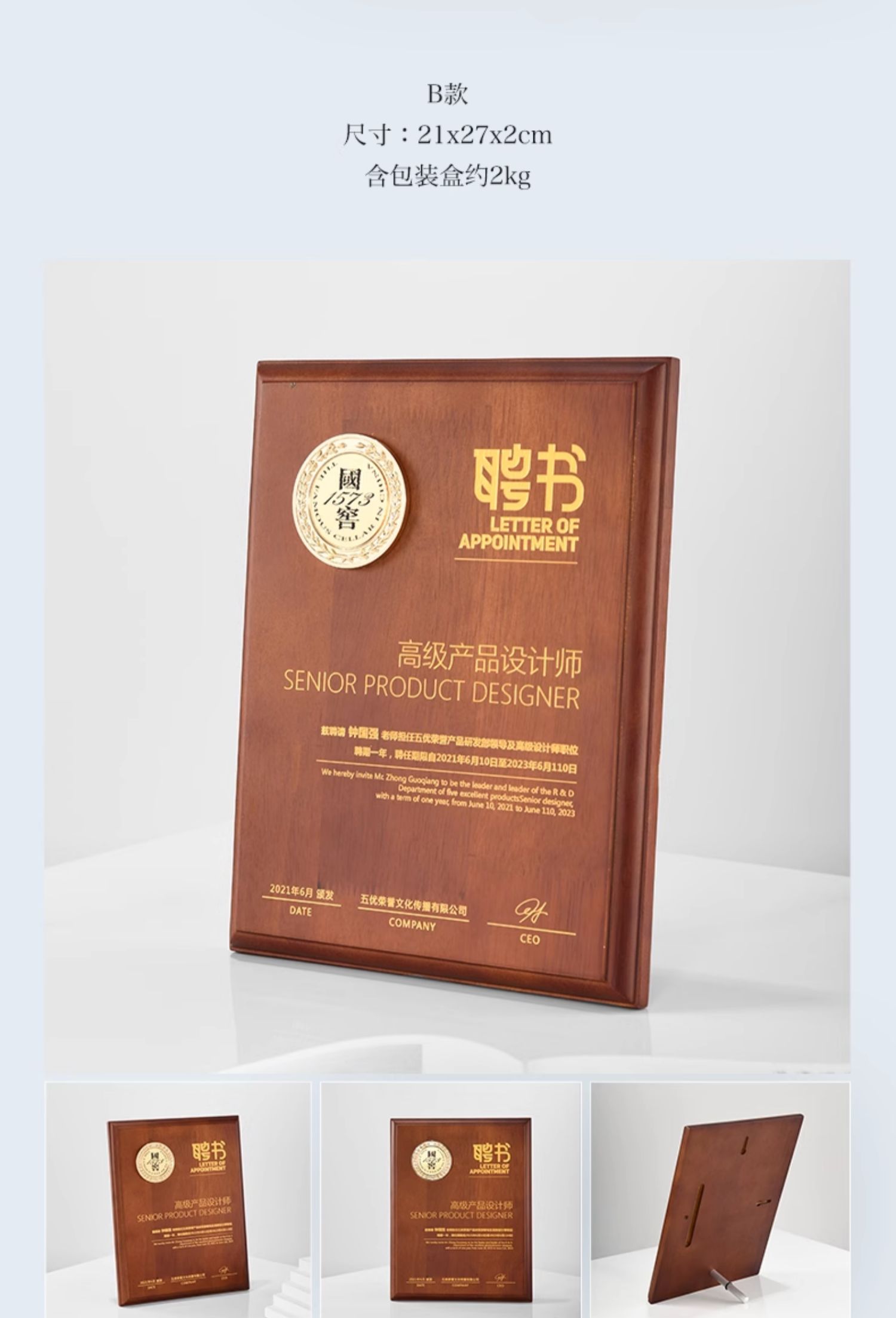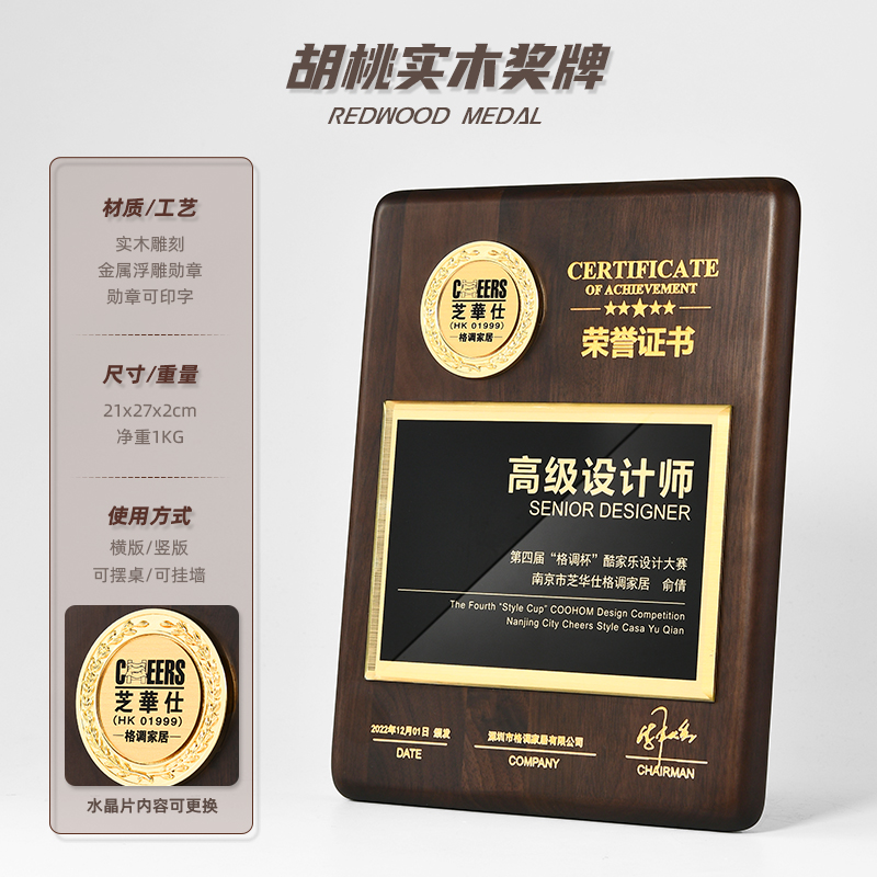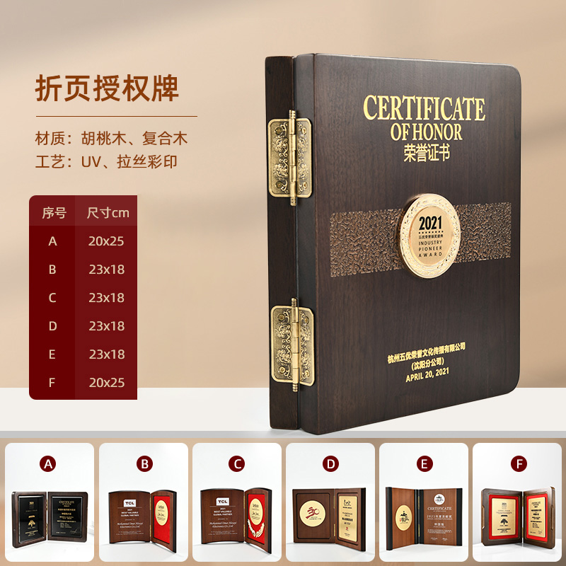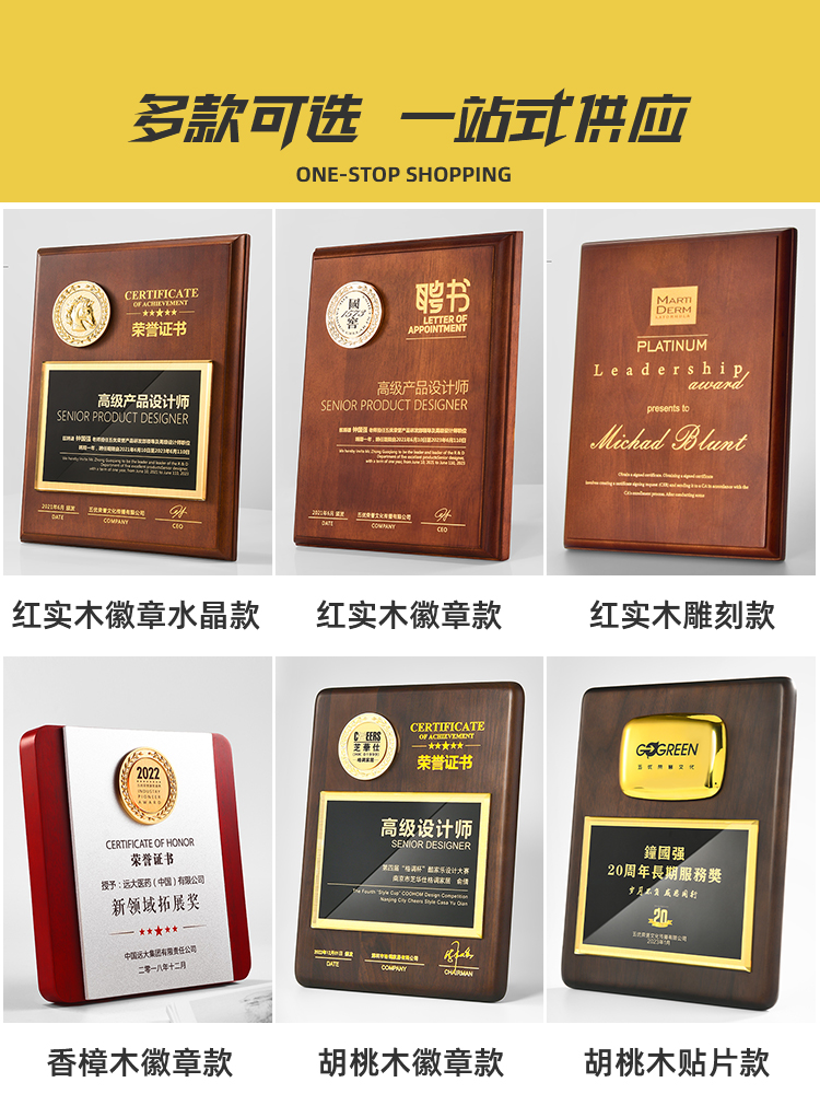 575 / 【红实木奖牌】定制定做代理商授权牌木质荣誉奖杯订制颁奖牌证书授牌