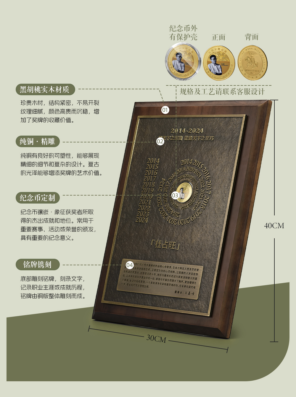 588 / 铜浮雕金属实木奖牌定制定做授权牌聘书高档颁奖荣誉牌周年纪念