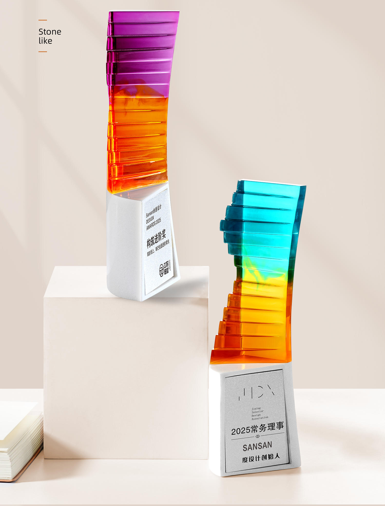 225 / 【宝丽石奖杯】高档大气创意宝丽石奖杯定制定做公司年会水晶玉石大理石奖牌订制