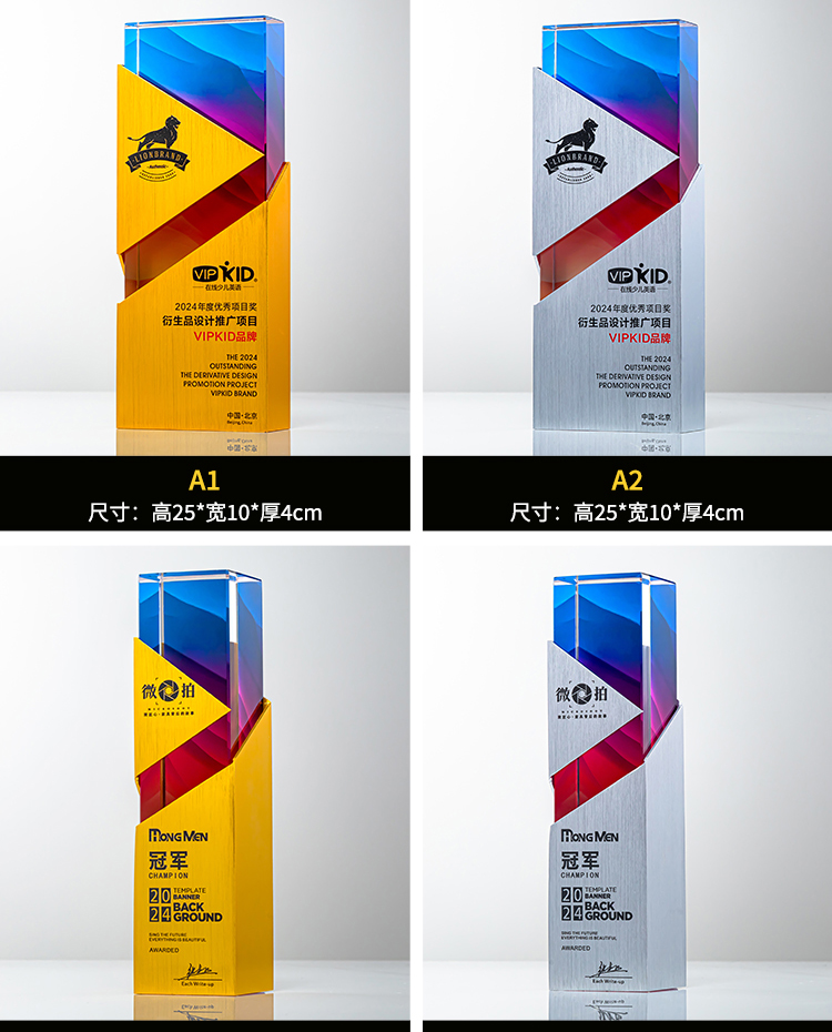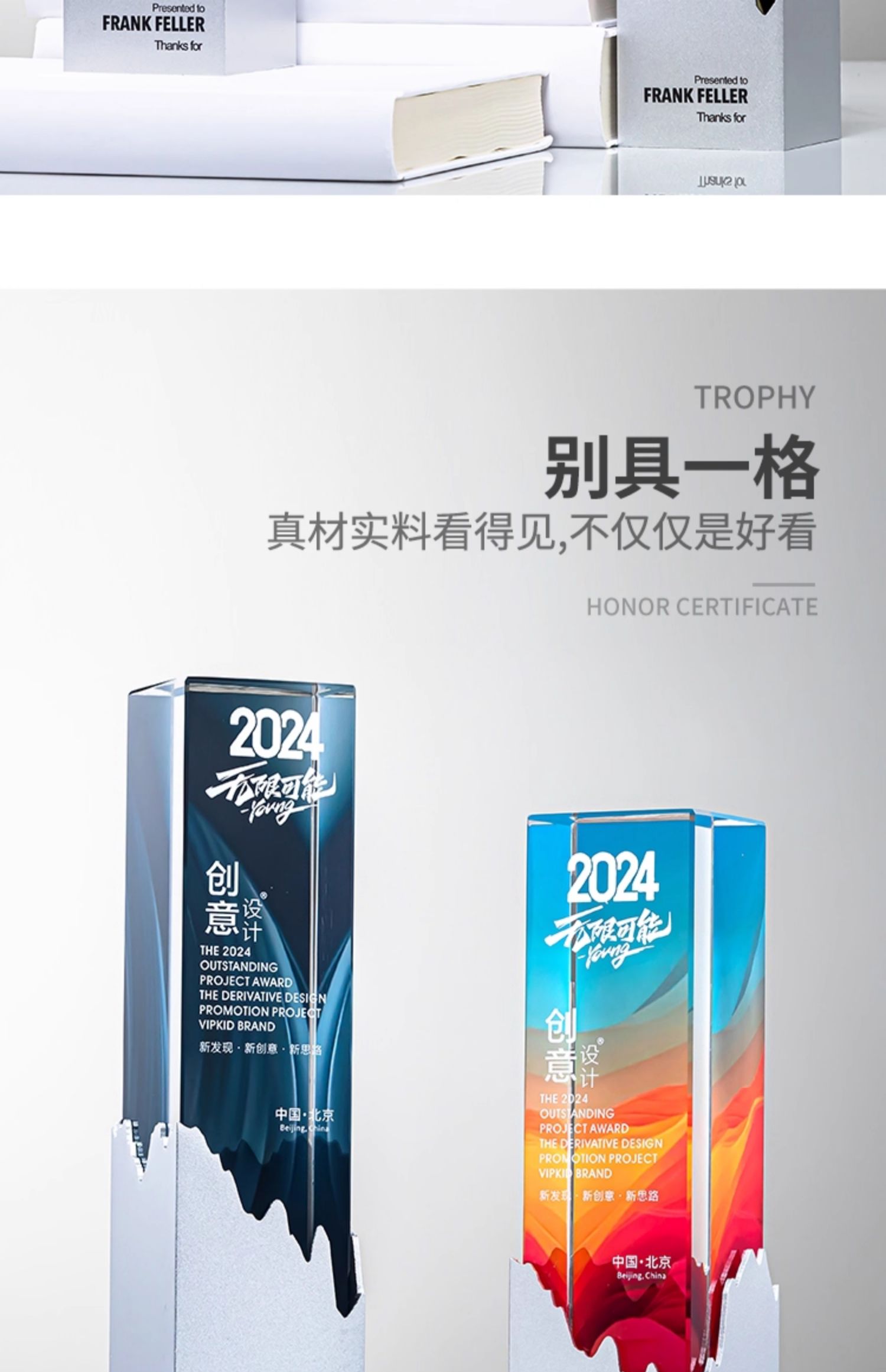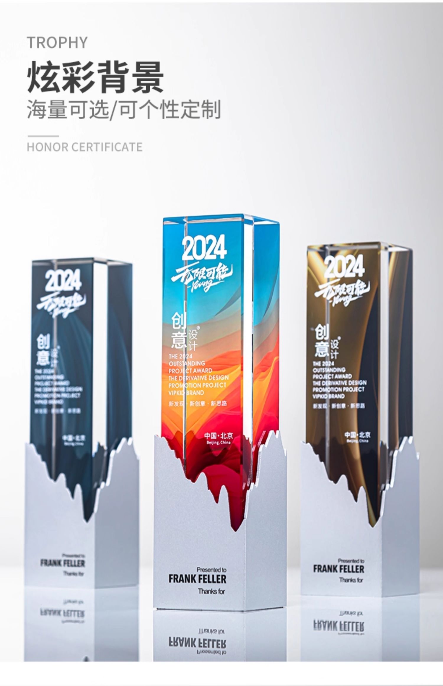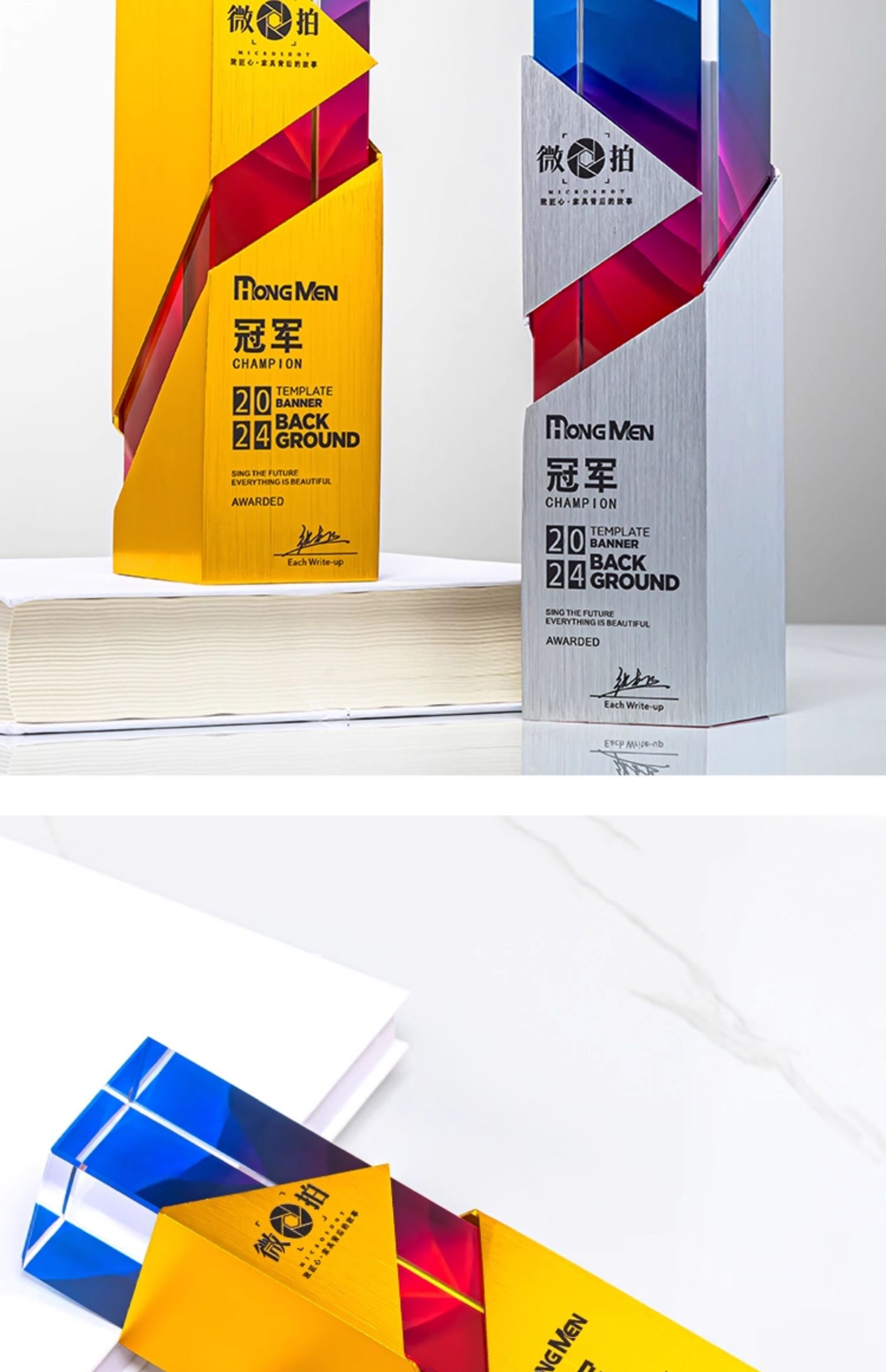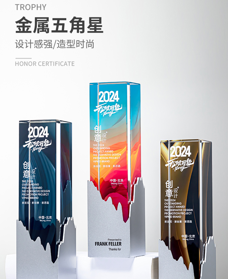 208 / 水晶奖杯定制彩印创意金属五角星优秀员工奖年会冠军团队奖牌刻字
