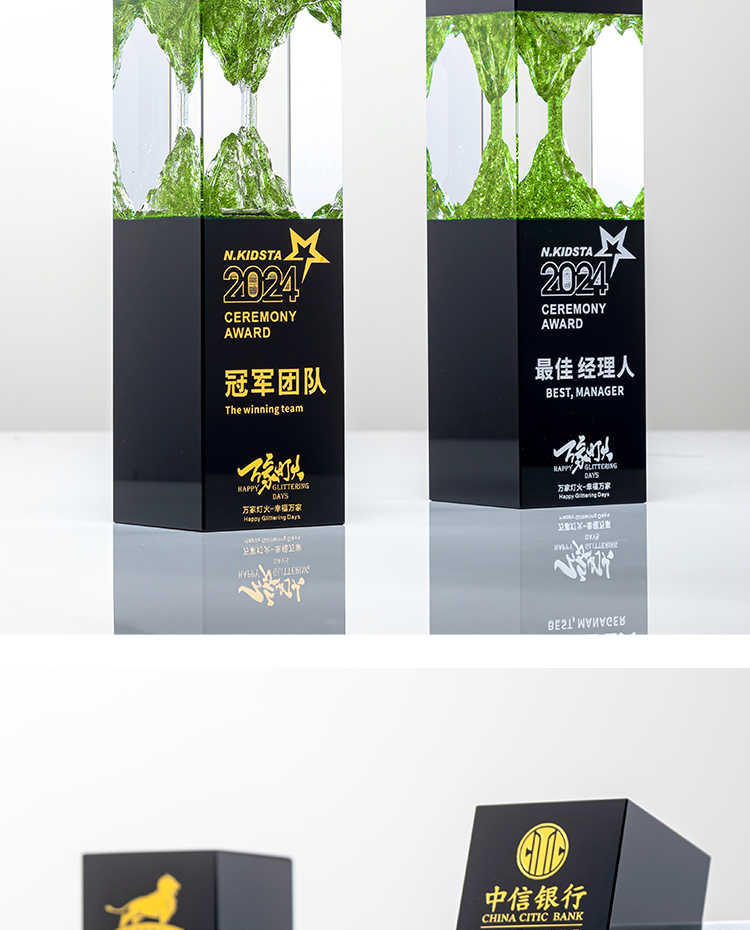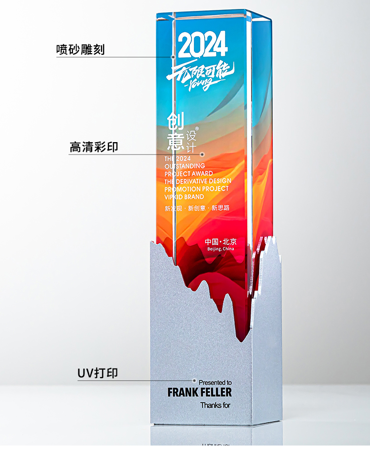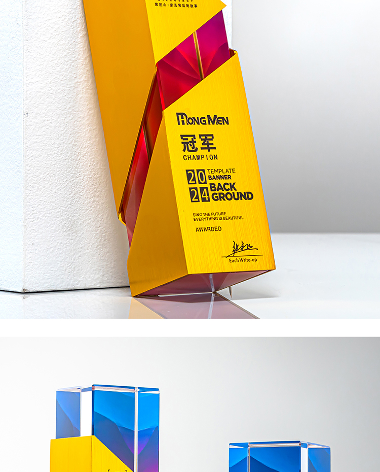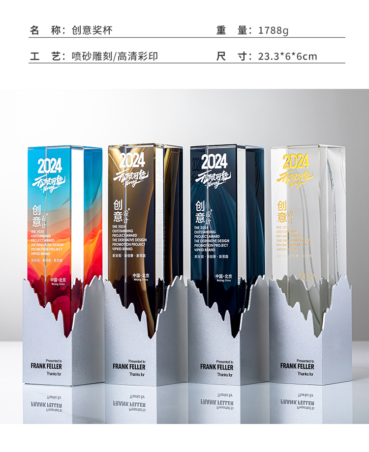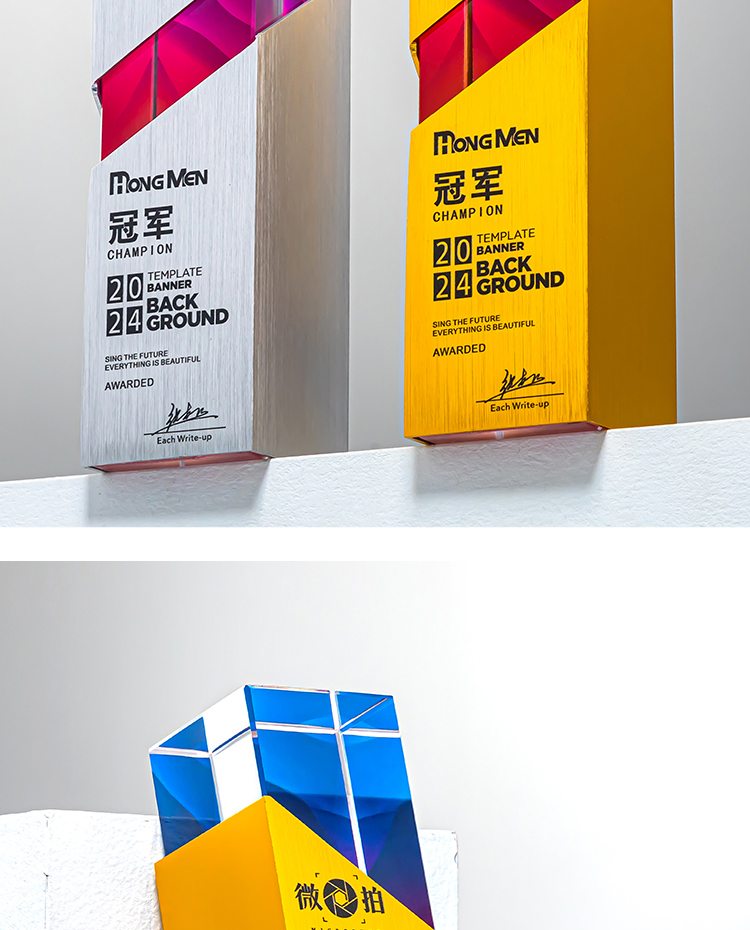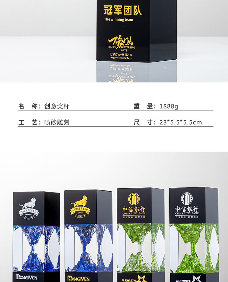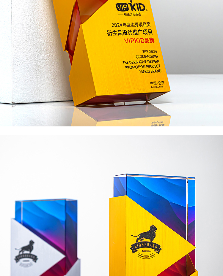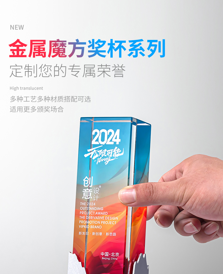 208 / 水晶奖杯定制彩印创意金属五角星优秀员工奖年会冠军团队奖牌刻字