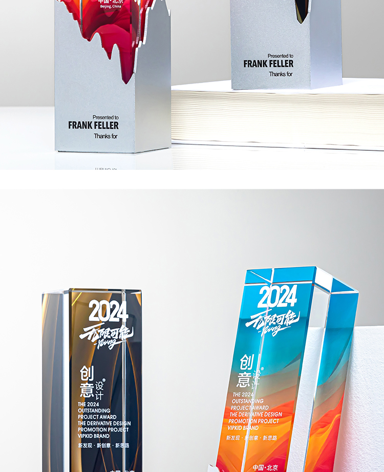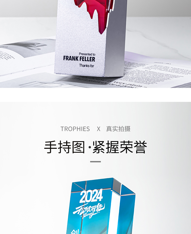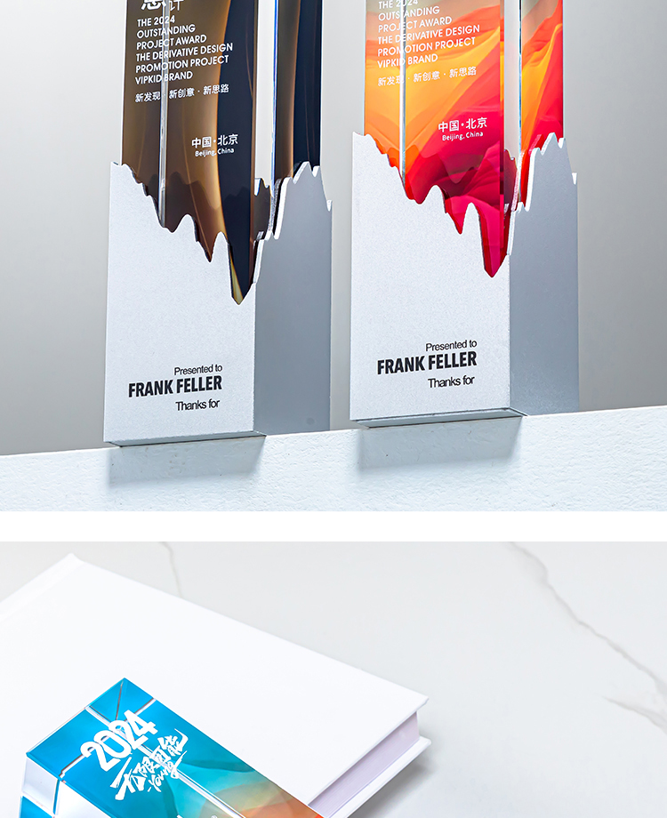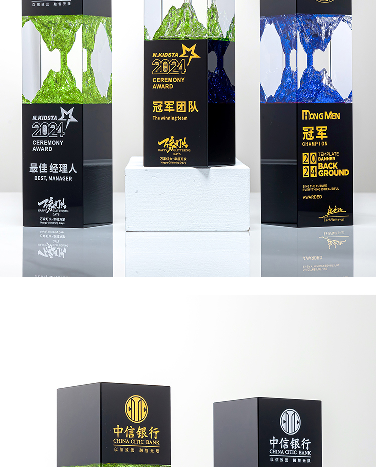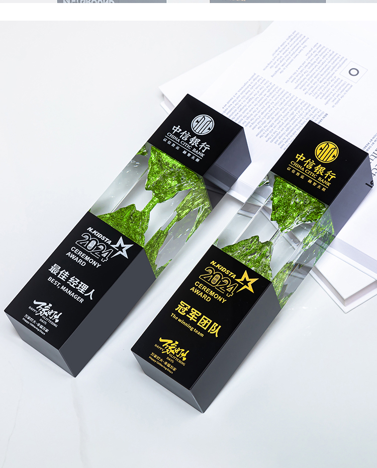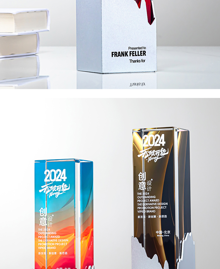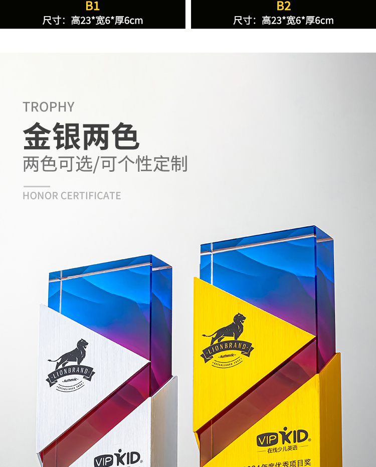 208 / 水晶奖杯定制彩印创意金属五角星优秀员工奖年会冠军团队奖牌刻字