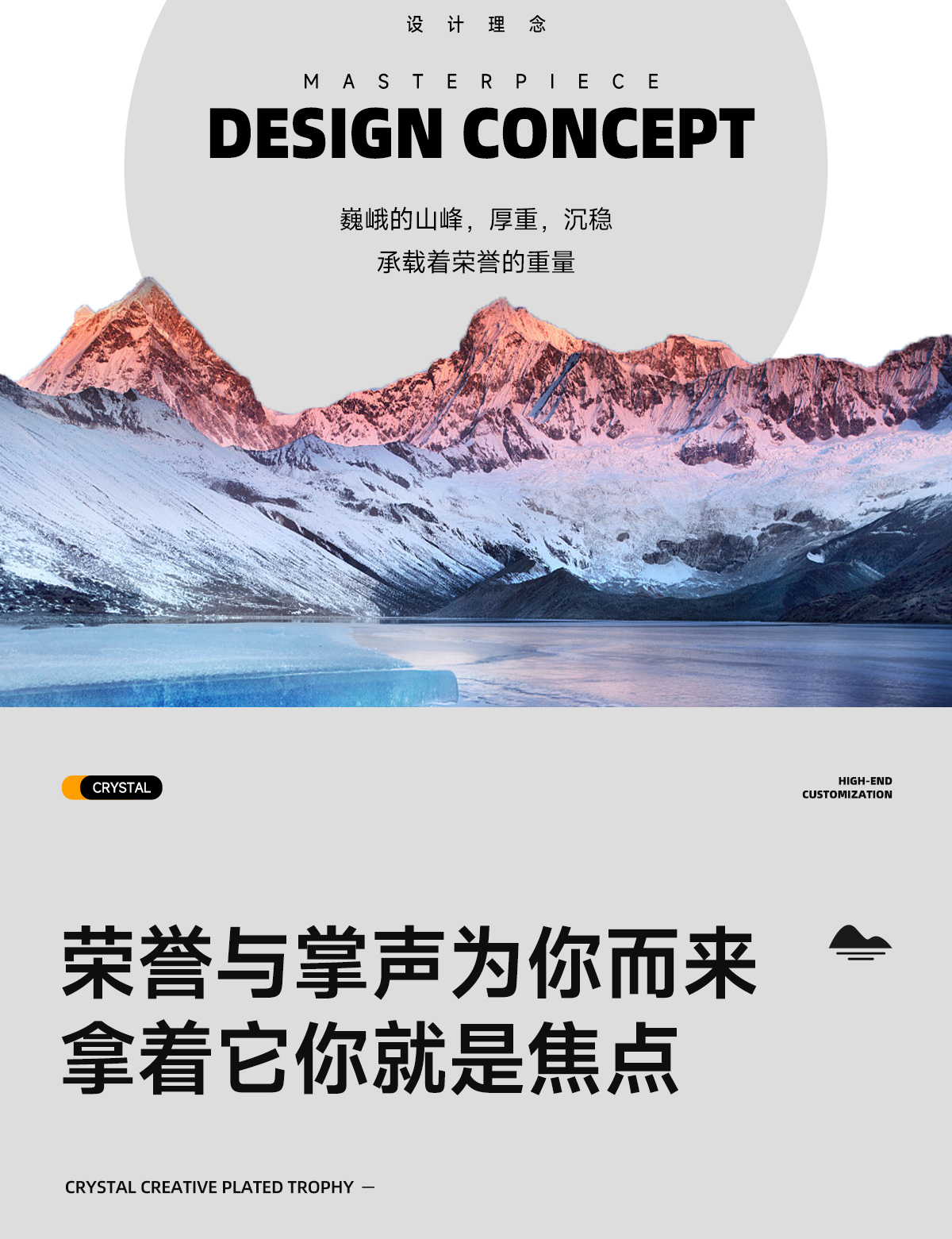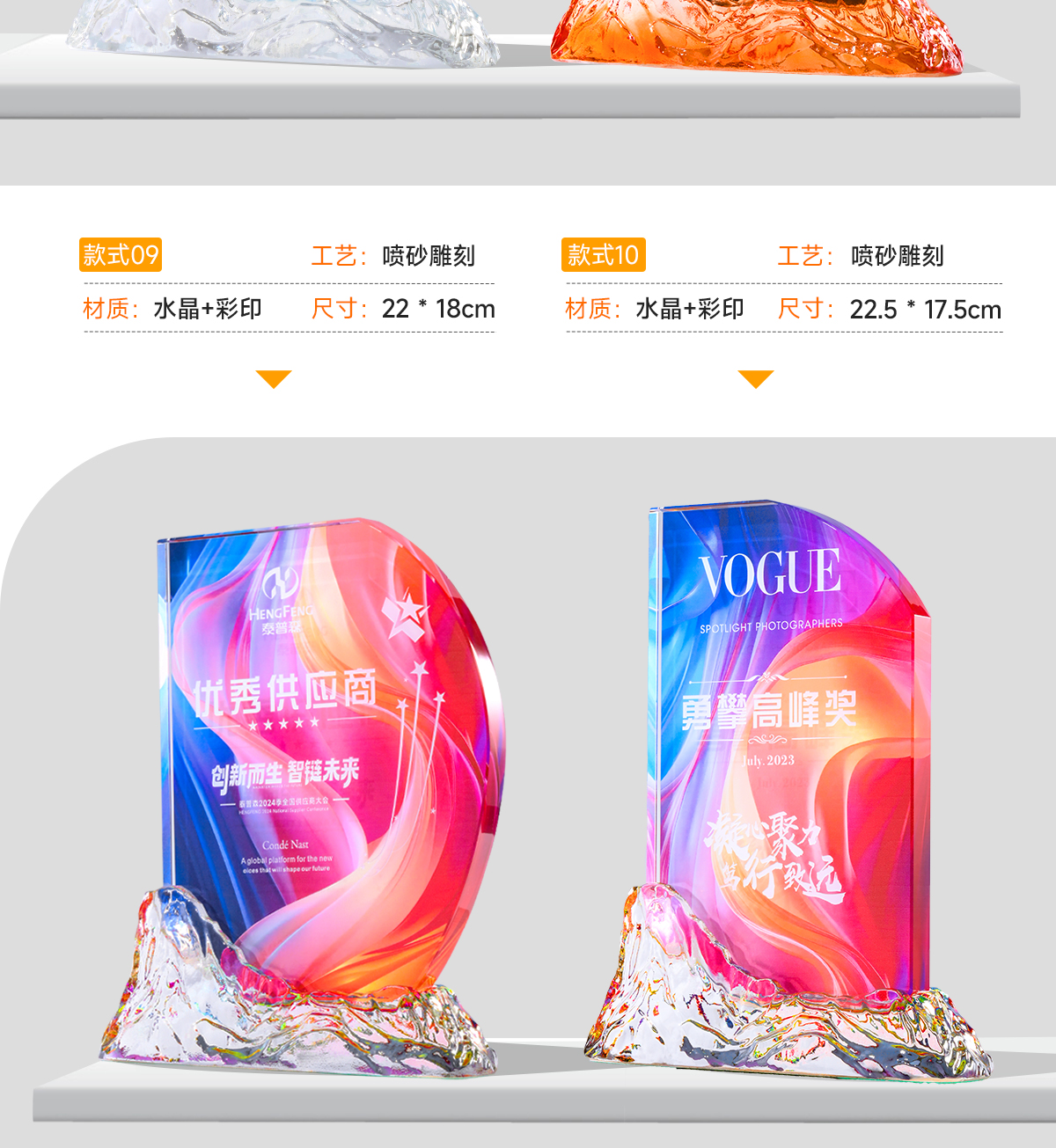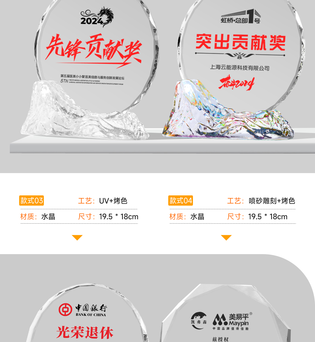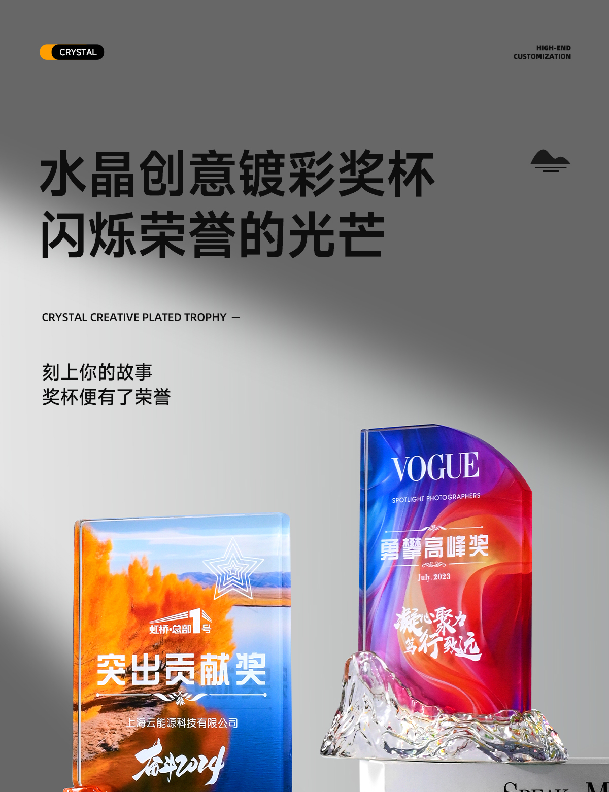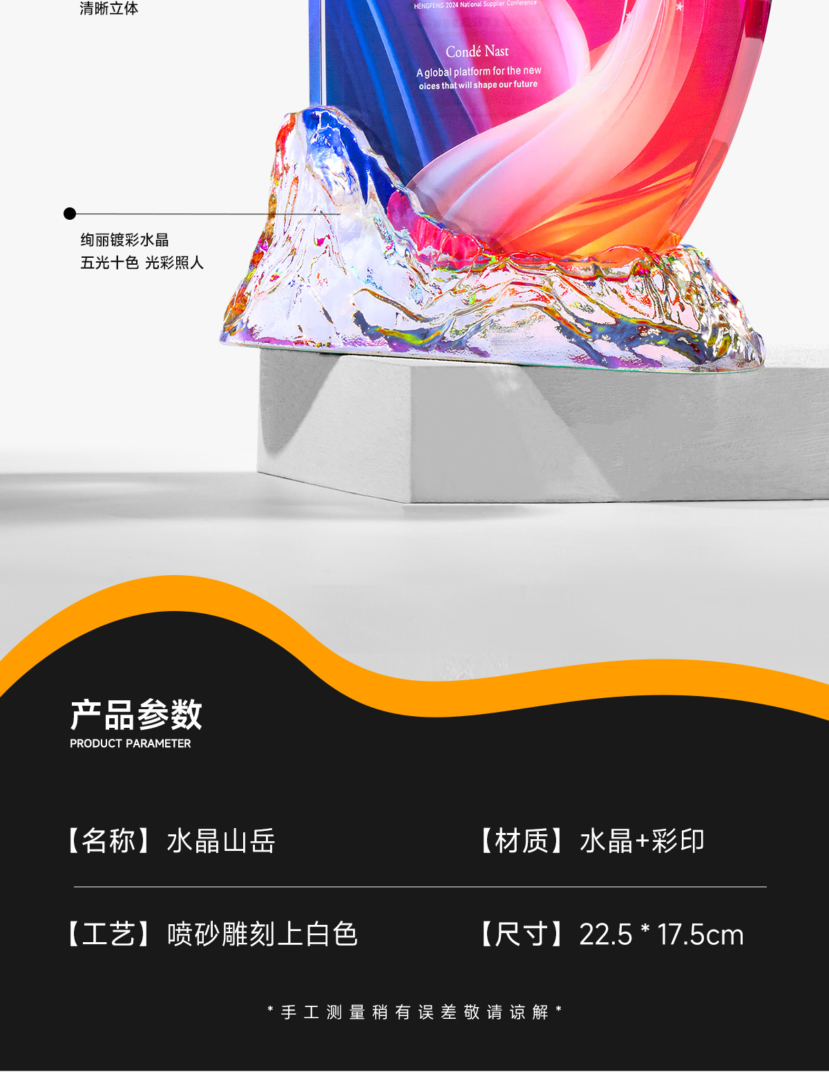 222 / 水晶奖杯定制高档大气创意山峰企业优秀员工光荣退休琉璃奖杯订制