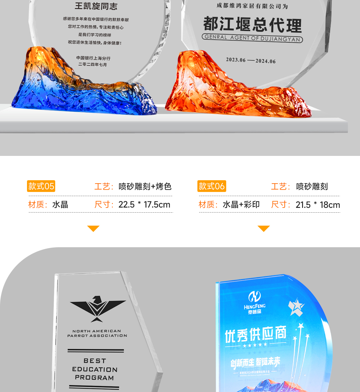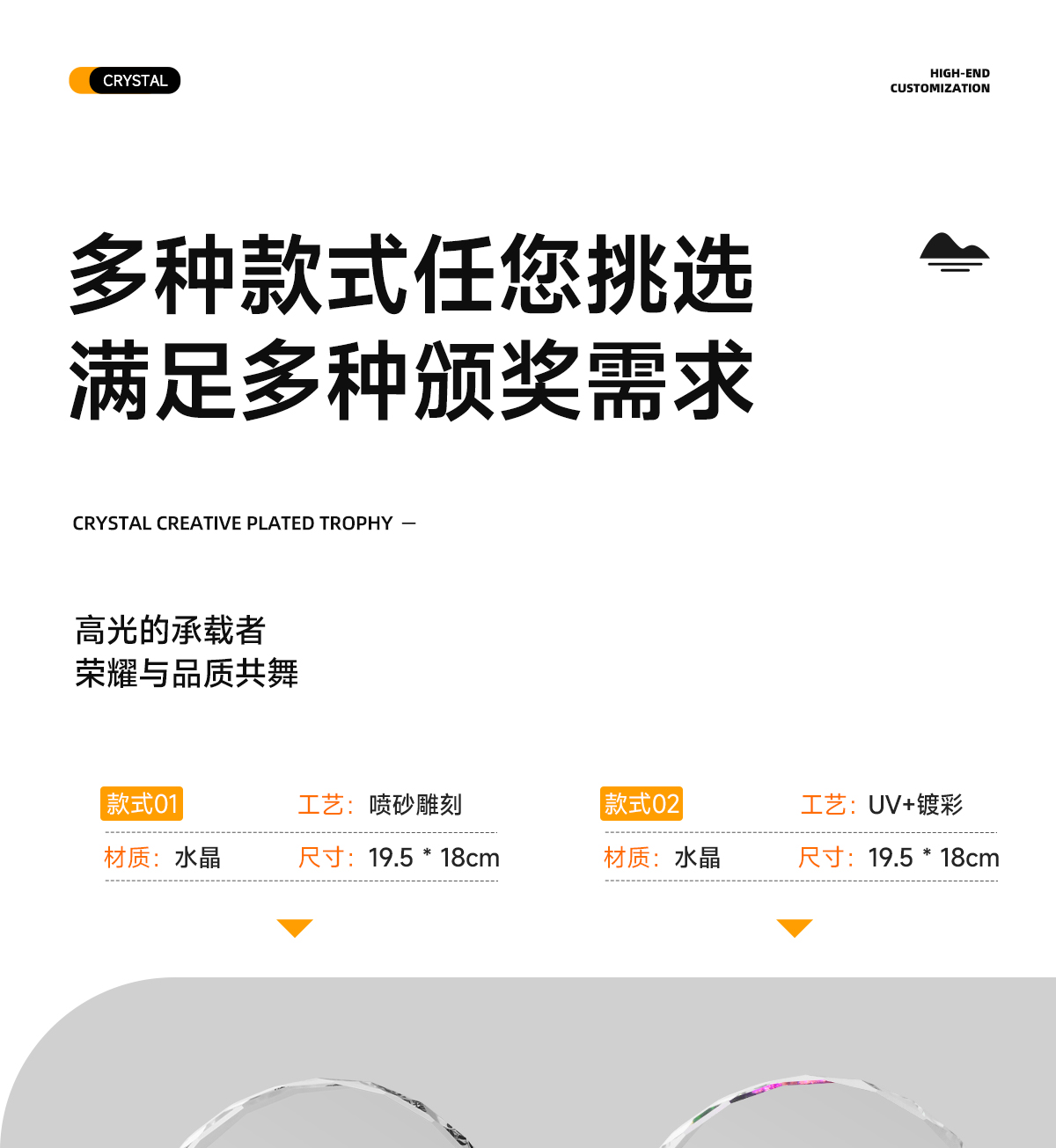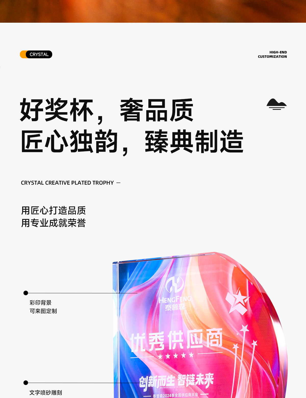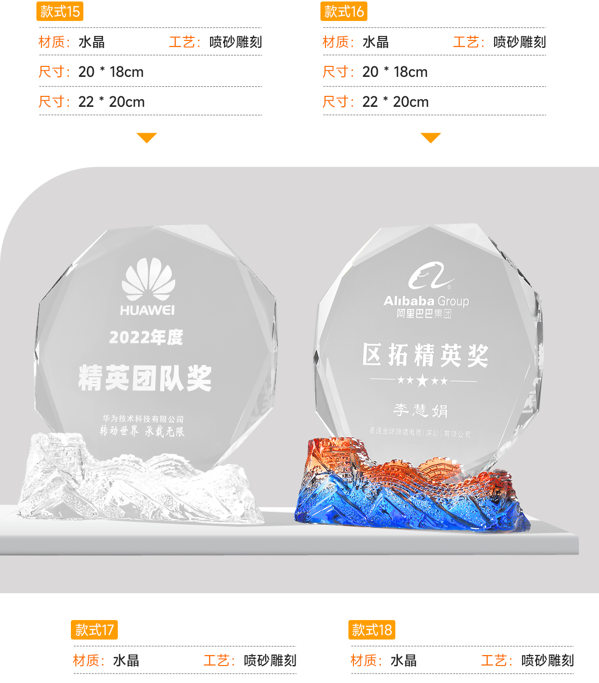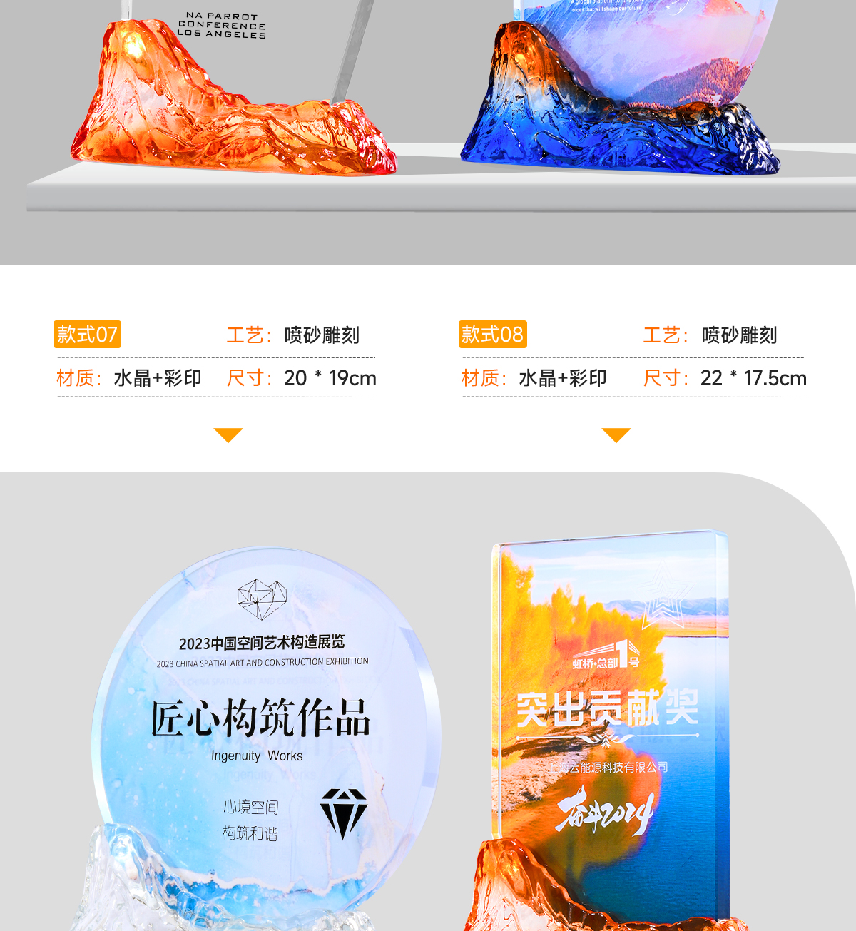 222 / 水晶奖杯定制高档大气创意山峰企业优秀员工光荣退休琉璃奖杯订制