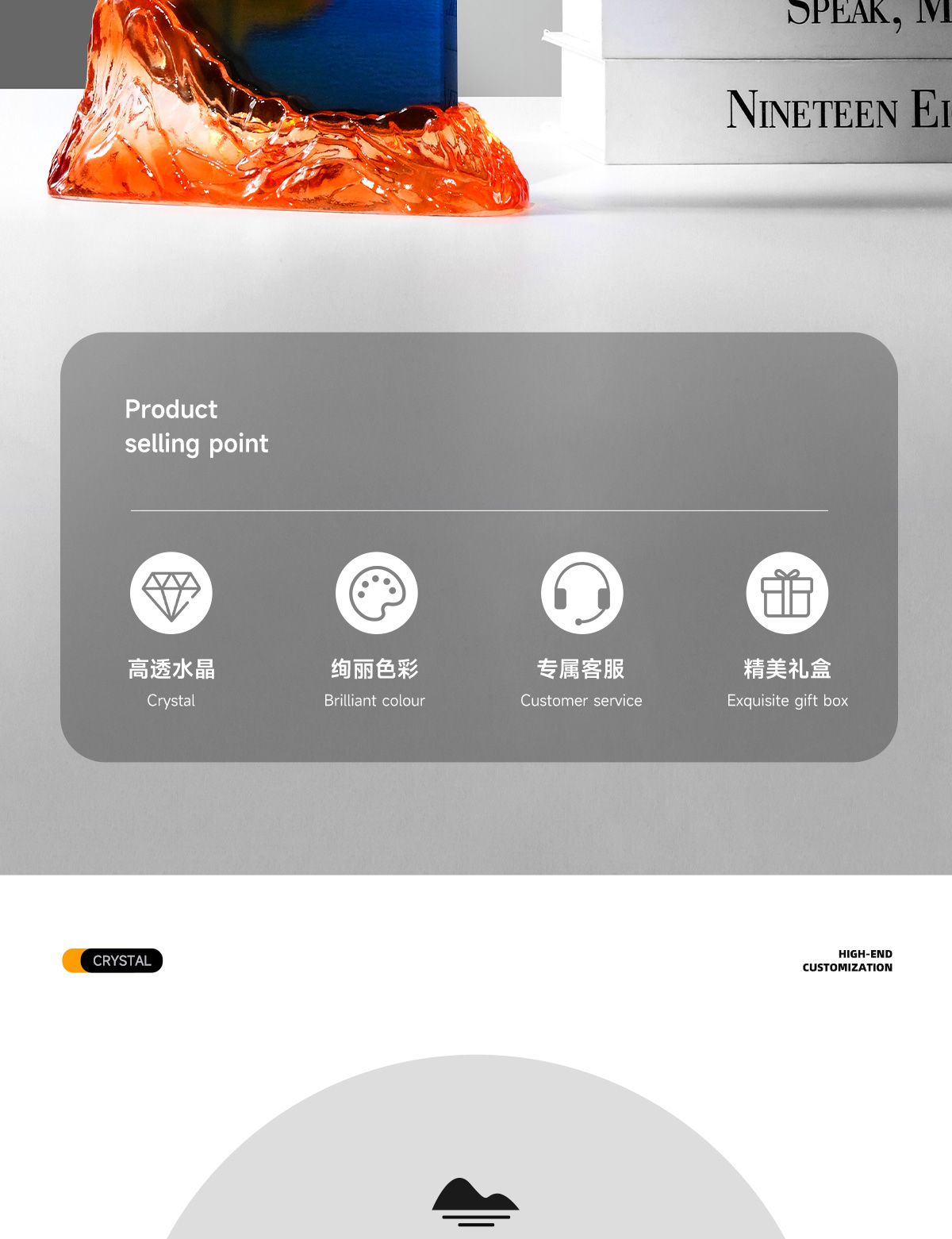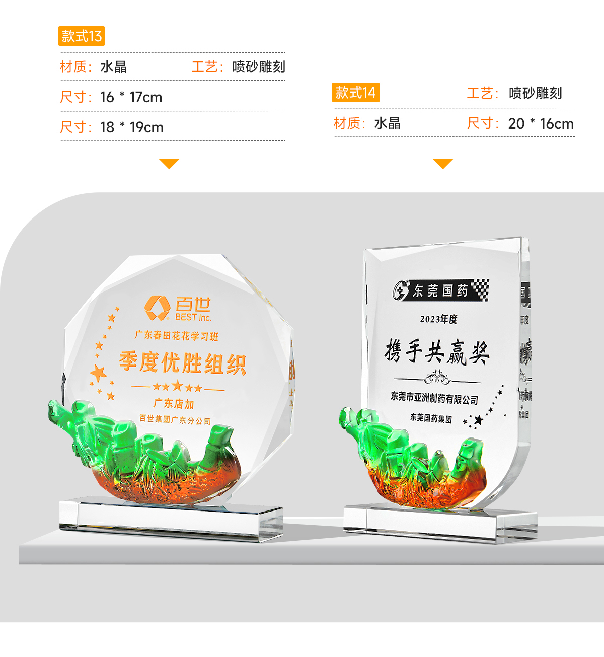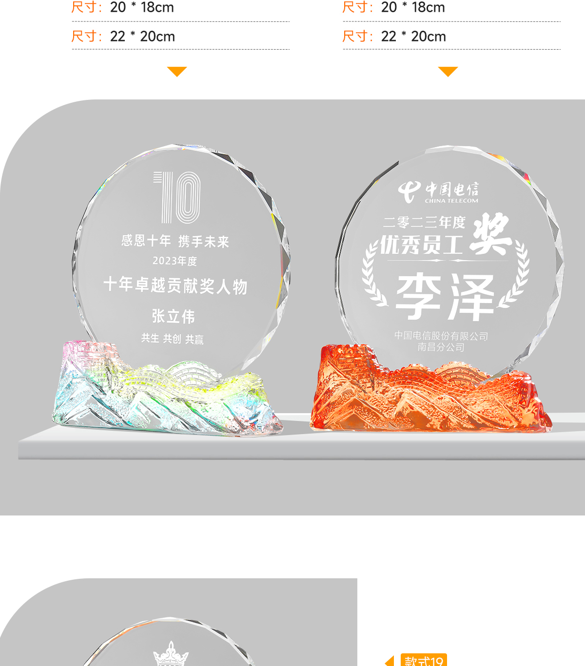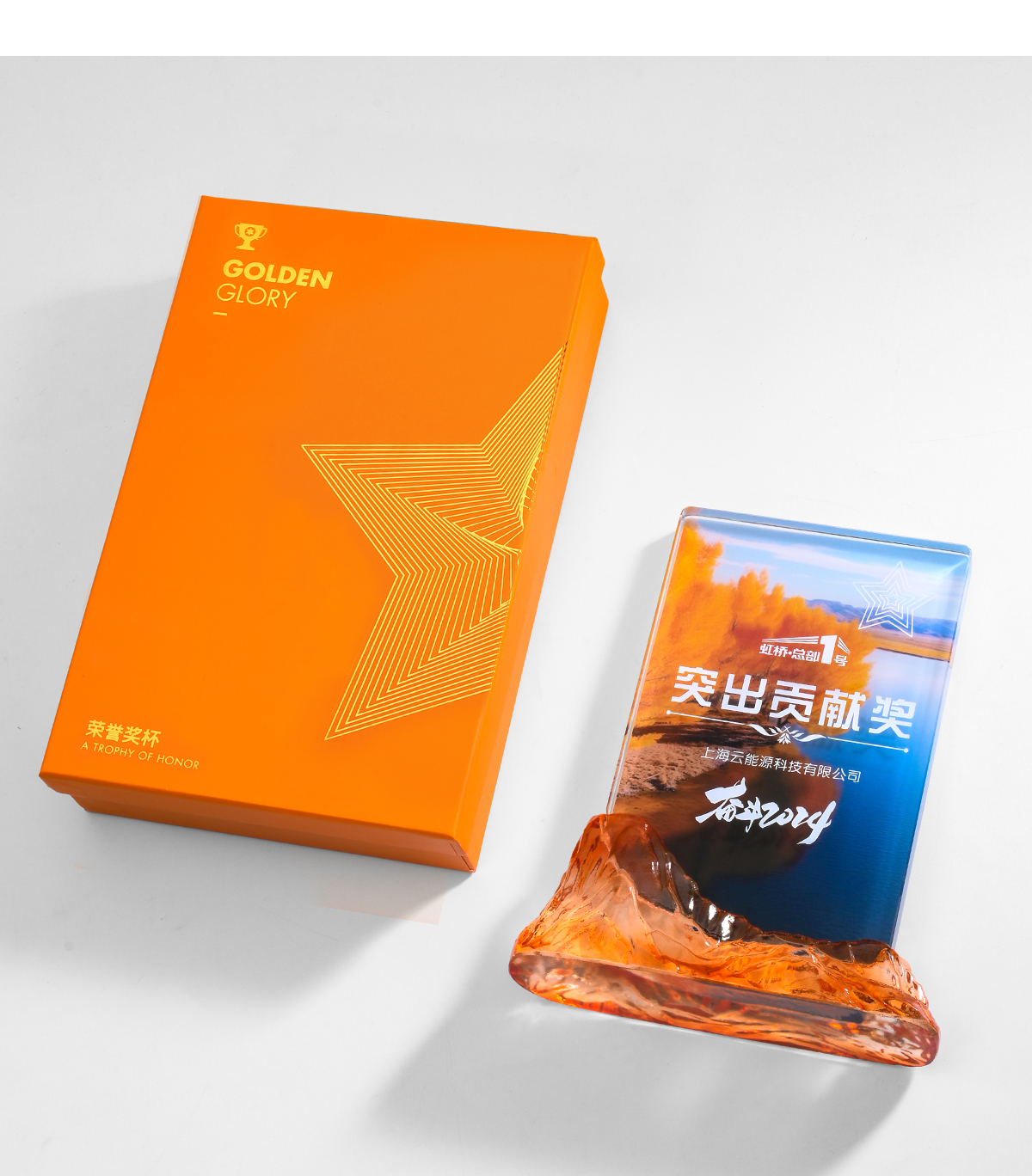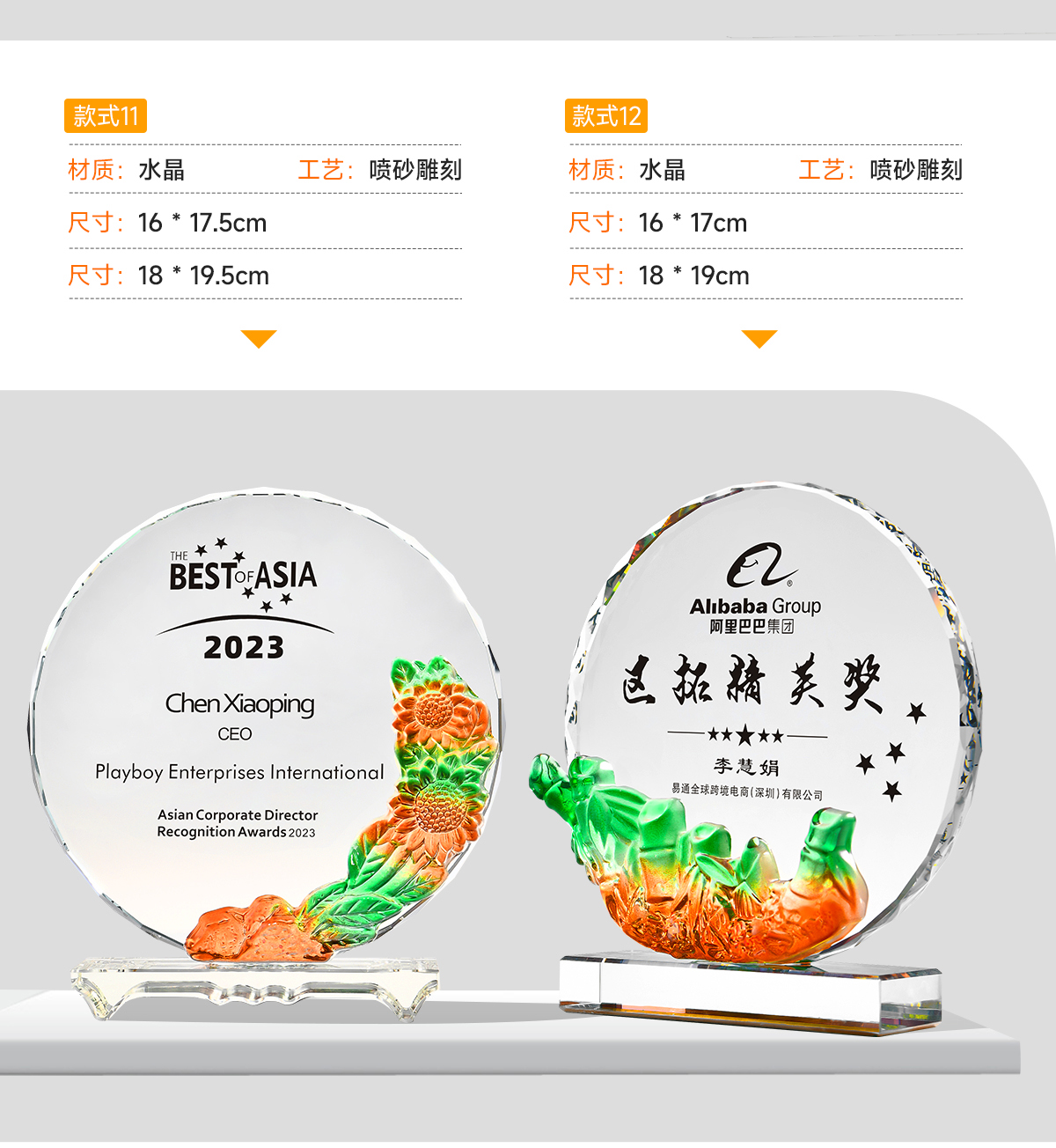 222 / 水晶奖杯定制高档大气创意山峰企业优秀员工光荣退休琉璃奖杯订制