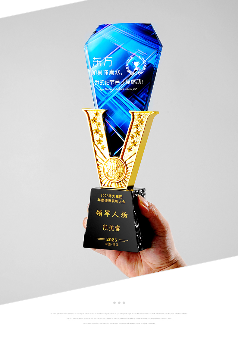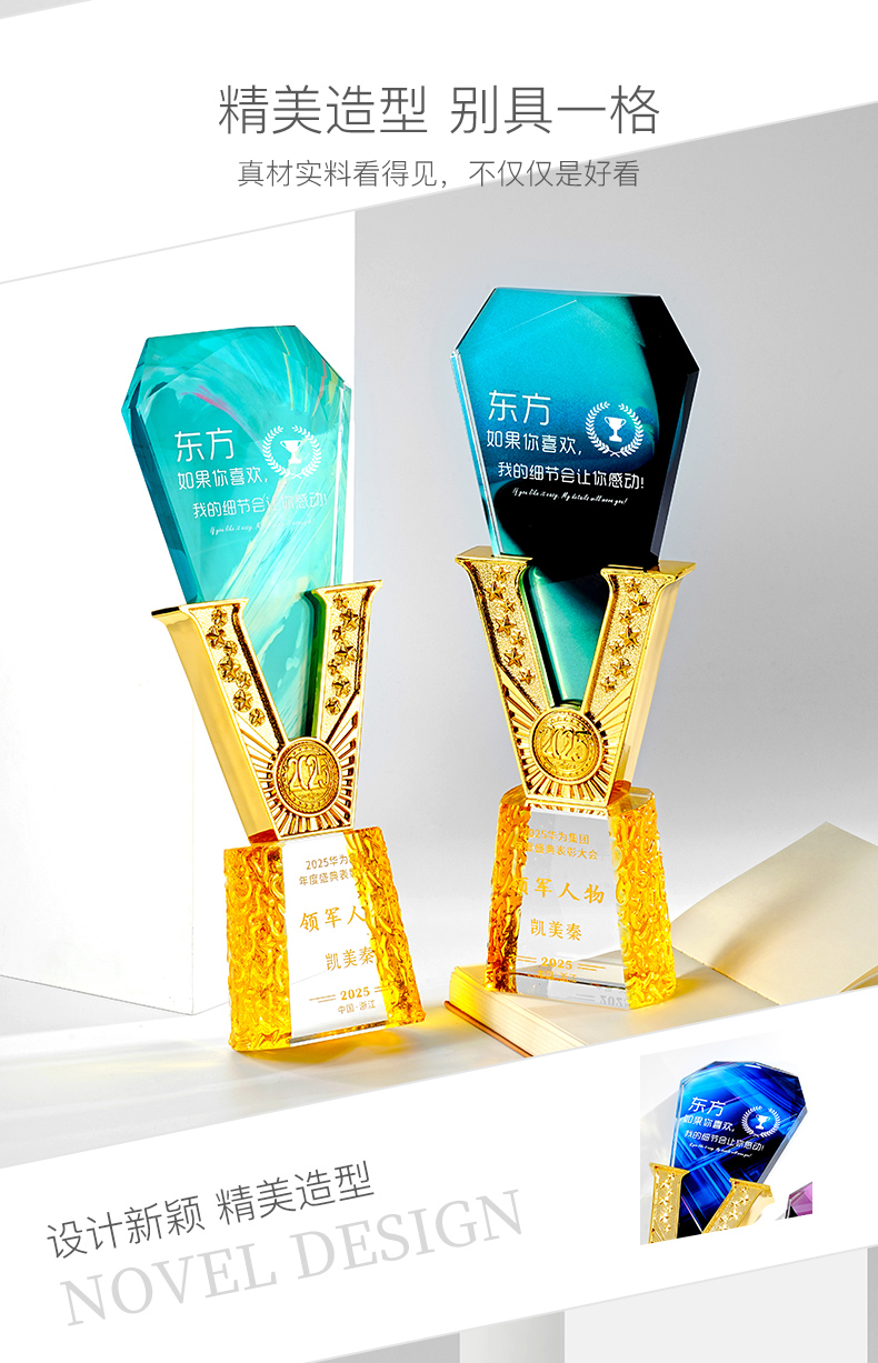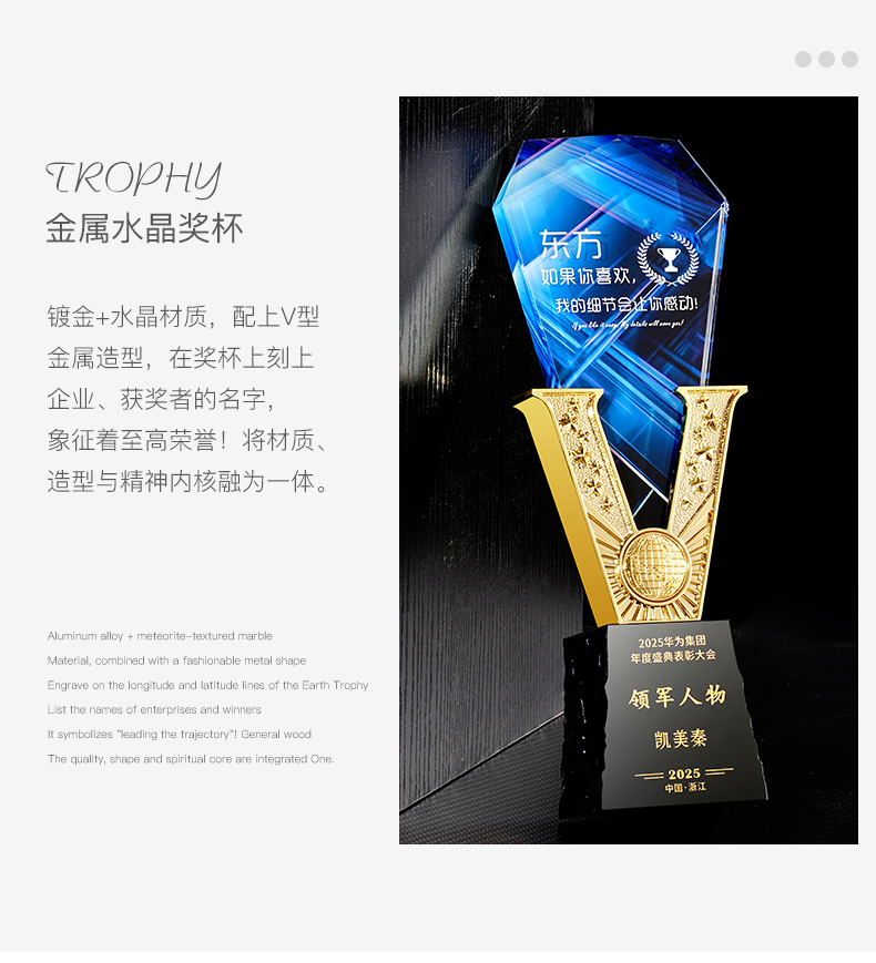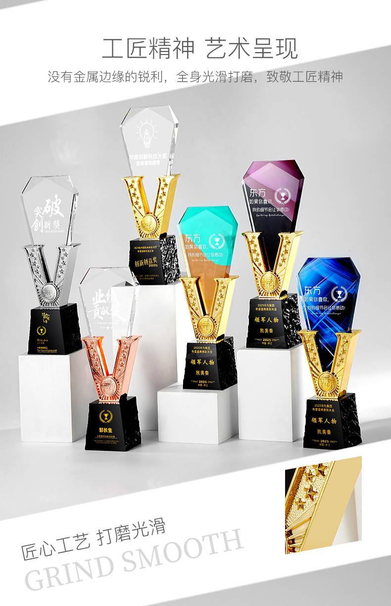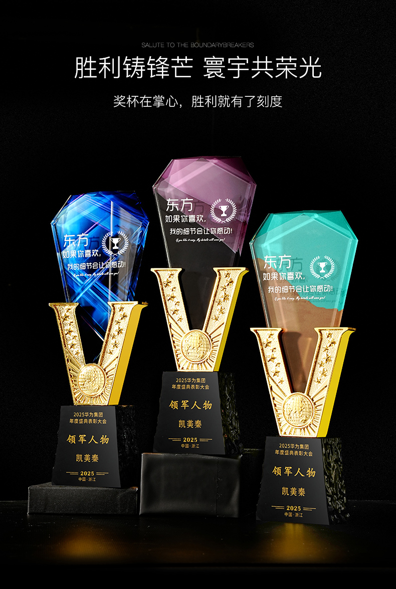 385 / 高端金属V形水晶奖杯定制公司优秀员工年会颁奖纪念创意荣誉奖牌