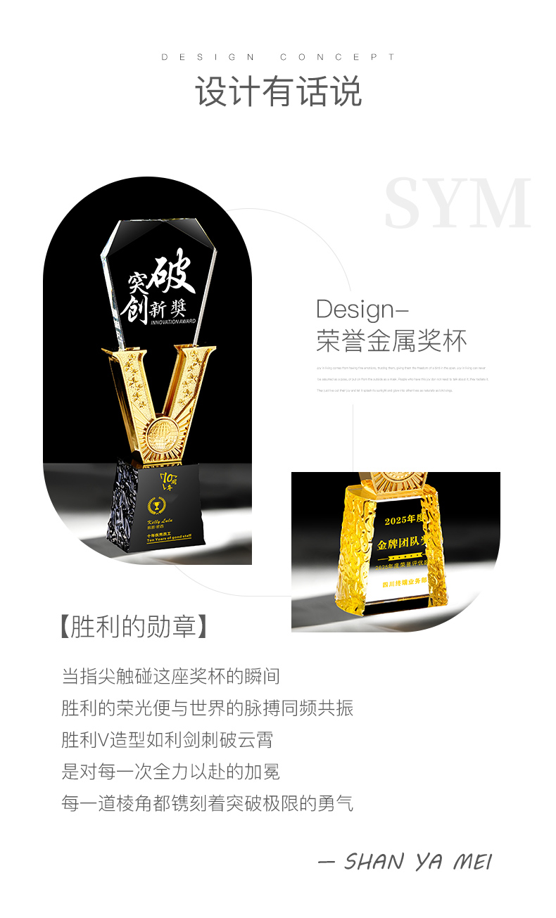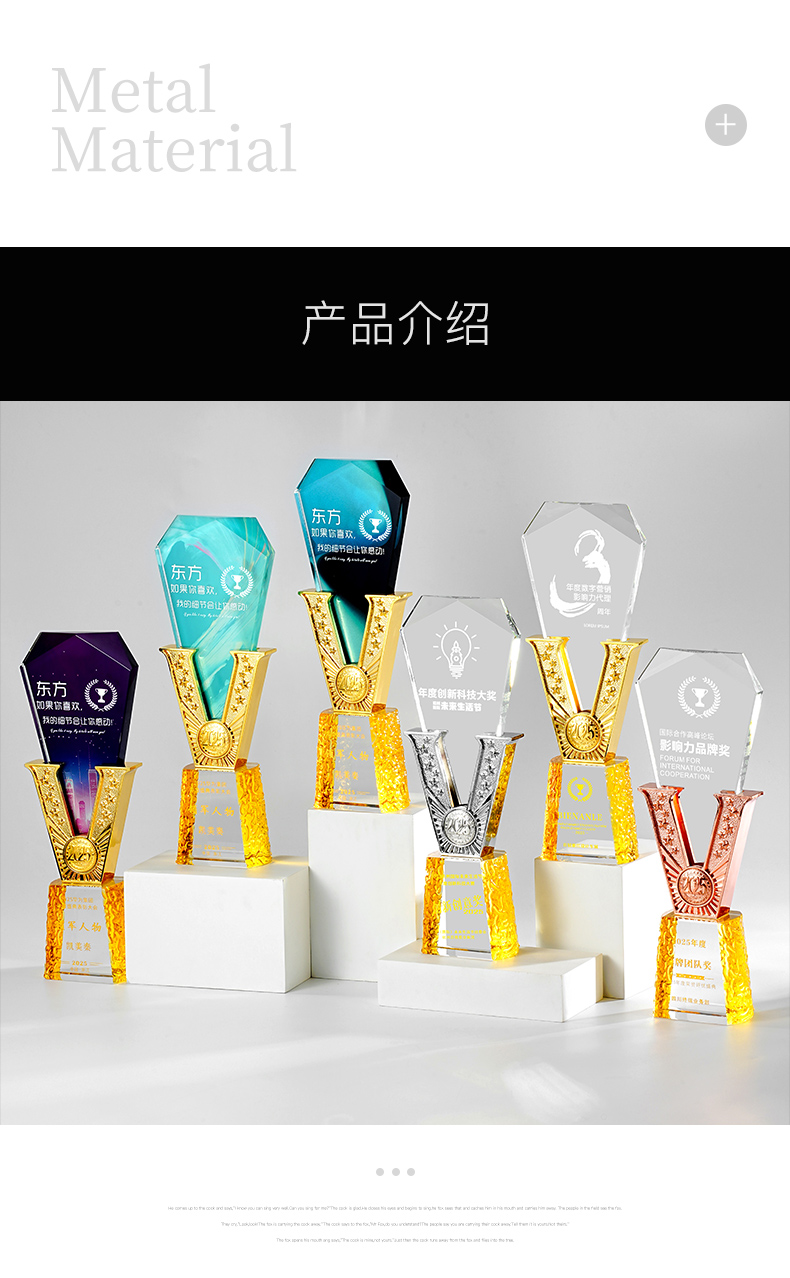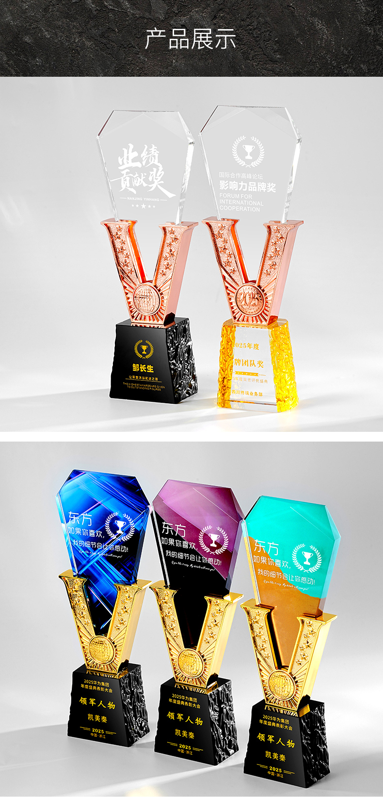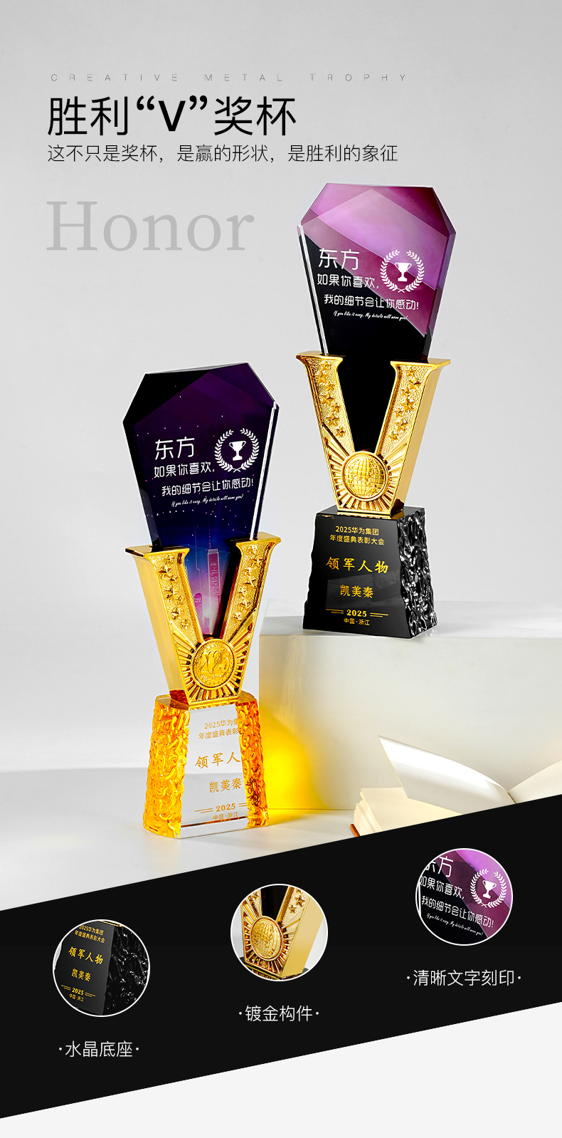 385 / 高端金属V形水晶奖杯定制公司优秀员工年会颁奖纪念创意荣誉奖牌