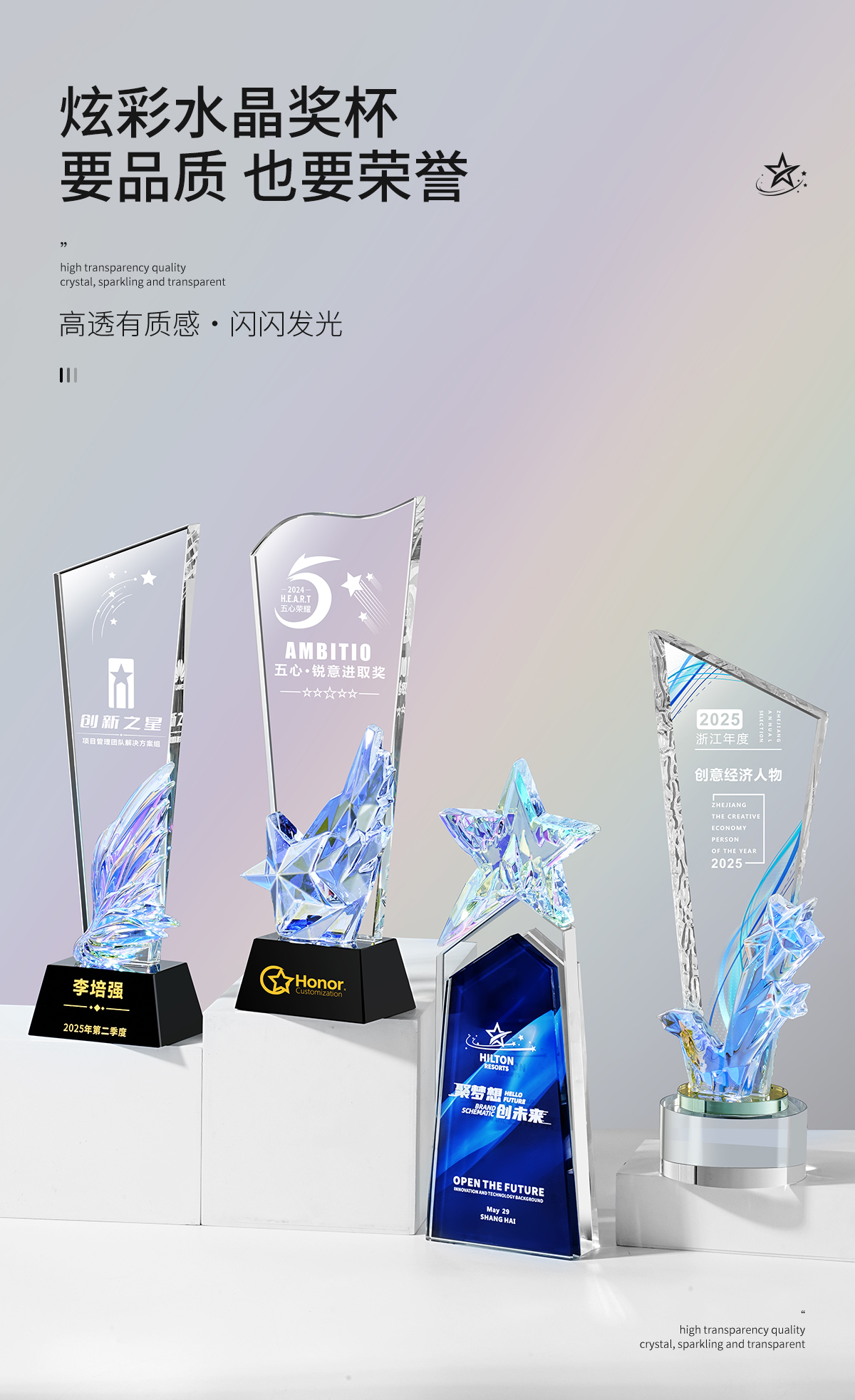 223 / 新款炫彩创意水晶奖杯定制定做高档比赛冠军优秀员工团队奖牌纪念