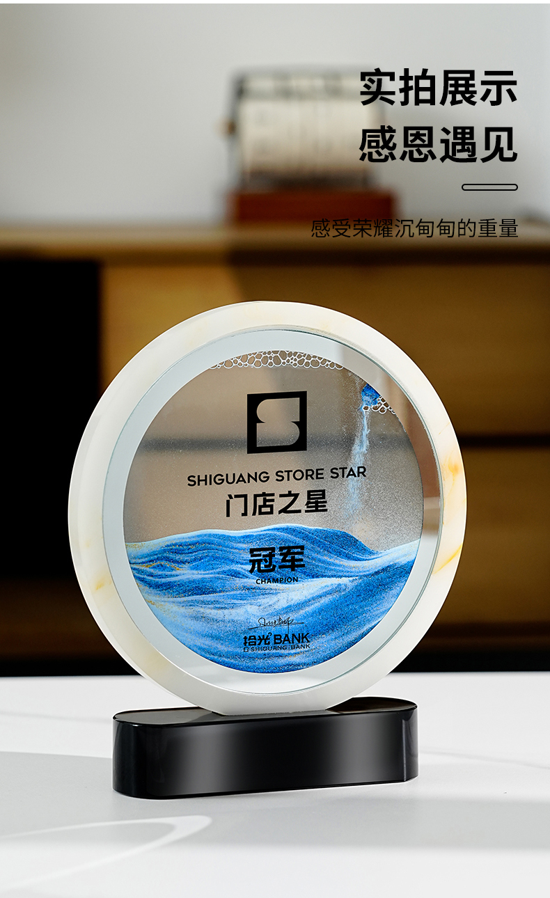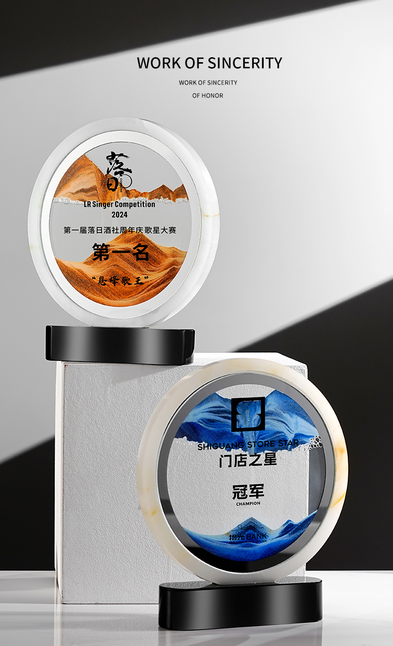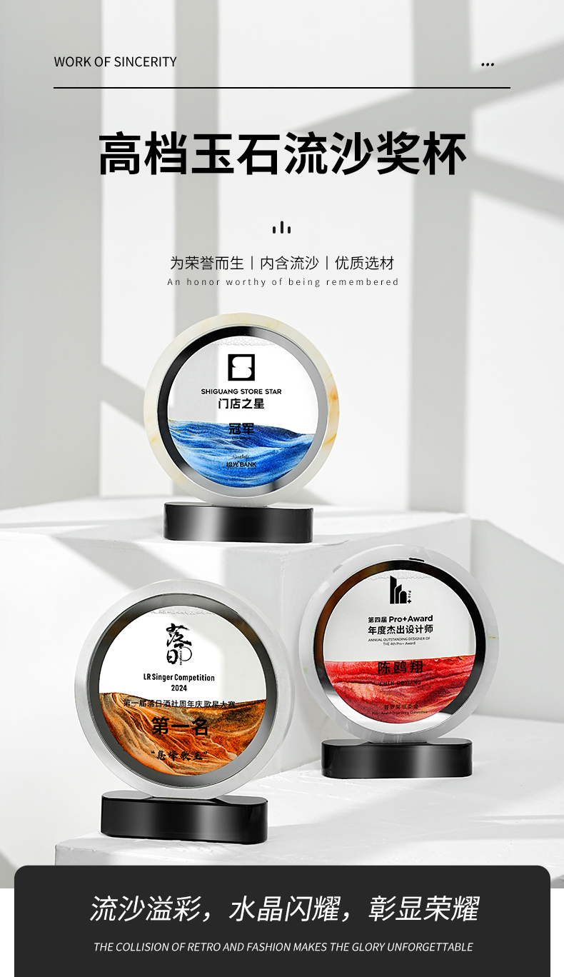 245 / 创意玉石流沙水晶奖杯定制高档大气授权奖牌公司周年庆纪念品定做