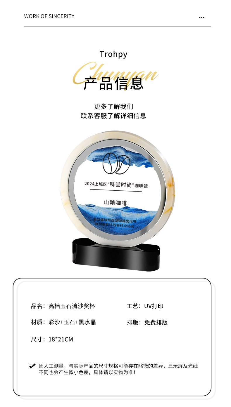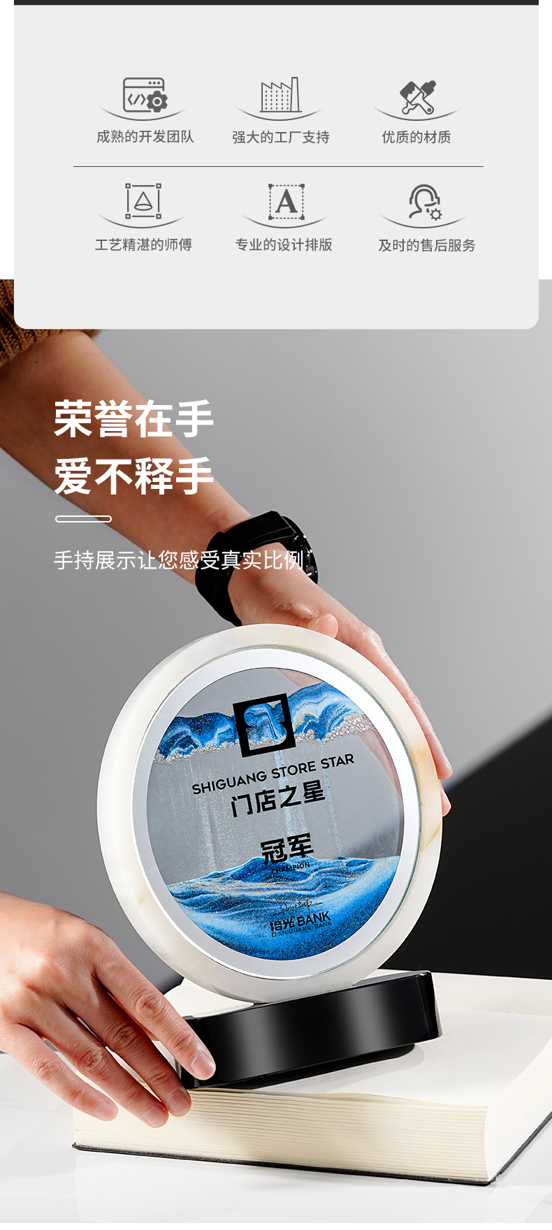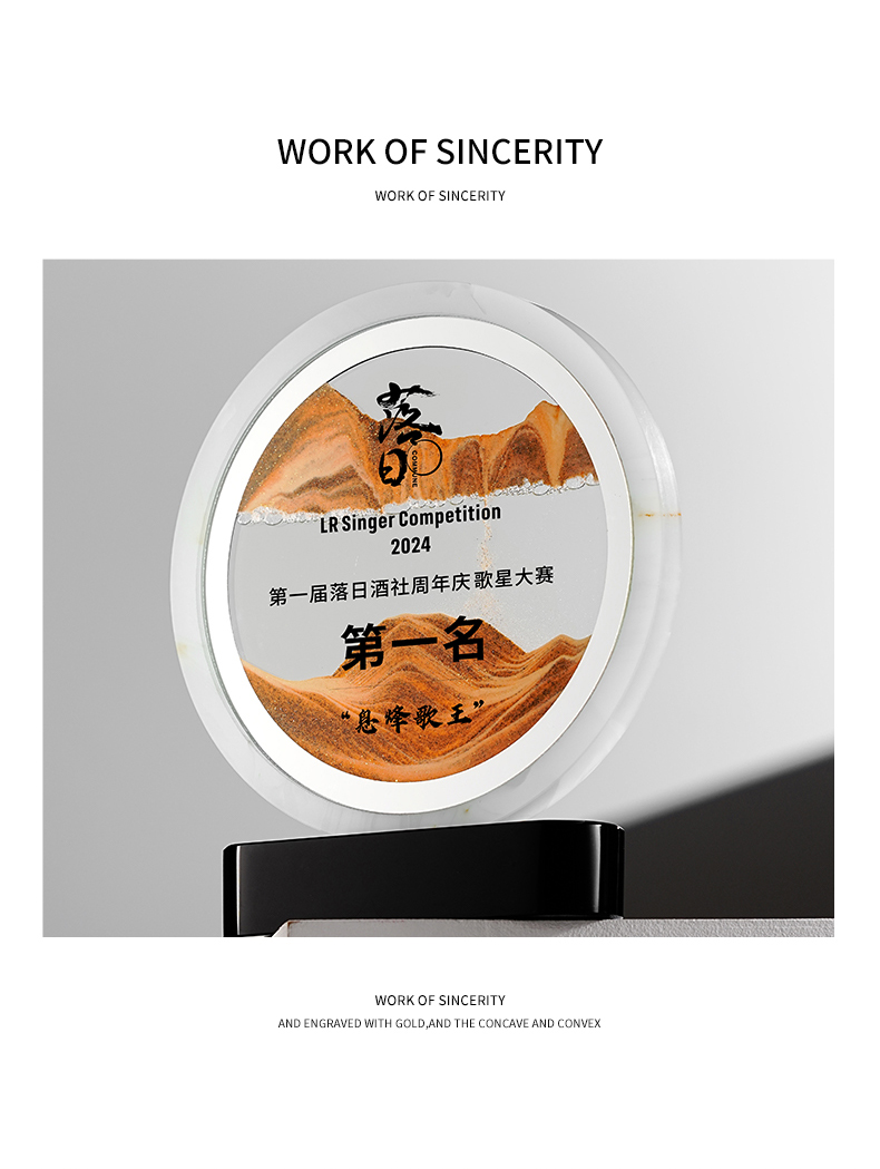 245 / 创意玉石流沙水晶奖杯定制高档大气授权奖牌公司周年庆纪念品定做