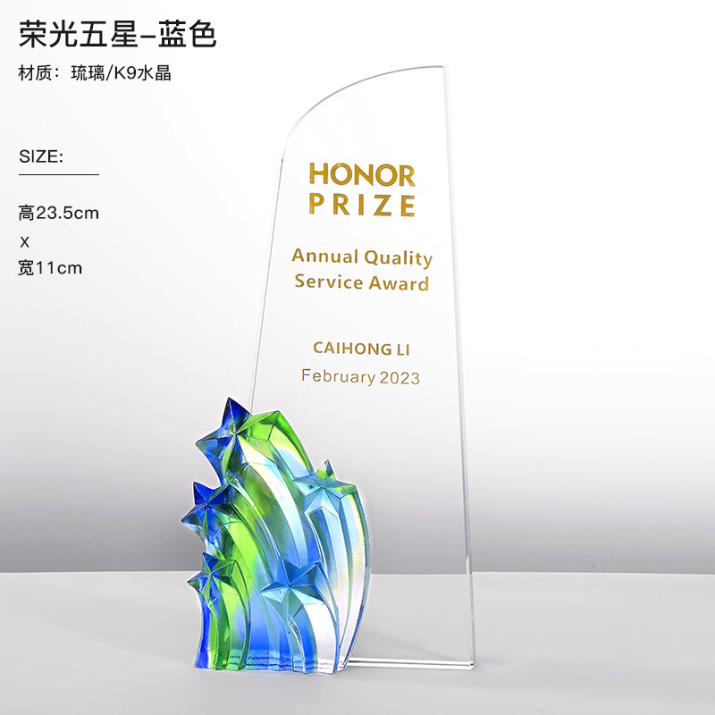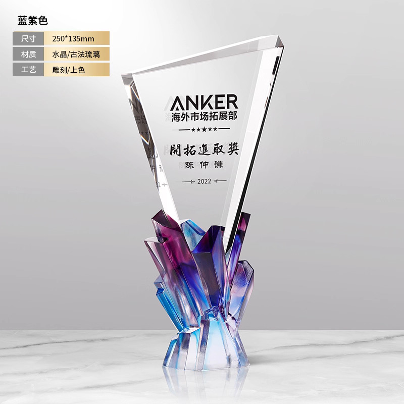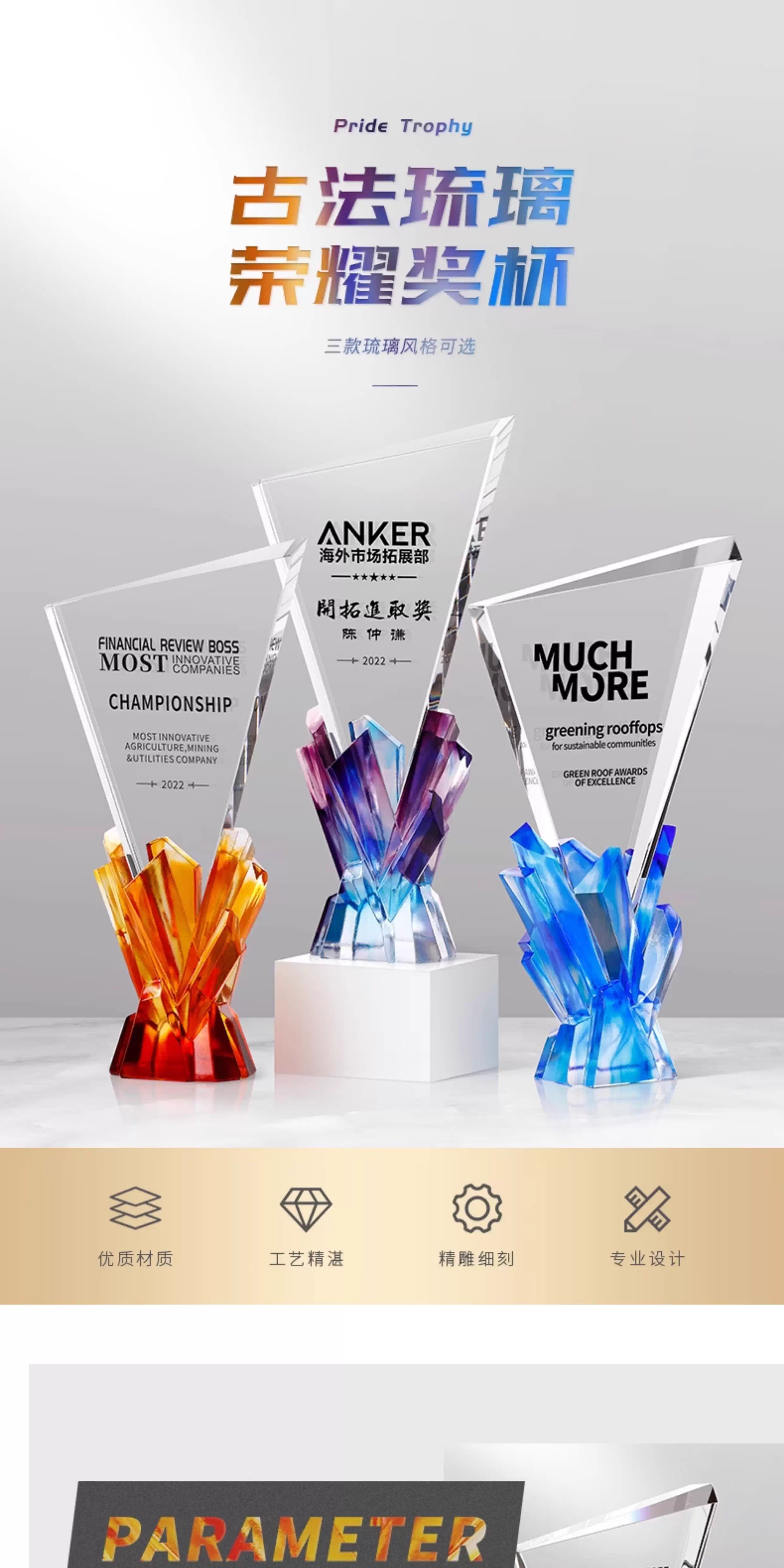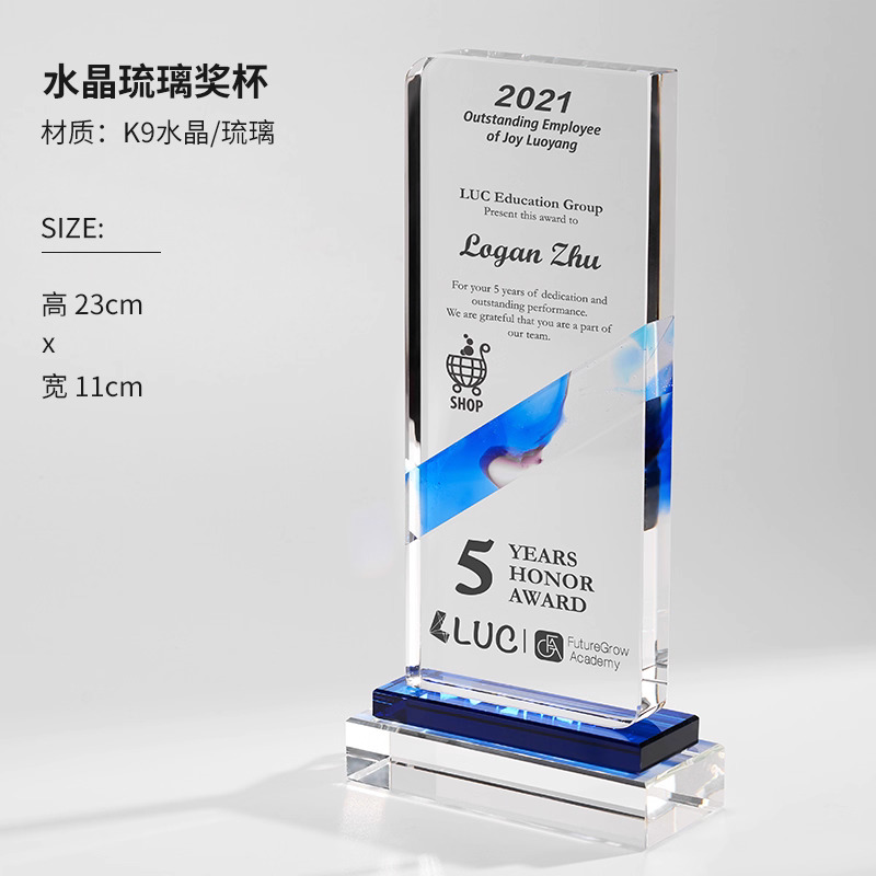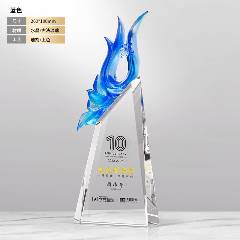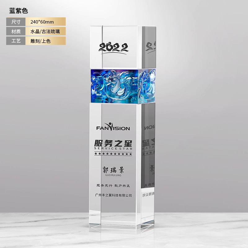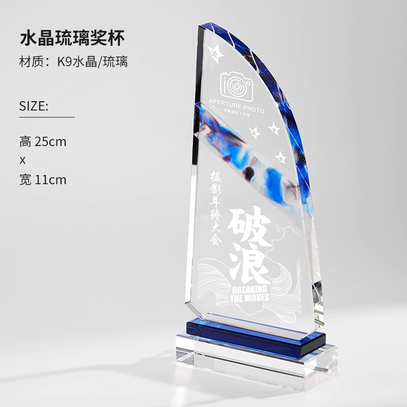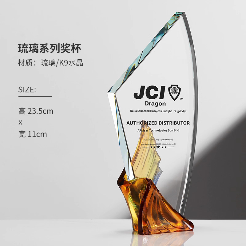 281 / 【琉璃水晶奖杯】新款高档创意琉璃水晶奖杯定制定做奖牌订做制作优秀员工年会颁奖